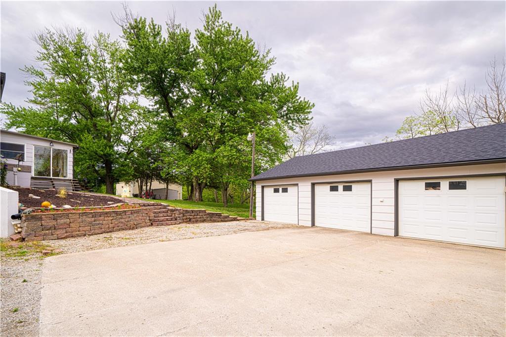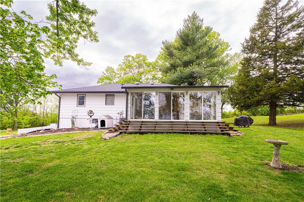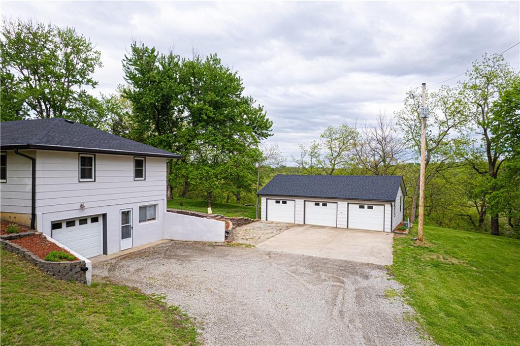 Spacious and well-maintained 4-bedroom, 2-bath home on 1.5 acres along State Rt DD in Savannah, MO, offering 2,536 total finished square feet and a full finished walk-out basement. This property has seen extensive updates, including new windows, HVAC system with humidifier, hot water heater, and added attic insulation in 2021, plus a brand-new roof and gutters in 2024. Septic system (tank and laterals) was replaced in 2017. The main level features three bedrooms with hardwood floors, ceiling fans, and soft pull-down blinds. The updated kitchen offers hickory cabinets with soft-close drawers, laminate flooring, modern lighting, and includes GE stove/oven, microwave, Frigidaire refrigerator, and Maytag dishwasher. The living room showcases a wood-burning fireplace, built-in grandfather clock, and fresh paint. The finished basement adds a fourth bedroom, second full bath with recent updates, new laminate flooring, fresh paint, additional living space with a second wood-burning fireplace, and ample storage. Wall-mounted TVs in the basement living area and bedroom stay. Exterior highlights include a 3-car detached garage with electricity and automatic doors (roof replaced in 2020), attached lean-to for extra storage, a 1-car attached garage, and plenty of parking. A rare combination of space, updates, and functionality—this home is truly move-in ready.