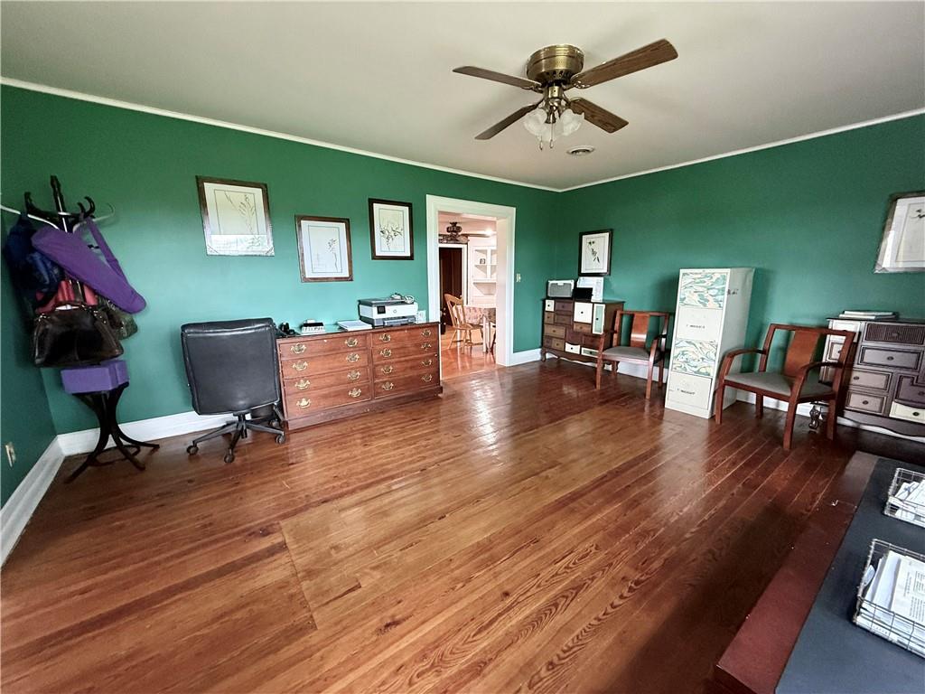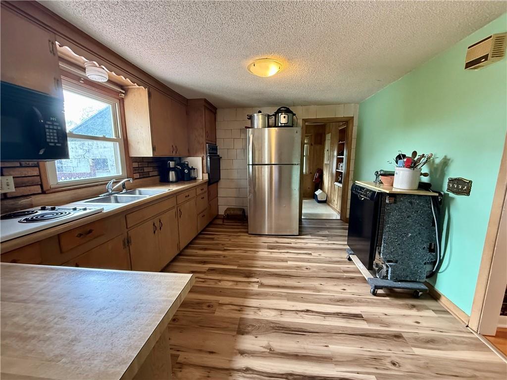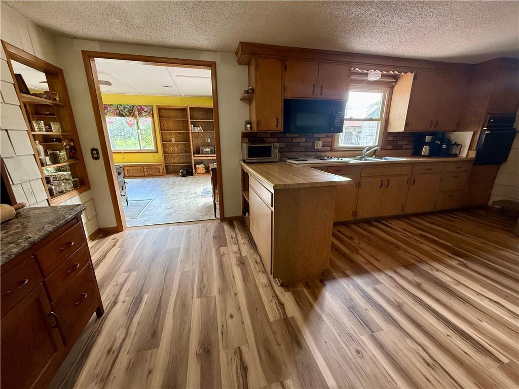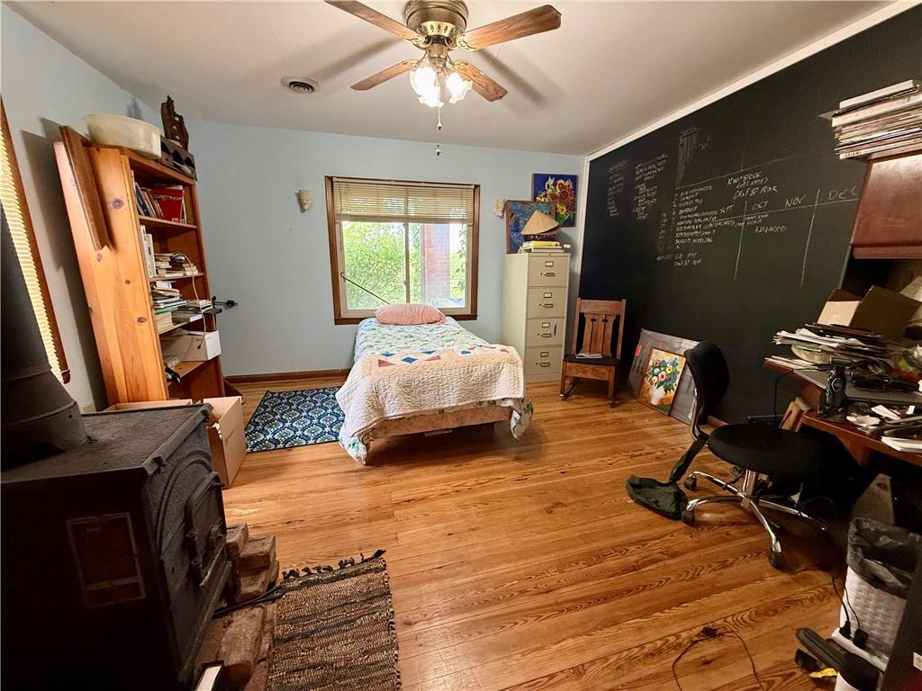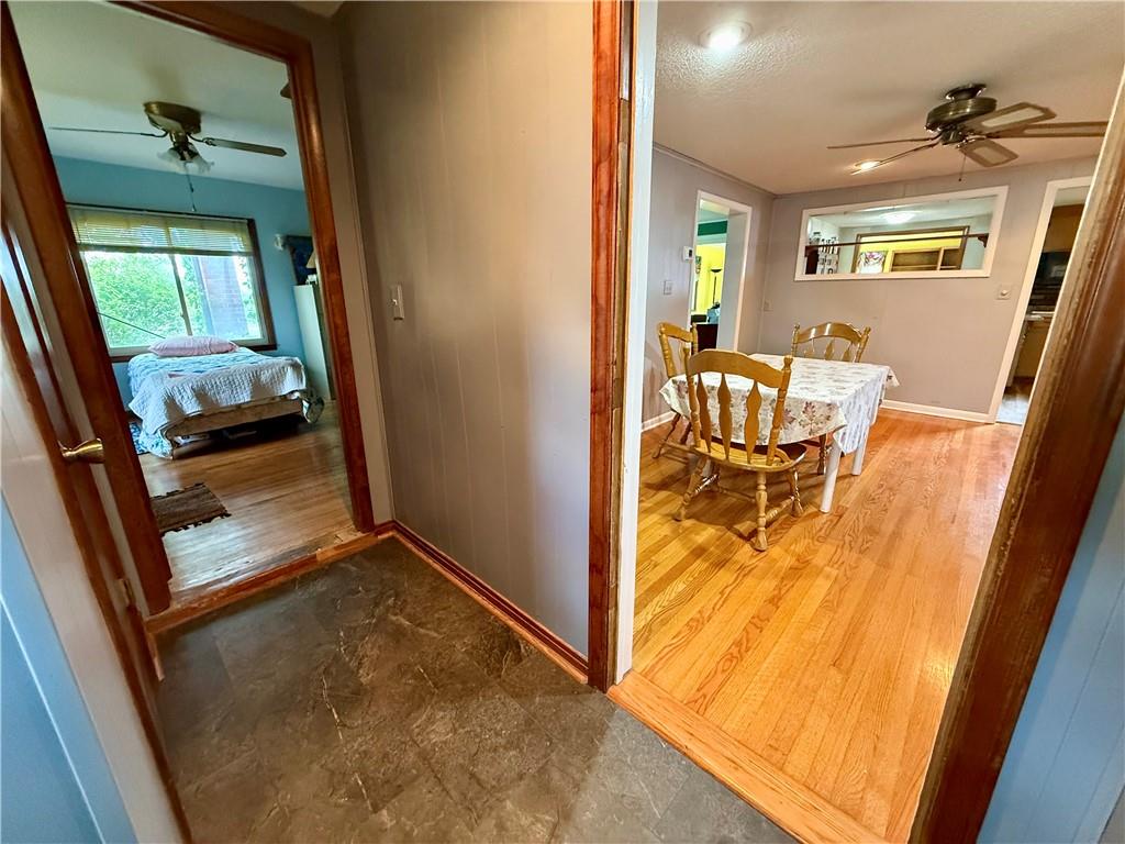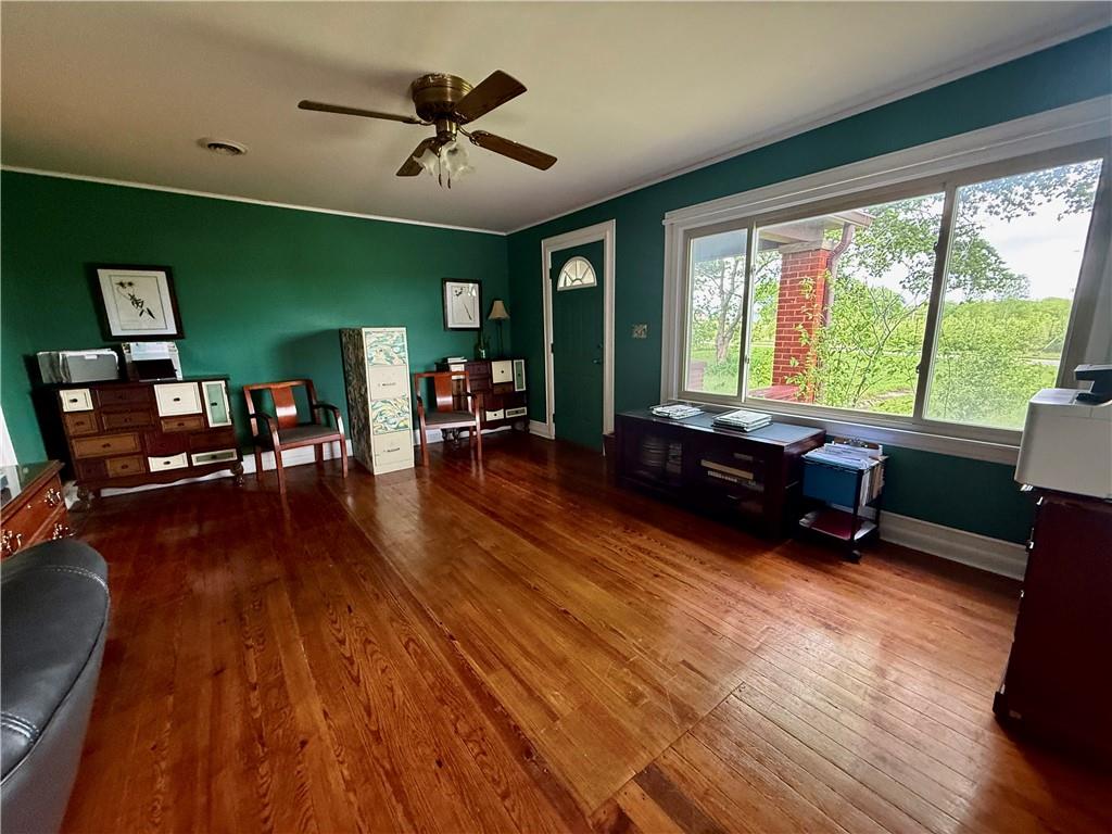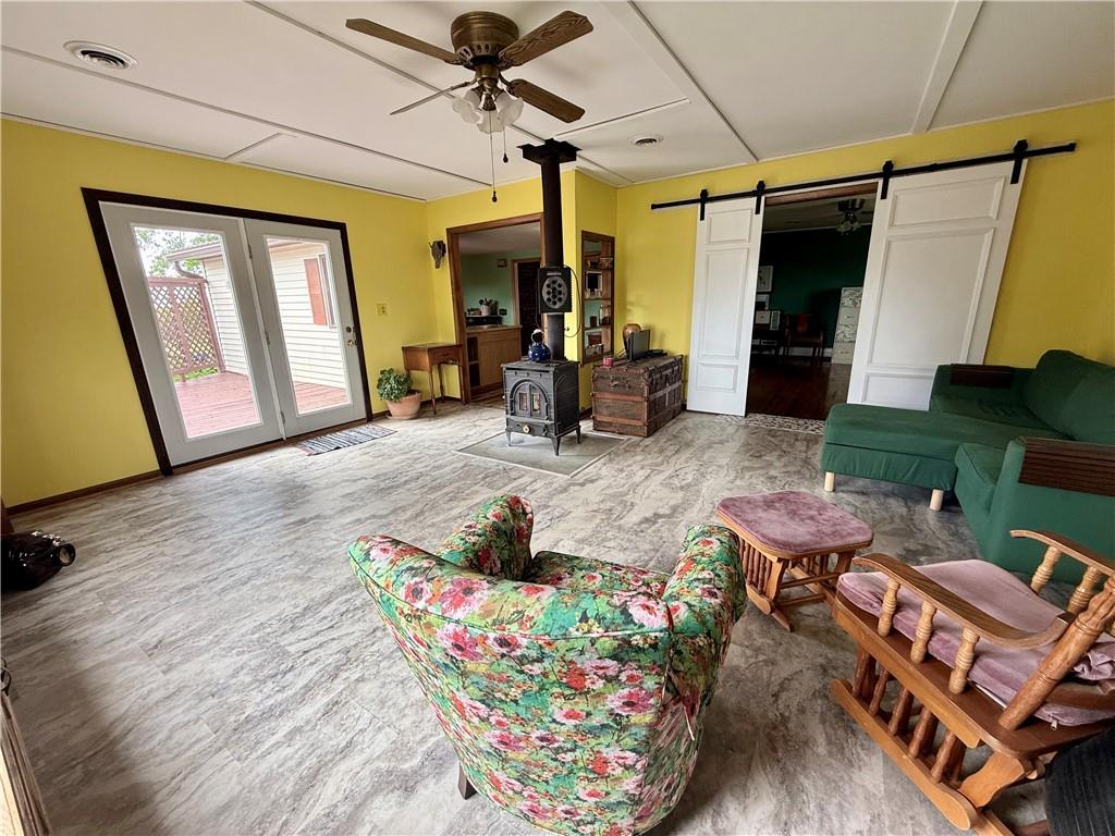 15 ACRE m/l hobby farm is fenced & has lots of fruit trees & asparagus. This 1700 sq ft home has personality with spacious rooms that flow together & make for very functional living. Large family room boast wall of shelves, window seat & lots of natural light. Mud room, laundry room, dining room & office space add to so many reasons you will want to call this home! HVAC installed in 2023. 6 inch gutters. Siding & thermal widows. Wood burning stoves stay to make those chilly nights even cozier. Lots of original hardwood floors. 30 X 64 outbuilding has 4 garage doors & 1 windowed garage door in finished area thats heated & cooled with kitchenette perfect for entertaining on the farm! Watching the sun rise & set will be your daily blessings of beauty!