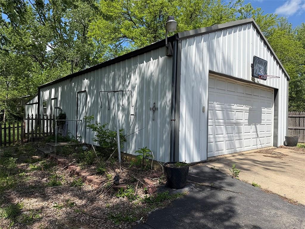 Cleaner-upper!!! Bring a little sweat equity and make this your storybook ranch on half an acre. Rare Find with that HUGE outbuilding/garage and apartment/office. The home hosts two bedrooms and a bath with hardwood floors, ample cabinet space in the open kitchen featuring a look through bar/window to living area and a gas stove and some updated systems. But wait, there is more, another bedroom and bath adjoin the garage, perfect for a private visitor stay, a teenage paradise or 2nd living space or income short term or long term rental. The half acre lot has been gardened with love and the home has been lovingly maintained over the years. There is an oversize two car garage and a huge shed (roughly the size of another two car garage) behind the garage. Bring the dog, the yard is fenced. Just blocks from the city park and lake and only a few minute drive to the quaint downtown Windsor, a must stop along the Katy Trail.