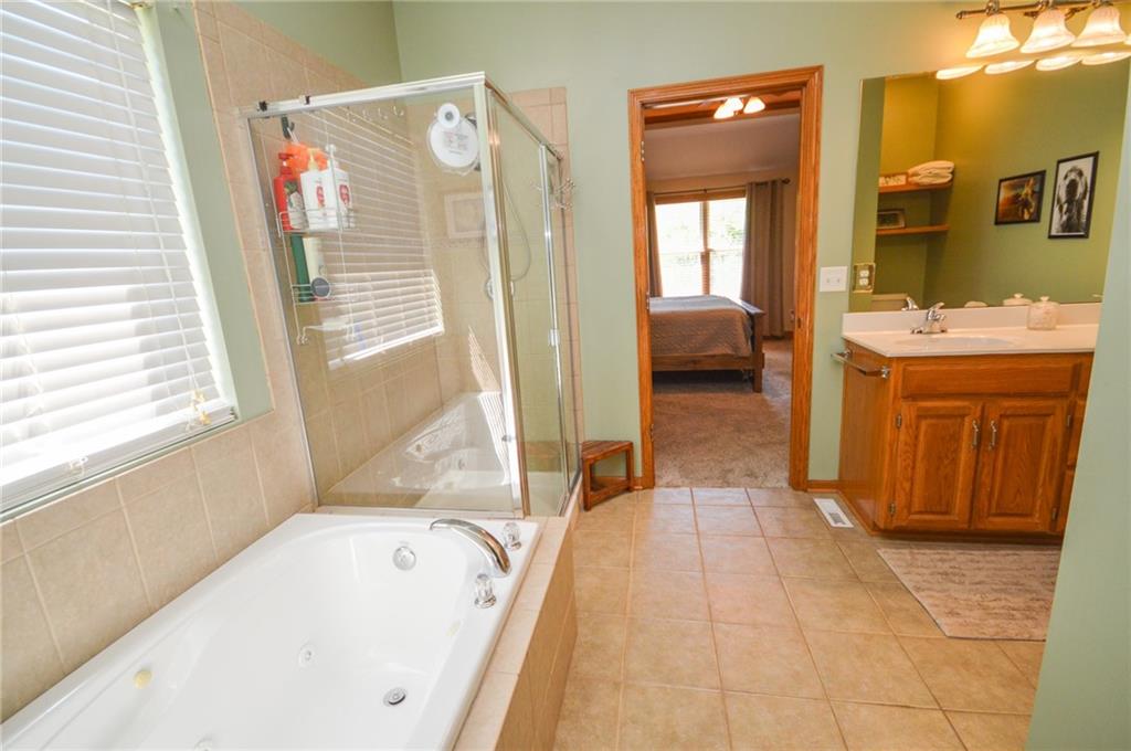 Don't miss this beautiful and well maintained home in Regency Heights! Open concept layout with vaulted ceilings. Windows off the back of the home give an abundance of natural light for all you plant lovers. Laundry conveniently located on the main level. Home has a covered deck area and backs up to green space. New tile flooring throughout the basement! All kitchen appliances to stay with the home. Hot tub to stay as well. HOA dues include a pool for those upcoming hot summer days. This one has it all, schedule your showing today!