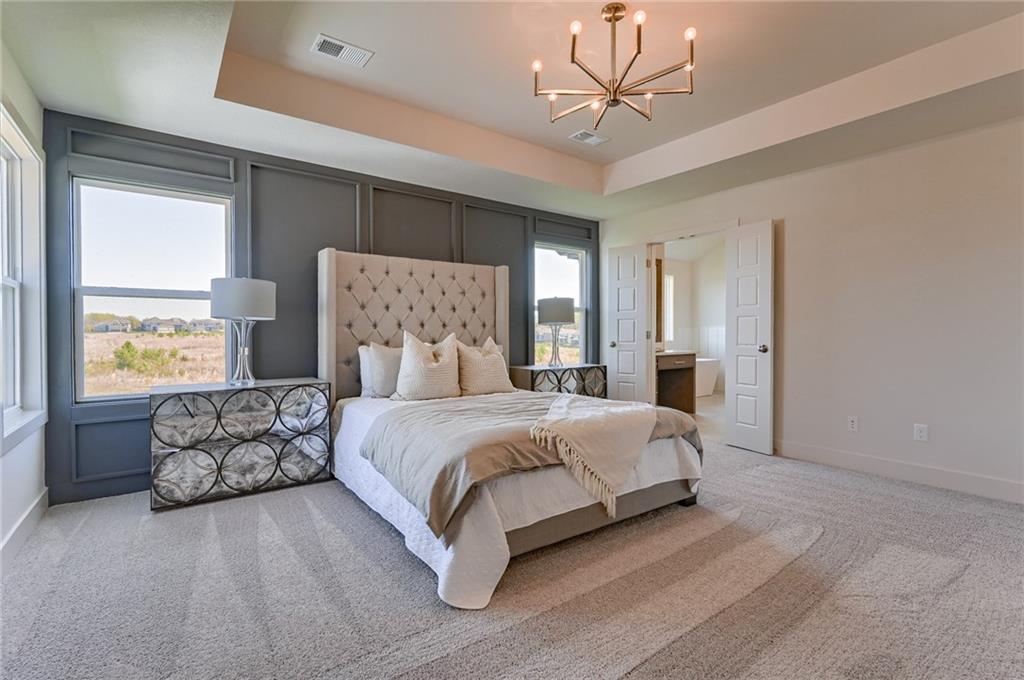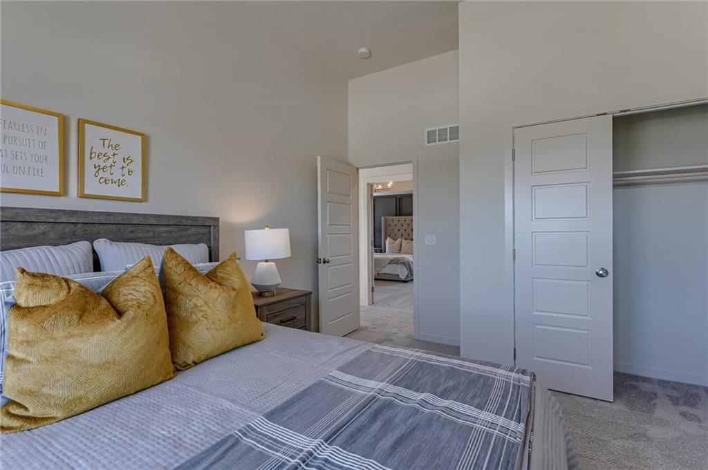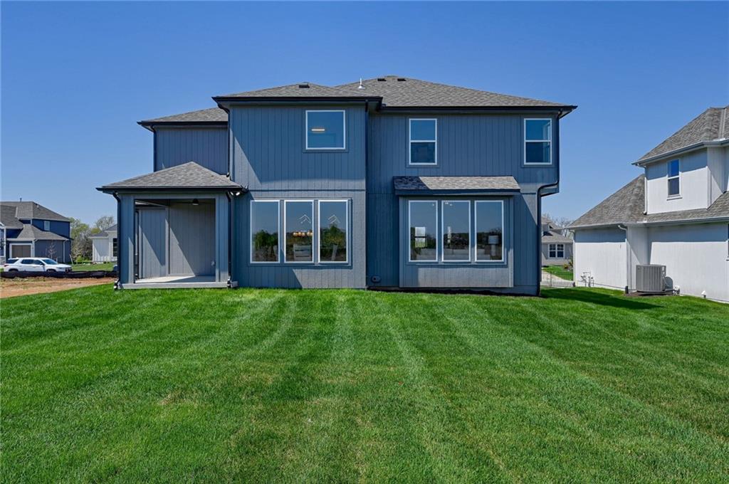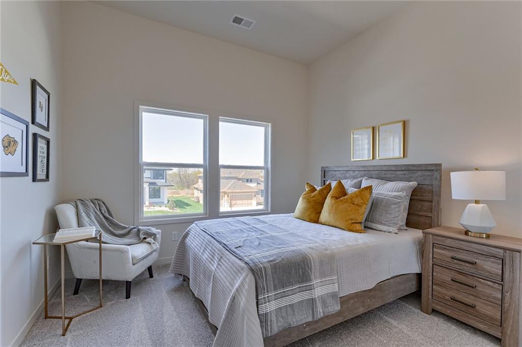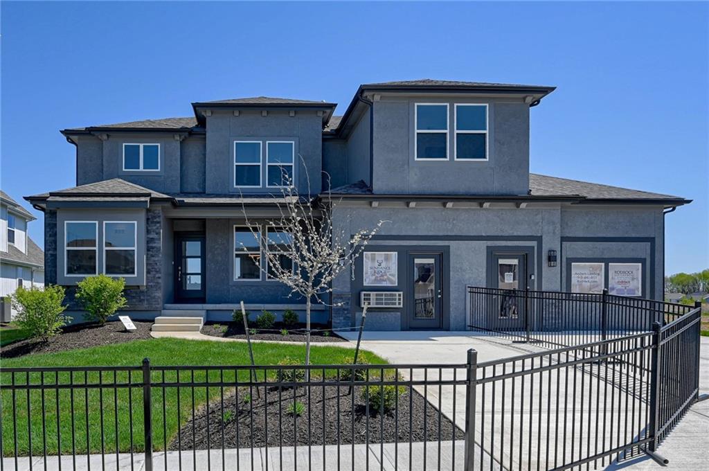 "The Irving" by Rodrock Homes. Elevation C. Welcome to this exquisite gem nestled in a tranquil neighborhood, where comfort & luxury blend seamlessly. With a charming facade, this home offers a lifestyle of elegance & convenience. You'll be greeted by an inviting formal dining rm, perfect for hosting gatherings & creating lasting memories. Across from it, an office on the main level provides a quiet sanctuary for productivity & focus. The spacious and well-designed Great Rm, complete with stone front fireplace that exudes warmth and charm. The open layout seamlessly flows into a gourmet kitchen, a culinary haven equipped with Stainless Steel Appliances, and a large walk-in pantry, offering generous storage. One of the many highlights of this home is the convenient boot bench/open lockers, thoughtfully placed, catering to the needs of busy families. The upper level boasts 4 generous bedrooms, each designed with comfort in mind. The master suite stands out as a true sanctuary, featuring a master bath that indulges with a vanity table, his-and-her sinks, an elegant soaker tub, and a walk-in shower with 2 shower heads. Positioned on a premium lot, this home has the distinct advantage of backing onto a green space, ensuring both privacy and a beautiful natural backdrop that's great for enjoying quiet moments on the back patio or entertaining friends and family. Irrigation Included. PHOTOS AND VIRTUAL TOUR ARE OF PREVIOUS SPEC OR MODEL HOME, NOT ACTUAL HOME. UPGRADED FEATURES AND FINISHES MAY VARY. Forest View-a Premiere Rodrock Community featuring 50 ft Waterfall, Zero Entry Pool, Water Park, Sand Volleyball, Playground, Picnic areas, Sport Court includes Basketball & 2 Pickle Ball Courts. Access to Cedar Niles Trails is within the Community and Lake Olathe near by. MOST BUYER SELECTIONS STILL AVAILABLE. AFTER SELECTIONS ARE COMPLETE - 60+ DAYS TO FINISH.