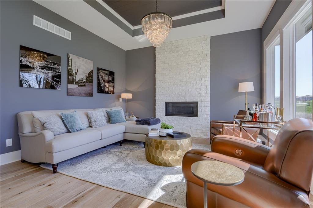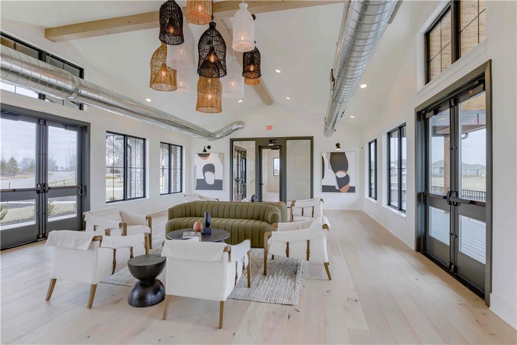 The stunning Santa Fe Reverse 1.5 by Rodrock Homes features soft-contemporary styling with four-sided construction, low-pitch rooflines, and elegant stone accents. A 4-car garage (2 front, 2 side) offers ample space for vehicles, storage, and toys. The center-island kitchen overlooks a spacious Great Room with a vaulted ceiling and detailed trim accents. A cozy Hearth Room off the breakfast area includes a fireplace for quiet everyday enjoyment. The resort-style Primary Suite offers an oversized walk-in closet, separate tub and shower, and convenient access to the main-level laundry. The main level also includes a flexible Study/Bedroom with a private full bath. The finished lower level is designed for entertaining—featuring an elegant wet bar, media area, space for a game table, and generous secondary bedrooms each with their own baths. Enjoy beautiful wooded scenery from the covered deck. Located in Sundance Ridge, residents enjoy a multi-million-dollar amenities center, The Village, offering a welcoming clubhouse and two swimming pools. Additional planned amenities include a state-of-the-art indoor gymnasium, pickleball courts, bocce ball, playground, community garden, and nature trails connecting all three neighborhoods. Resort-style clubhouse, fitness center, and the first pool are now open! Home is currently under construction and will be completed in approximately 60 days, featuring high-end upgrades and designer selections throughout for a truly show-stopping finish. Photos shown are of a previous model home.