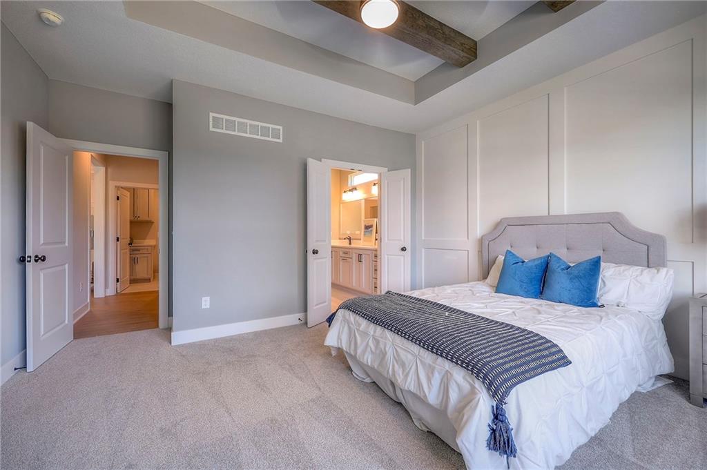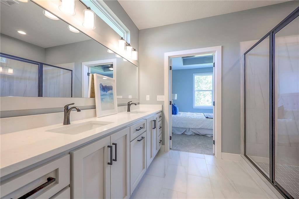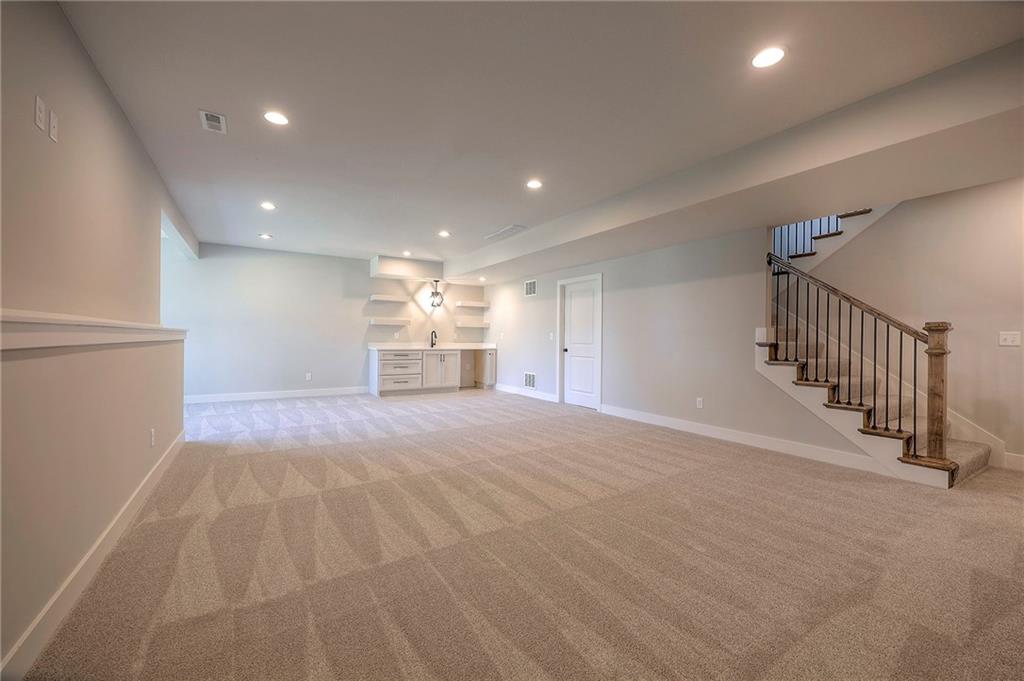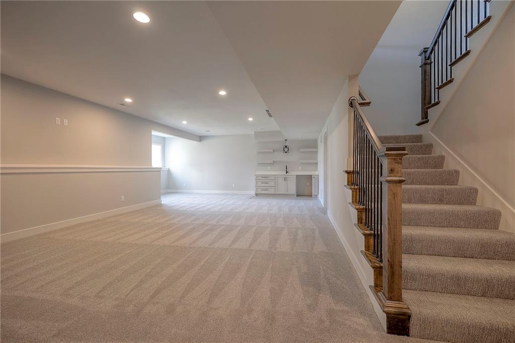 $15,000 Fall BUYER'S CHOICE REBATE available now! FORMER MODEL MUST SELL NOW! PRIVACY! Priced below reproduction price. Beautiful, 4 bedroom, Magnolia Reverse 1.5 story home on cul-de-sac lot backing to greenspace and lots of trees! Spacious kitchen with custom cabinets throughout, gas cooktop, quartz countertops and large, walk-in pantry. Great room features wonderful fireplace with custom wood beams in the vaulted ceiling. All wet areas are tiled, decorator finishes throughout. Lower level rec room features a walkup bar with sink. High efficiency HVAC and sprinkler system.
