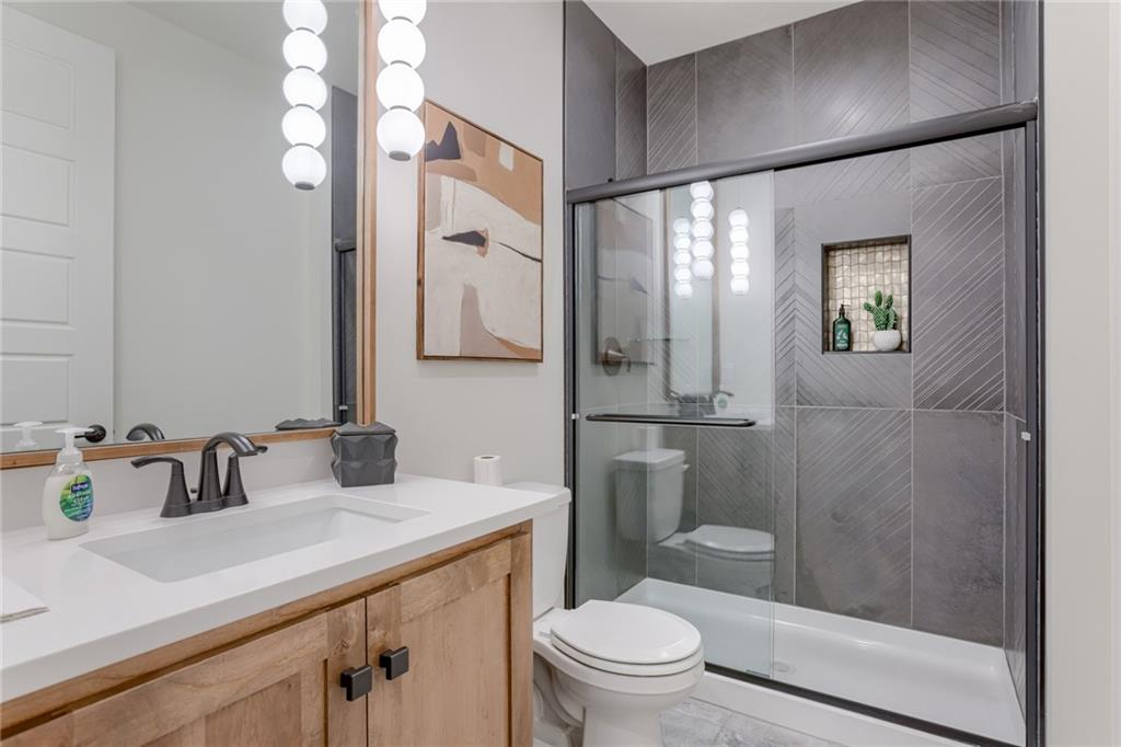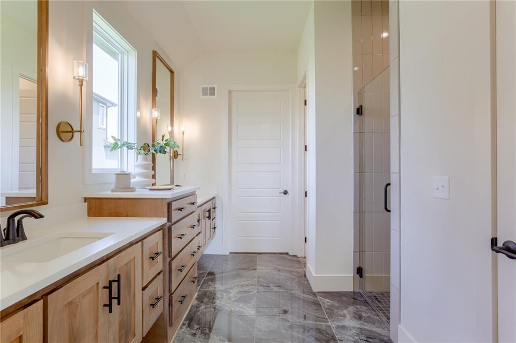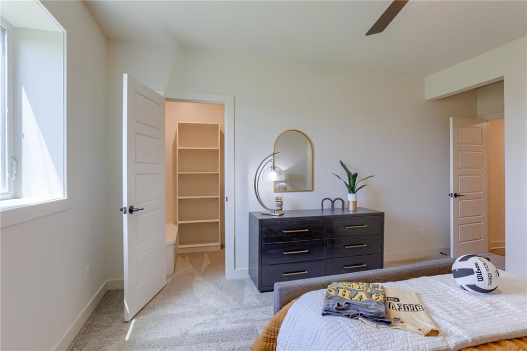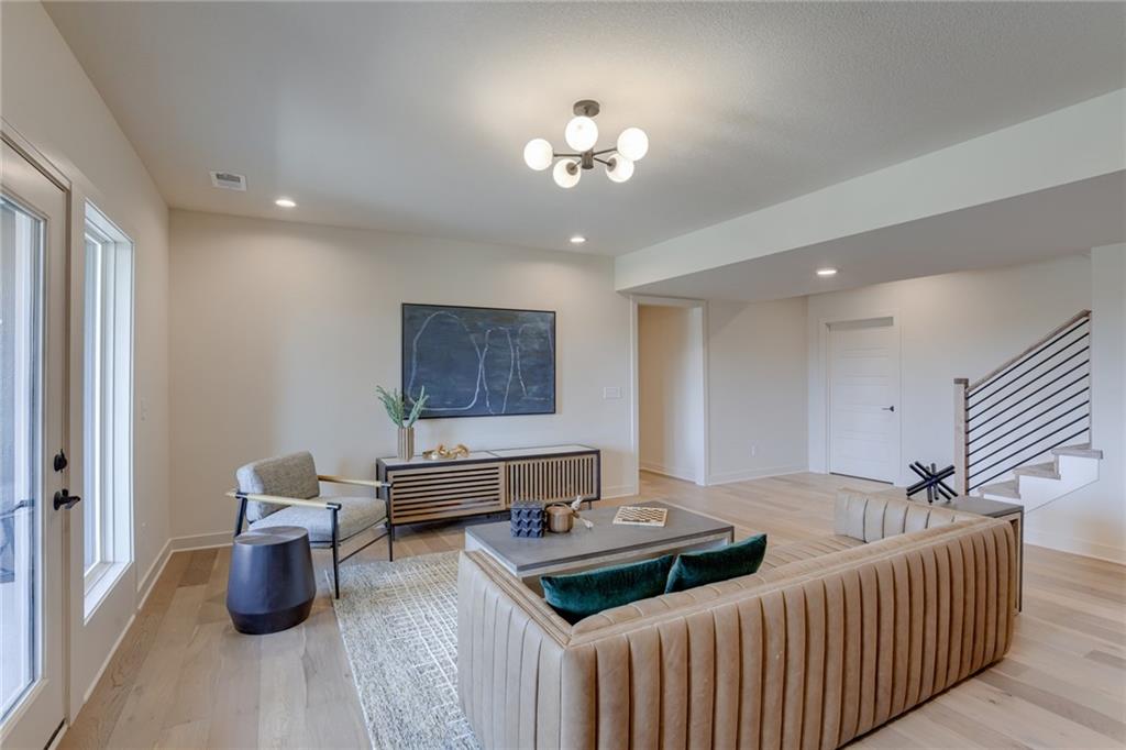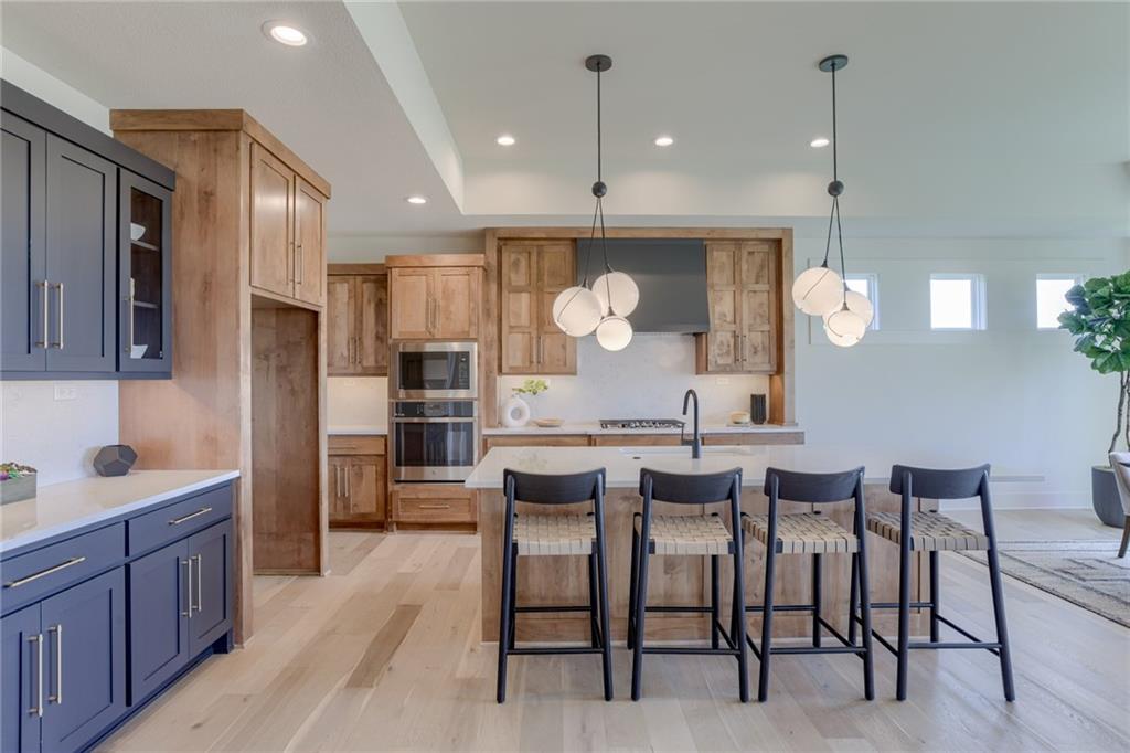 Welcome to the "Campbell" Reverse. A beautifully designed home nestled on a private street. Open floor plan offers spacious living and modern amenities. Four generously sized bedrooms, including a main-level master suite with a large walk in closet. Master bath features double vanity with center drawers and walk in shower with 2 shower heads. The heart of the home boasts a large center island, perfect for meal prep and entertaining. Hardwood floors on the main level add warmth and elegance. The Dining Room & Great Room area features a wall of windows, flooding the space with natural light. A stunning stone front fireplace stretches from floor to ceiling, creating a grand focal point. Floating shelves and a floating hearth add a touch of sophistication. A large mirror in the stairwell reflects light and adds depth. Step outside to a low-maintenance composite deck, ideal for relaxing or hosting gatherings. We round out the lower level with two spacious bedrooms and 2 additional bathrooms perfect for guests or family members. It offers convenience and privacy. A versatile rec room is ideal for a home theater, playroom, or fitness area. The wet bar adds a touch of luxury and makes entertaining a breeze. All of this on a walk-out lot, seamlessly connecting indoor and outdoor spaces. This home truly offers the best of both worlds—a stylish main level and a lower level designed for relaxation and entertainment. Upgraded finishes throughout ensure a luxurious living experience. WALKOUT LOT. PICTURES AND VIRTUAL TOUR ARE OF PREVIOUS MODEL HOME, WHICH DOES FEATURE UPGRADES TO SHOW OPTIONAL FEATURES. Forest View-a Premier Rodrock Community featuring Water Park, Zero Entry Pool, 50 ft Waterfall, Sand Volleyball, Playground & Picnic areas. Sport Court includes Basketball & Pickle Ball. Cedar Niles Park/Walking Trails is accessible within the Community and Lake Olathe nearby. MOST BUYER SELECTIONS STILL AVAILABLE. AFTER SELECTIONS ARE COMPLETE - 60+ DAYS TO CLOSE.