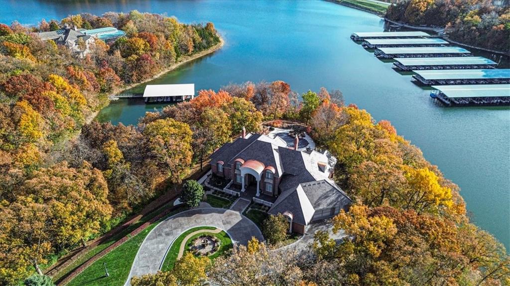 Situated on a private point in the West Shore of Riss Lake, this elegant lakefront residence spans 11,700 sq. ft. on 1.22 acres of beautifully maintained wooded landscape. Nestled within a private gated community, you'll be immediately impressed by the stunning exterior, impeccable circular drive, and custom glass entry. Inside, this meticulously designed home impresses at every turn. From the incredible custom stainless steel and glass staircase to the expansive entertainment area, this home is truly one-of-a-kind. Flooded with natural light, it boasts soaring ceilings and walls of windows. On the main level, you'll find a formal living and dining room, a large office, a separate den, a cozy hearth room, a designer kitchen with Viking and Sub Zero appliances, and a beautiful sunroom with incredible views. The Owner's suite is a retreat filled with special details such as custom ceiling features, a lovely sitting room, expansive closets, a whirlpool tub, and more. The upstairs features a large loft area and three spacious bedrooms, each with private baths and walk-in closets. This home also includes a large gym, a playroom, and a fabulous home theater. For hosting, there’s a full bar and a second kitchen, making entertaining guests an effortless yet elevated experience. Step outside to your own resort-like oasis, featuring a beautiful lagoon-style pool, an outdoor kitchen, and an expansive deck area to entertain or relax and enjoy the lake views. Just off the pool area is an indoor spa room with an attached bathroom and steam shower. The property includes a five-car garage ideal for car enthusiasts, plus a dedicated shop area. Don't miss this rare opportunity to own this masterpiece of craftsmanship located just minutes from MCI Airport, Charles B. Wheeler Airport, downtown KC, and the Plaza. Privacy, luxury, and location at their finest! Taxes and square footage are estimated and should be verified by Buyer's agent.