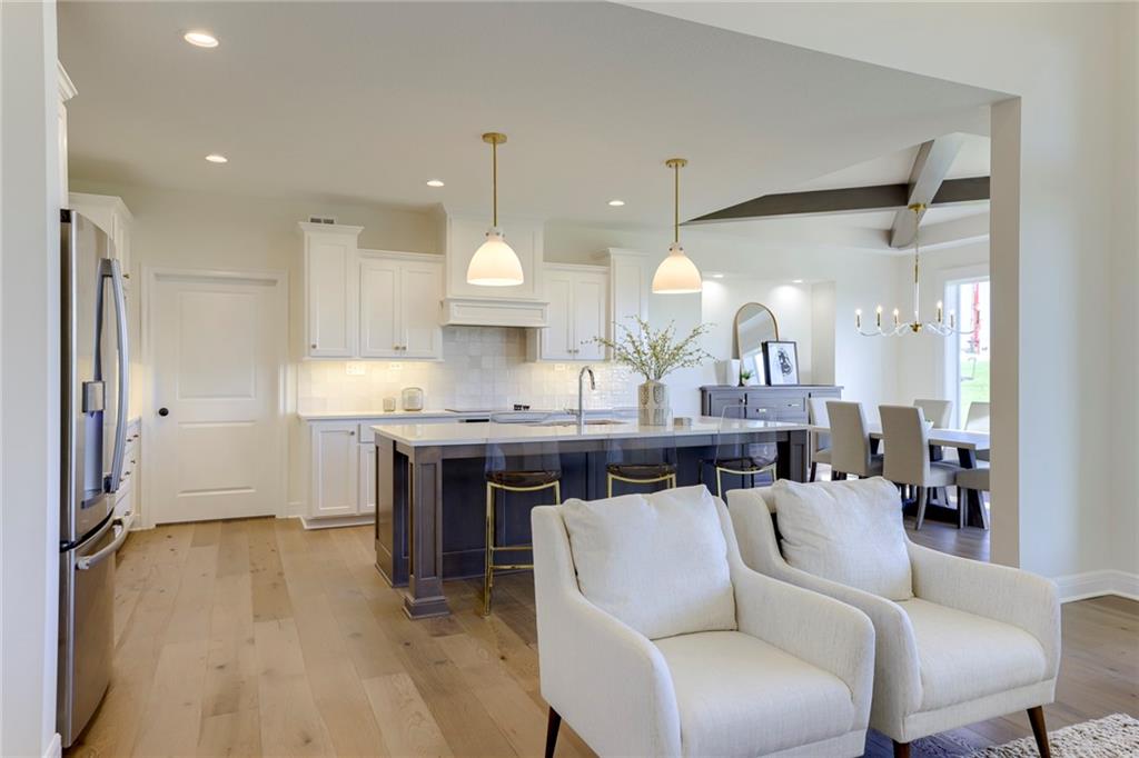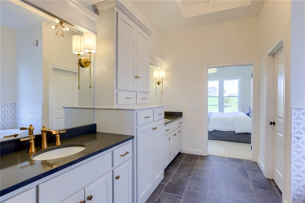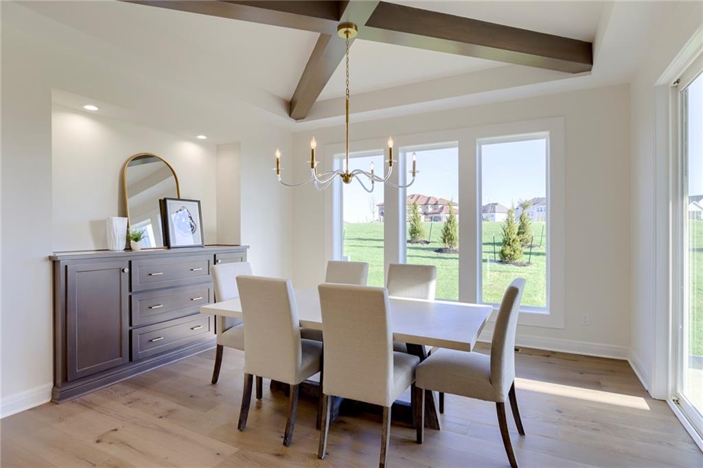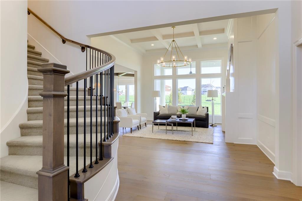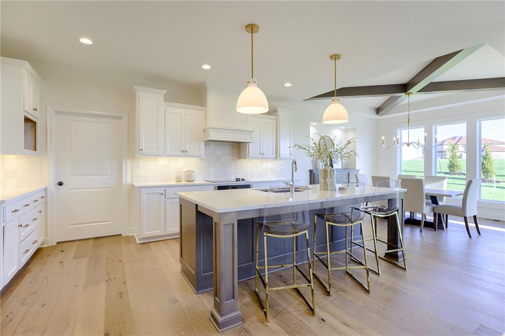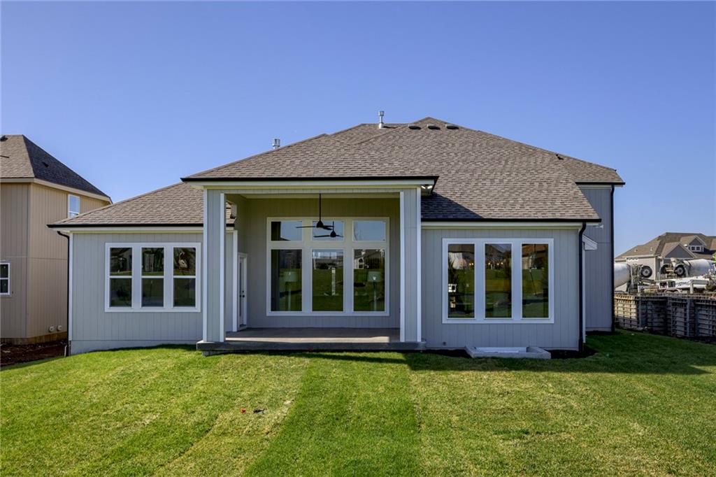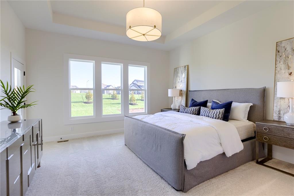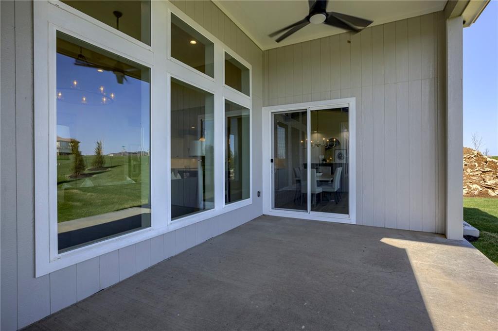 "The El Dorado II" 1.5 Story by Rodrock Homes. Elevation B. This popular 1.5 story plan defines modern living at its best, with thoughtful design elements including a sweeping staircase that creates a striking focal point, and a main level office. A master suite with access to the covered patio and a spa like en suite. Double Vanity with center tower, Free Standing Soaker Tub and large Walk In Closet with available storage space from floor to ceiling. The open kitchen has a prep pantry with tons of counter space and designated space for an additional full size refrigerator. Great room features box beam ceiling and floor to ceiling stone front fireplace. Irrigation included. PLEASE CONTACT LISTING AGENT FOR DETAILS. PICTURES AND VIRTUAL TOUR ARE OF A PREVIOUS MODEL HOME AND MAY FEATURE UPGRADES- PICTURES ARE NOT OF THE ACTUAL HOME. Forest View- a premier Rodrock Community featuring 50 foot Water Fall, Splash Park, Zero entry pool, Sand Volleyball, Playground & Picnic areas. Sport Court includes basketball and 2 pickle ball courts. Cedar Niles Park/Trails is accessible within the Community and Lake Olathe nearby. MOST BUYER SELECTIONS STILL AVAILABLE. AFTER SELECTIONS ARE COMPLETE - 60+ DAYS TO CLOSE.
