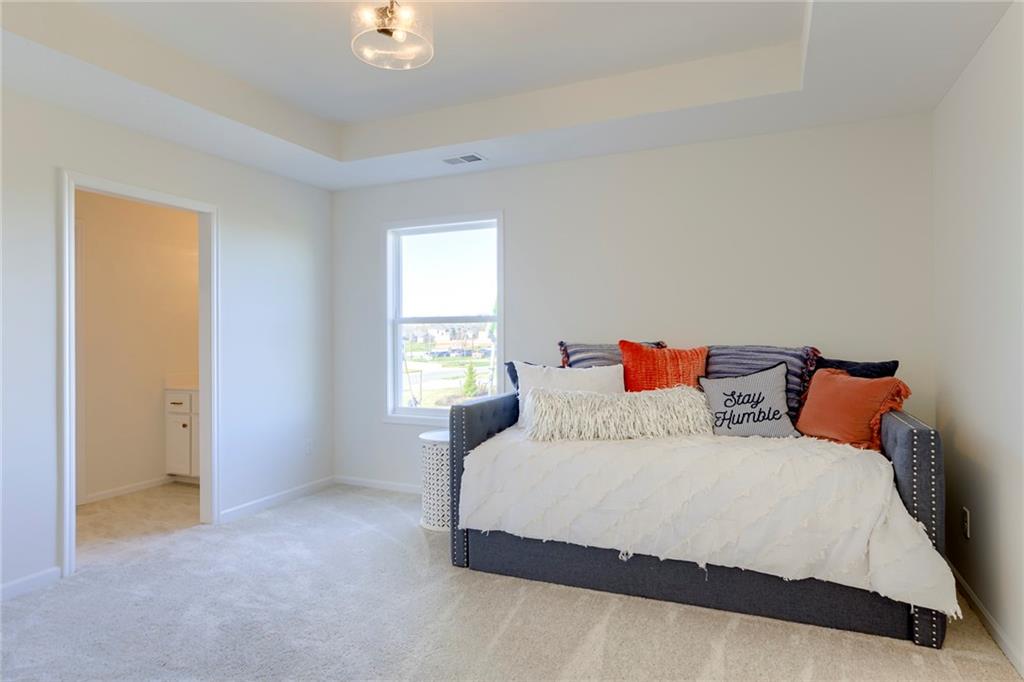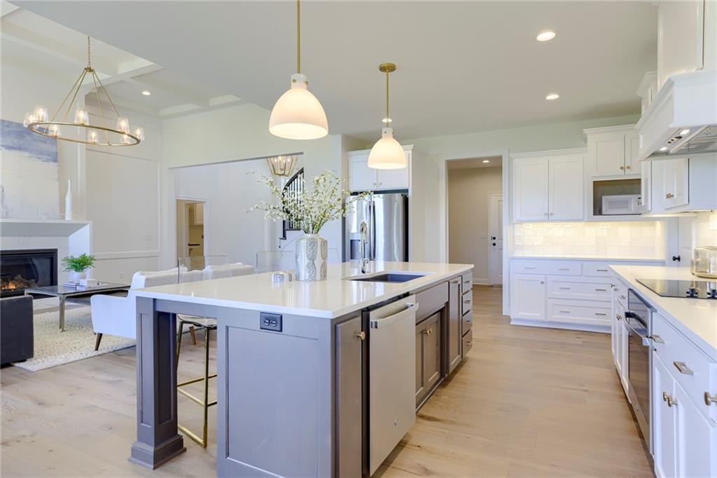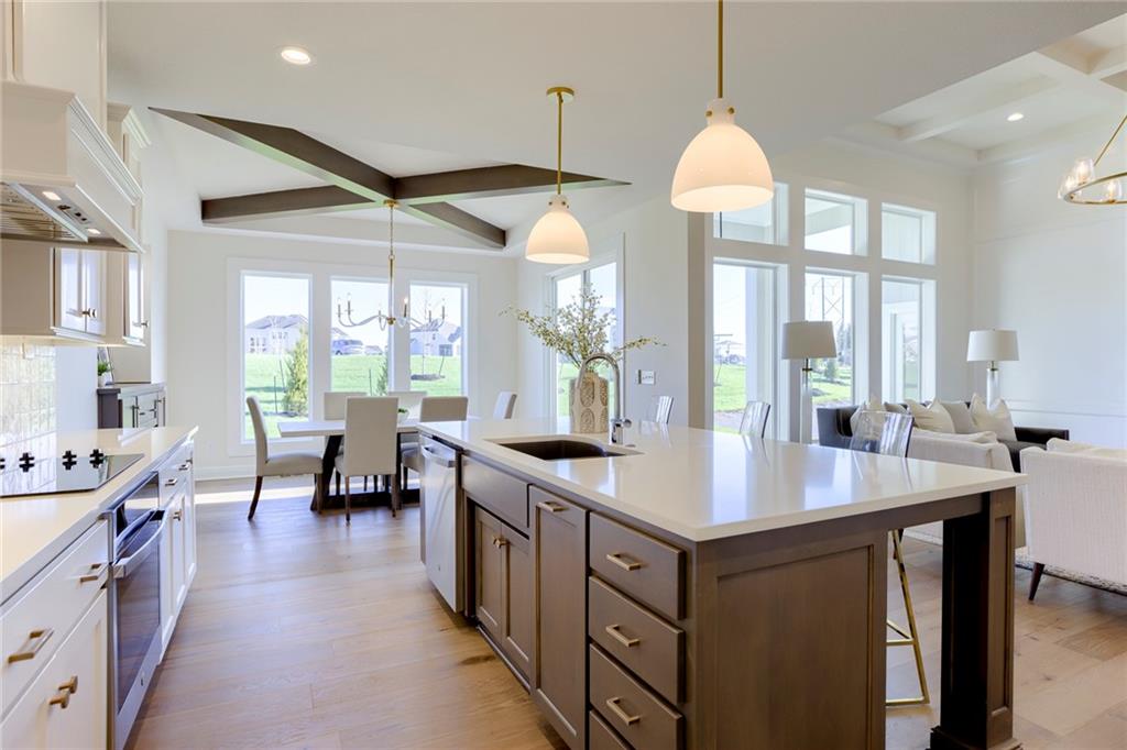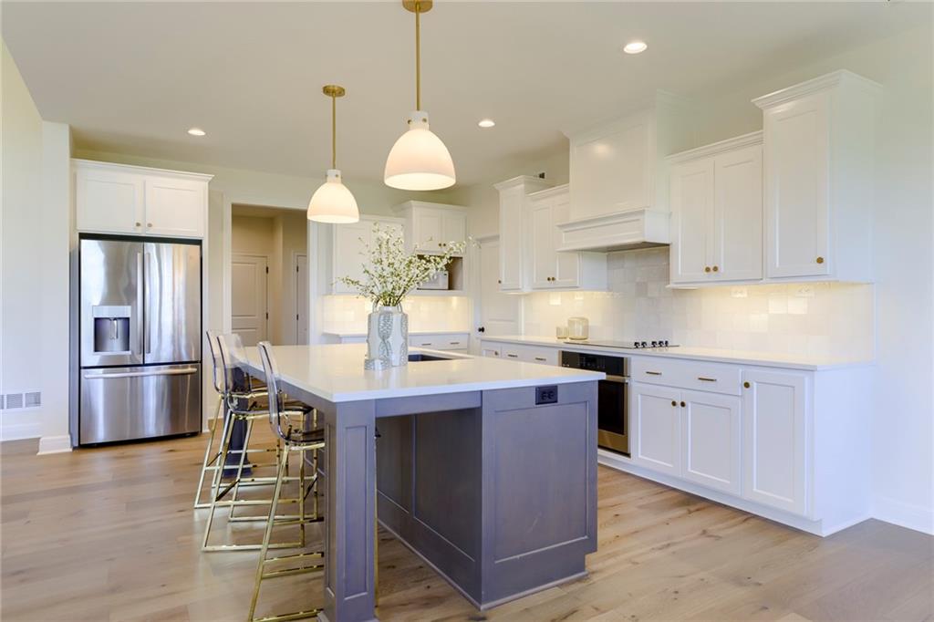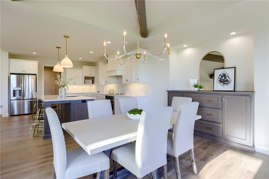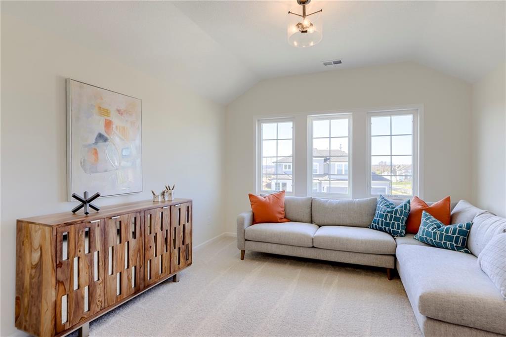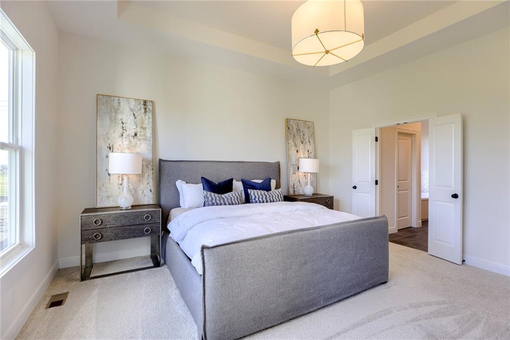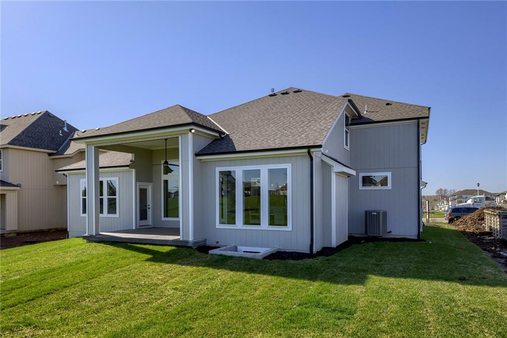 "The El Dorado II" 1.5 Story by Rodrock Homes. Elevation B. This popular 1.5 story plan defines modern living at its best, with thoughtful design elements including a sweeping staircase that creates a striking focal point, and a main level office. A master suite with access to the covered patio and a spa like en suite. Double Vanity with center tower, Free Standing Soaker Tub and large Walk In Closet with available storage space from floor to ceiling. The open kitchen has a prep pantry with tons of counter space and designated space for an additional full size refrigerator. Great room features box beam ceiling and floor to ceiling stone front fireplace. Irrigation included. PLEASE CONTACT LISTING AGENT FOR DETAILS. PICTURES AND VIRTUAL TOUR ARE OF A PREVIOUS MODEL HOME AND MAY FEATURE UPGRADES- PICTURES ARE NOT OF THE ACTUAL HOME. Forest View- a premier Rodrock Community featuring 50 foot Water Fall, Splash Park, Zero entry pool, Sand Volleyball, Playground & Picnic areas. Sport Court includes basketball and 2 pickle ball courts. Cedar Niles Park/Trails is accessible within the Community and Lake Olathe nearby. MOST BUYER SELECTIONS STILL AVAILABLE. AFTER SELECTIONS ARE COMPLETE - 60+ DAYS TO CLOSE.
