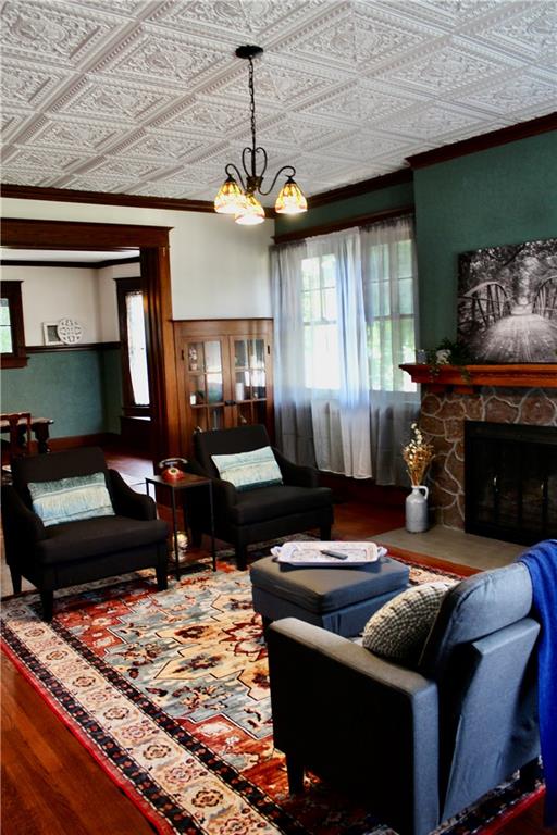 Experience small-town living at its finest with this exquisite 5-bedroom, 3-bath residence—where timeless elegance meets modern comfort. This beautifully maintained home is a true standout, offering classic craftsmanship, rich woodwork, and custom built-ins that speak to a bygone era of quality and care. The remodeled kitchen blends historic charm with thoughtful updates, while fresh paint throughout highlights the spacious, light-filled interiors. Large sunroom just off the kitchen creates the perfect spot for morning coffee or quiet reading. The formal dining room, complete with pocket doors, invites unforgettable gatherings, and the inviting living room features a striking electric fireplace that adds warmth and style. Outside, the welcoming front porch offers a peaceful space to relax and enjoy the charm of this friendly community. A full basement provides abundant storage, and recent updates—including a brand-new roof (2023) and new HVAC (2024)—are already complete. This is truly a home that must be seen in person to be fully appreciated. From its elegant details to its warm, welcoming spaces, every inch of this property reflects pride of ownership. Schedule your private tour today and discover everything this exceptional home has to offer.