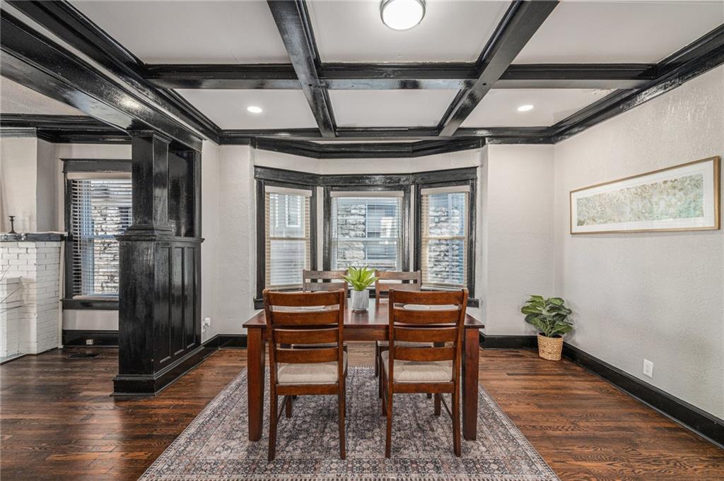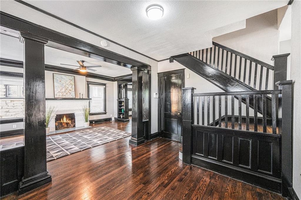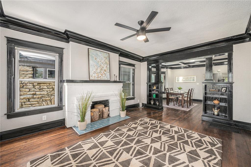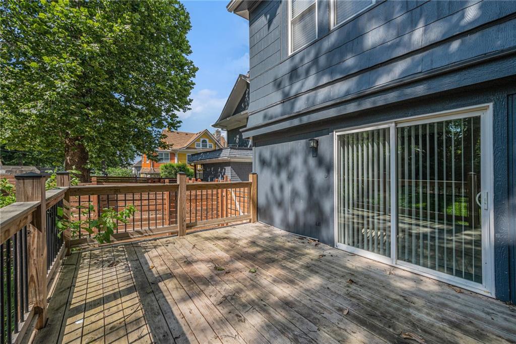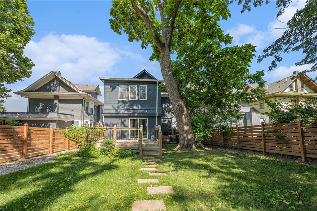 Beacon Hill Beauty! This charming shirtwaist home strikes the perfect balance between modern updates and original character. Fully renovated just before the current owner, it offers both style and functionality. The spacious kitchen features a large peninsula with breakfast bar, two pantry cabinets for ample storage, and a sliding door that opens to the deck and fenced backyard. A private driveway provides gated access to the backyard and a direct entrance to the kitchen—making grocery trips a breeze! The main floor includes a bonus space with a half bath and laundry closet, seamlessly connected to the dining room and kitchen. You'll love the classic Craftsman-style built-ins, hardwood floors, coffered wood-beam ceilings, and the striking brick fireplace centerpiece. The third story boasts carved-out nooks, unique ceiling lines, and a dedicated full bathroom—ideal for spacious guest quarters or a fun family/rec room perfect for hosting. The primary bathroom offers a luxurious frameless glass shower and a double vanity. Outside, enjoy a classic covered front porch and soak in the vibrant energy of this revitalized historic neighborhood—right in the heart of Kansas City! A newly added oversized shed in the backyard is perfect for storing gardening tools, a lawn mower, bikes, kayaks, or anything else you need.