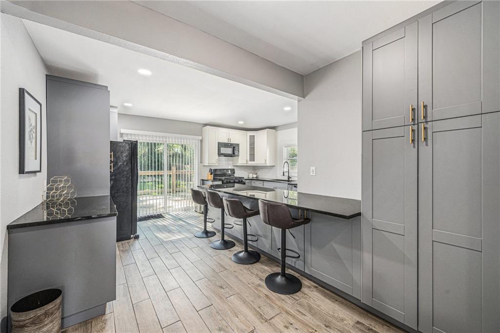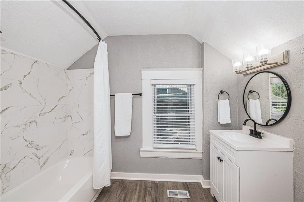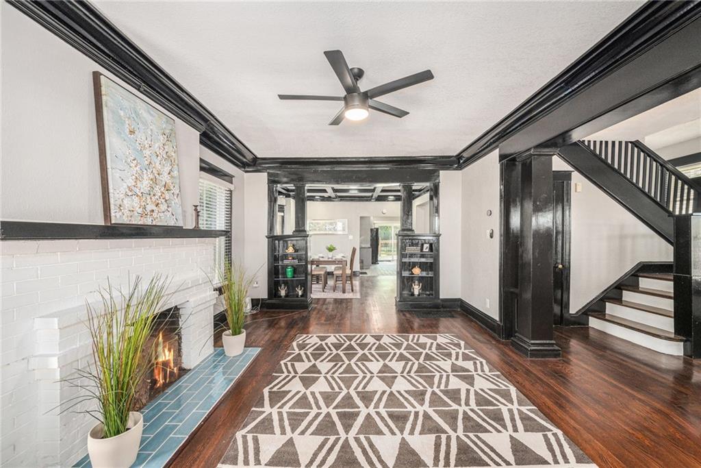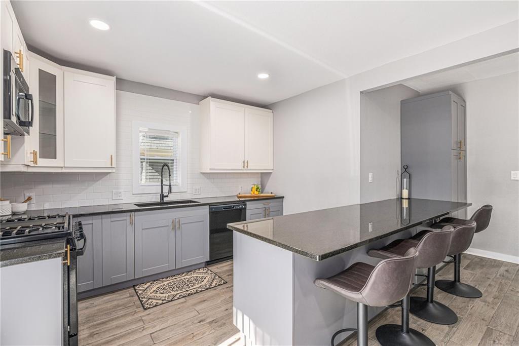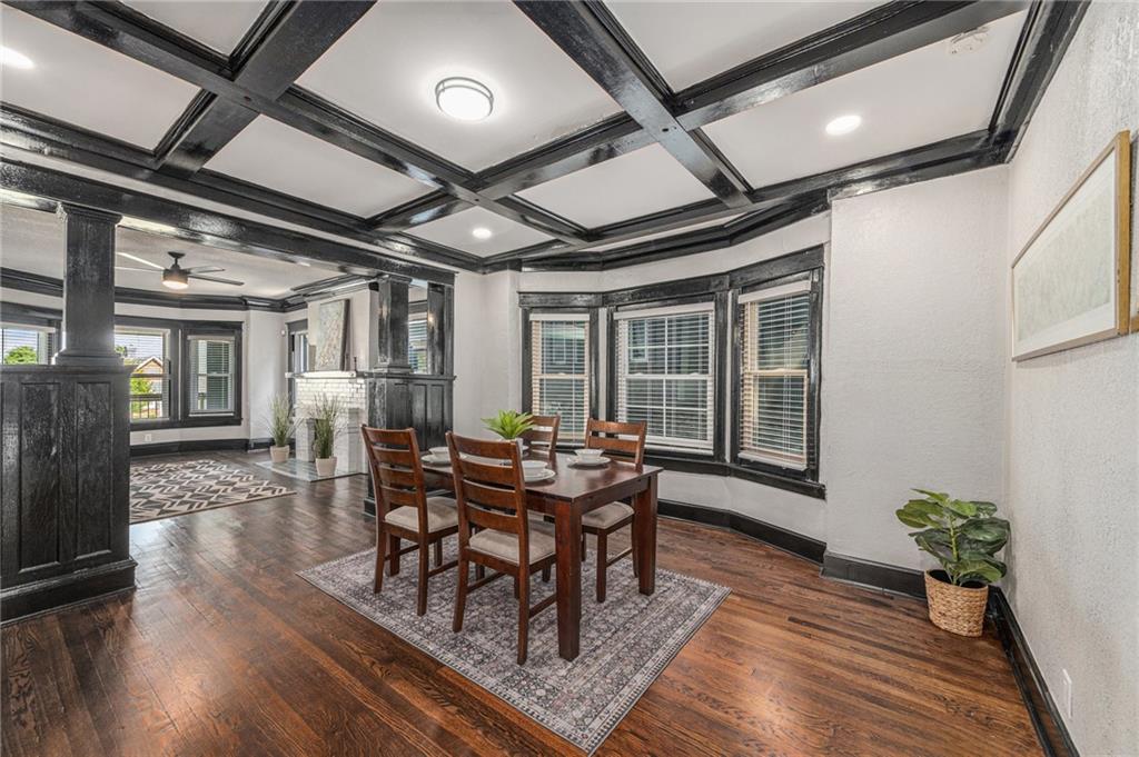 Beacon Hill Beauty! This charming shirtwaist home strikes the perfect balance between modern updates and original character. Fully renovated just before the current owner, it offers both style and functionality. The spacious kitchen features a large peninsula with breakfast bar, two pantry cabinets for ample storage, and a sliding door that opens to the deck and fenced backyard. A private driveway provides gated access to the backyard and a direct entrance to the kitchen—making grocery trips a breeze! The main floor includes a bonus space with a half bath and laundry closet, seamlessly connected to the dining room and kitchen. You'll love the classic Craftsman-style built-ins, hardwood floors, coffered wood-beam ceilings, and the striking brick fireplace centerpiece. The third story boasts carved-out nooks, unique ceiling lines, and a dedicated full bathroom—ideal for spacious guest quarters or a fun family/rec room perfect for hosting. The primary bathroom offers a luxurious frameless glass shower and a double vanity. Outside, enjoy a classic covered front porch and soak in the vibrant energy of this revitalized historic neighborhood—right in the heart of Kansas City! A newly added oversized shed in the backyard is perfect for storing gardening tools, a lawn mower, bikes, kayaks, or anything else you need.