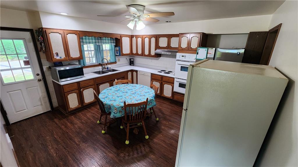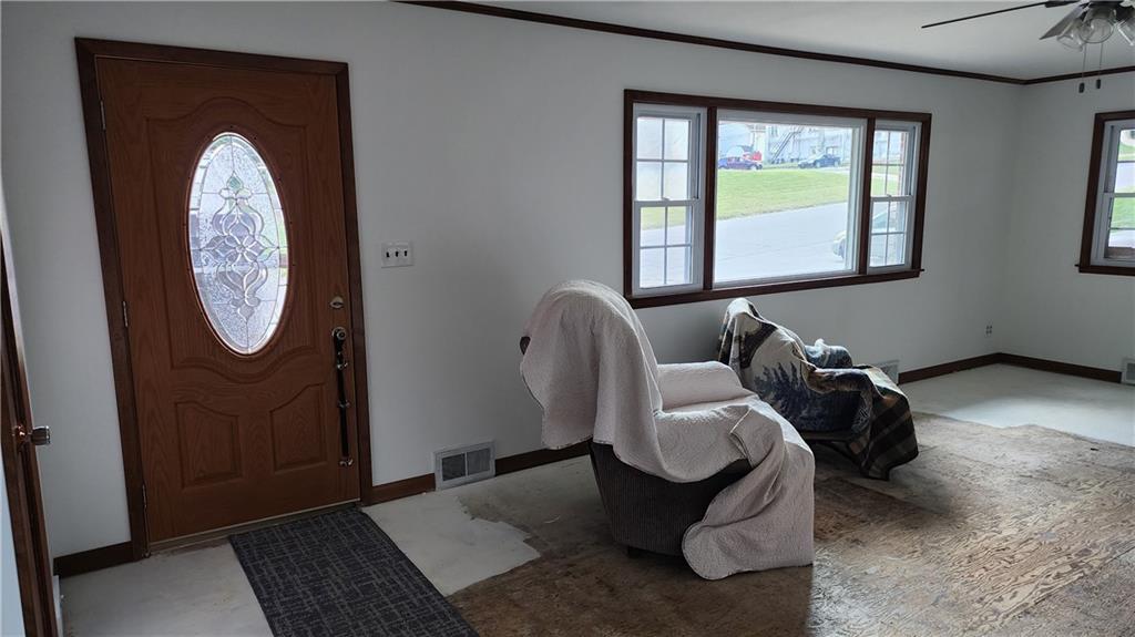 Nice brick home with 3 bedrooms and two full baths. This home has everything you need but flooring. Sellers will let you determine what king of flooring you would like. New sheet rock and paint. Eat in kitchen, back door leads to laundry and bathroom. Main bathroom has been remodeled. Full unfinsihed basement. Nice corner lot with sheds.