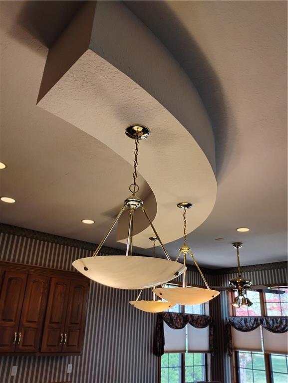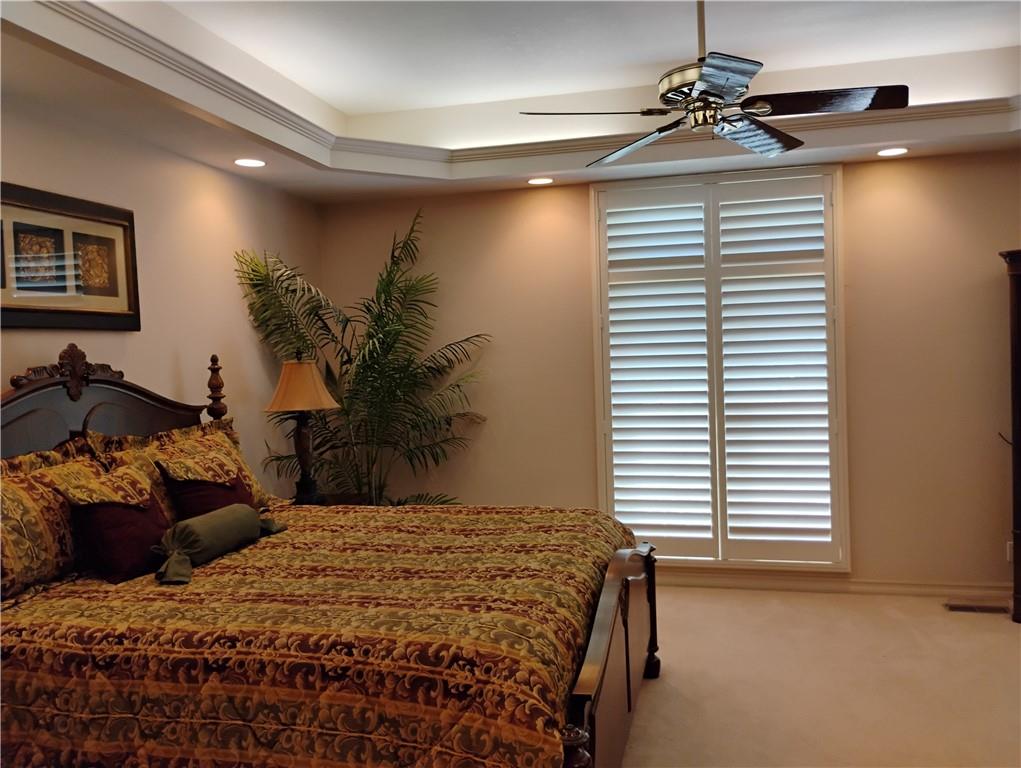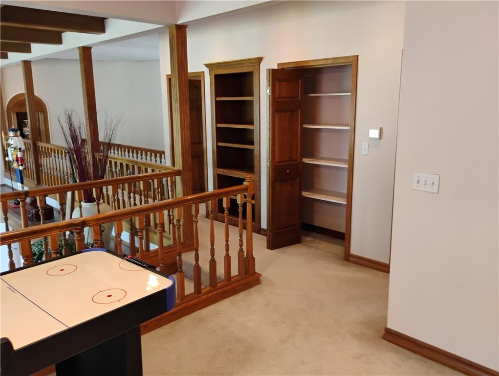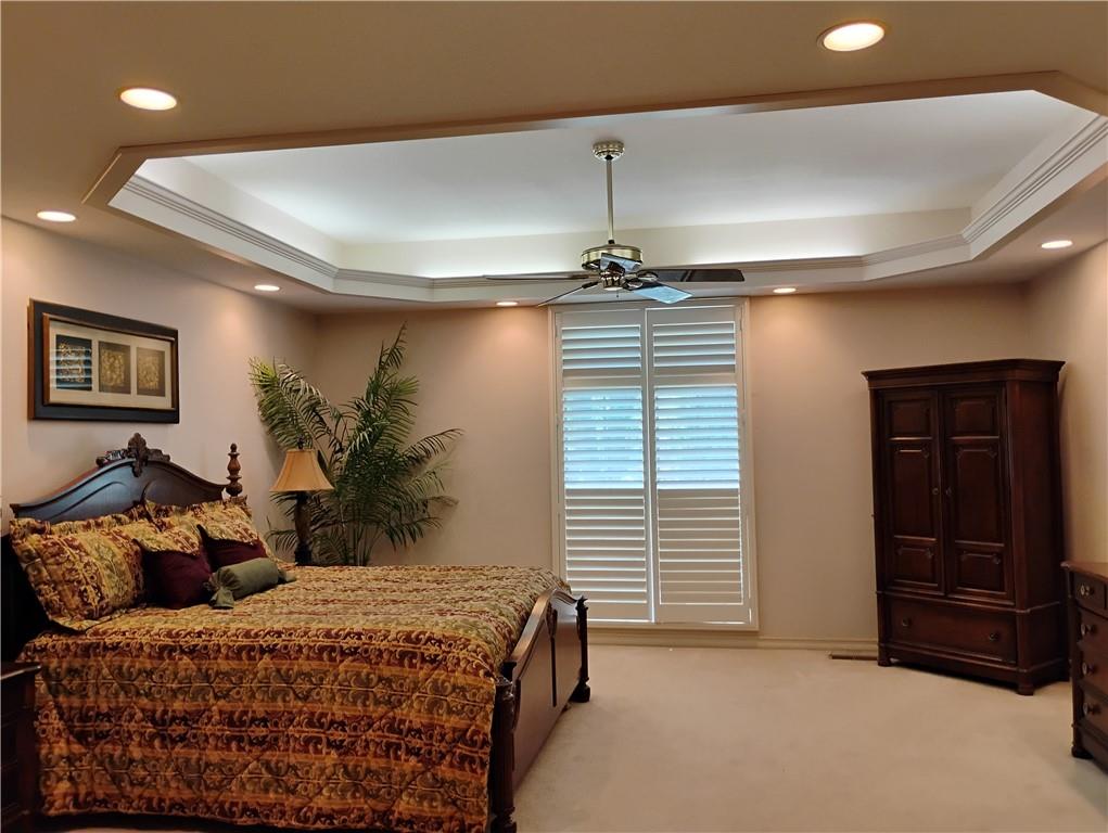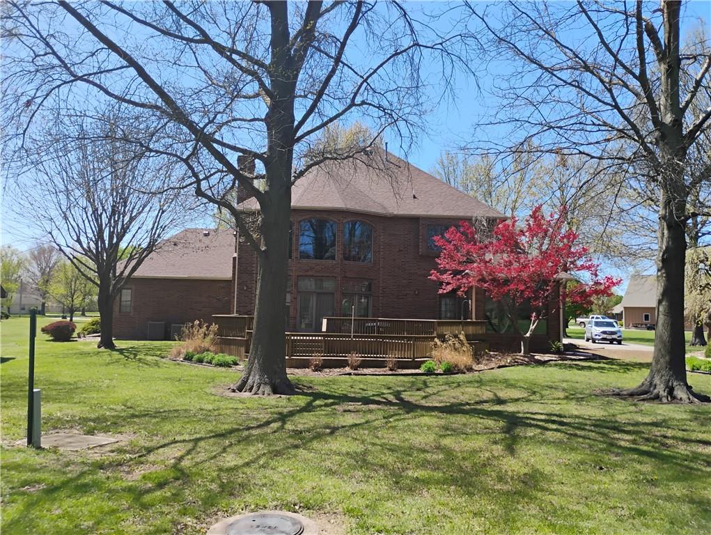 This timeless, custom built home sits on 1.1 acres with mature trees and an oversized deck. Enter the front foyer to the 20ft ceilings that expand into the gorgeous living room w/wood burning/gas fireplace. The living area opens out to French doors onto the rear deck and beautiful yard. This lovely home boasts 2 open separate staircases, one from the front entry and one to kitchen. The open floor plan has a large kitchen with counter height bar & breakfast area with floor to ceiling windows. Between the living area & kitchen area is a full wet bar w/wine storage. Oak cabinetry adorns throughout this one-of-a-kind home. A large, formal dining room w/tray ceiling catches your eye when you walk into the front entry. Off of the kitchen is a spacious 2car garage & utility room w/plenty of cabinets, pull-down ironing board (washer/dryer stay with the home). Also, the first floor has a nice powder room w/half bath. This home includes a central- vac system & attachments. Flooring consists of ceramic tile & carpet throughout. Primary bedroom is a large 20'x27' w/10'ft lighted tray ceiling & beautiful plantation shutters on the windows & double door entry adds a nice touch. Ensuite primary bath is a large 14'x14' with jetted tub & large shower. Separate dressing vanities/sinks, make-up vanity with seating. Plantation shutters offer total privacy on the bath windows. The primary bedroom offers separate oversize master closets for both. They are customized with solid wood shelving & an added (3'x3') security closet. Don't wait, this dream home could be yours to enjoy.