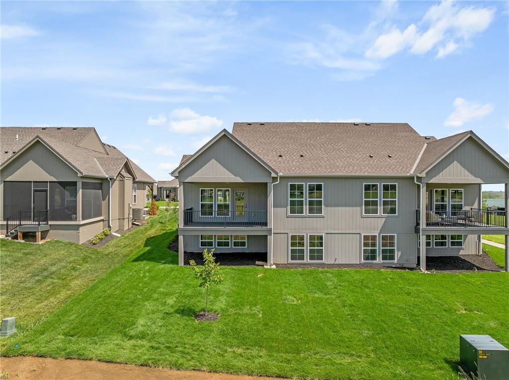 MOVE IN READY! Welcome to the Luxury Twin Villas in Lenexa's hottest neighborhood, Bristol Highlands Villas! Introducing the Newport Reverse plan by Lambie Homes on lot 44R, featuring maintenance-provided living. The Newport features 3 bedrooms, 3 bathrooms. Step into this open concept plan impressive Great Room with a vaulted, beamed ceiling, cozy fireplace, windows and door to the covered deck where you can relax or entertain. The heart of this home is the kitchen with soft-close drawers, stainless appliances, gas cooktop, microwave, oven, and dishwasher. Plus, find a pantry, gorgeous quartz countertops, & a sizable island to gather around. Unwind in the primary suite which boasts an impressive, vaulted ceiling, double doors to the bathroom, double vanity, tiled shower, & walk-in closet, conveniently connected to the laundry room. Builder is adding lower-level bedroom and bathroom. HIGH-END STANDARD FEATURES INCLUDE A 2-CAR GARAGE WITH OPENER & KEYPAD, 96% EFFICIENCY FURNACE, 14 SEER AC, 50-GAL. WATER HEATER, HUMIDIFIER, PRE-PIPING FOR RADON MITIGATION, CROWN MOLDING, TILE SURROUNDS IN ALL SHOWERS, & FULL-YARD IRRIGATION SYSTEM! AND DON'T FORGET ABOUT THE 1-YEAR BUILDER WARRANTY. Just minutes from easy highway access, Lenexa City Center, Lake Lenexa, Shawnee Mission Park, an array of restaurants and award-winning DeSoto schools. Stop by our twin Villa model at 8217 Aurora St. in Lenexa. Open daily 11-5 pm & Sunday 12-5 pm. Don't miss this stunning new home at this incredible price today!