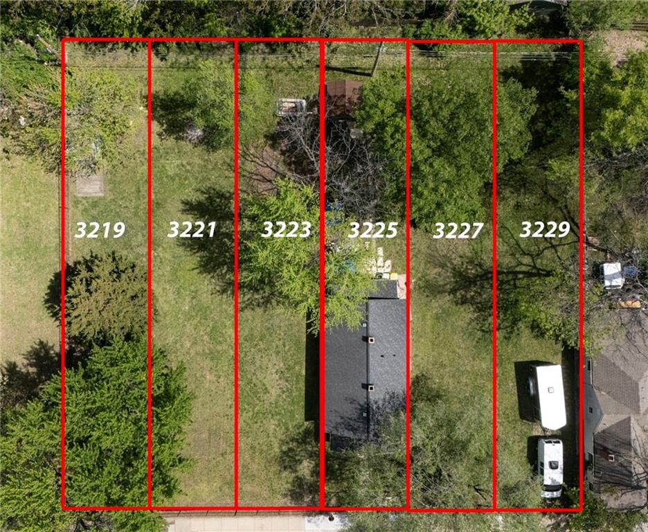 EXCEPTIONAL INVESTMENT OPPORTUNITY. Zoned R 2.5, these six contiguous lots totaling 19,500+ sq ft are prime for residential development! Entire group of parcels are securely fenced together on a mature tree-lined street in North Hyde Park. Rare offering of 150 ft of street frontage. Great walkability, steps from Tower East/Martini Corner, and KC Street Car routes. Centrally located between Country Club Plaza, Crossroads Arts District, and Downtown. Near Truman Medical Center, Children's Mercy Hospital, UMKC, and close highway access. Lots included in this package are 3219, 3221, 3223, 3225 (home located here), 3227 and 3229. Cross reference to Land listing MLS#2545184 PRICED TO MOVE THIS WON'T LAST LONG. Secure fence includes multiple drive-in gates, thicker posts mark approximate property lines. Existing house is functional and could be used as construction office during development or be rental ready with a few finishing touches! Properties are being sold "as is".