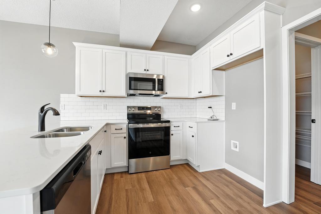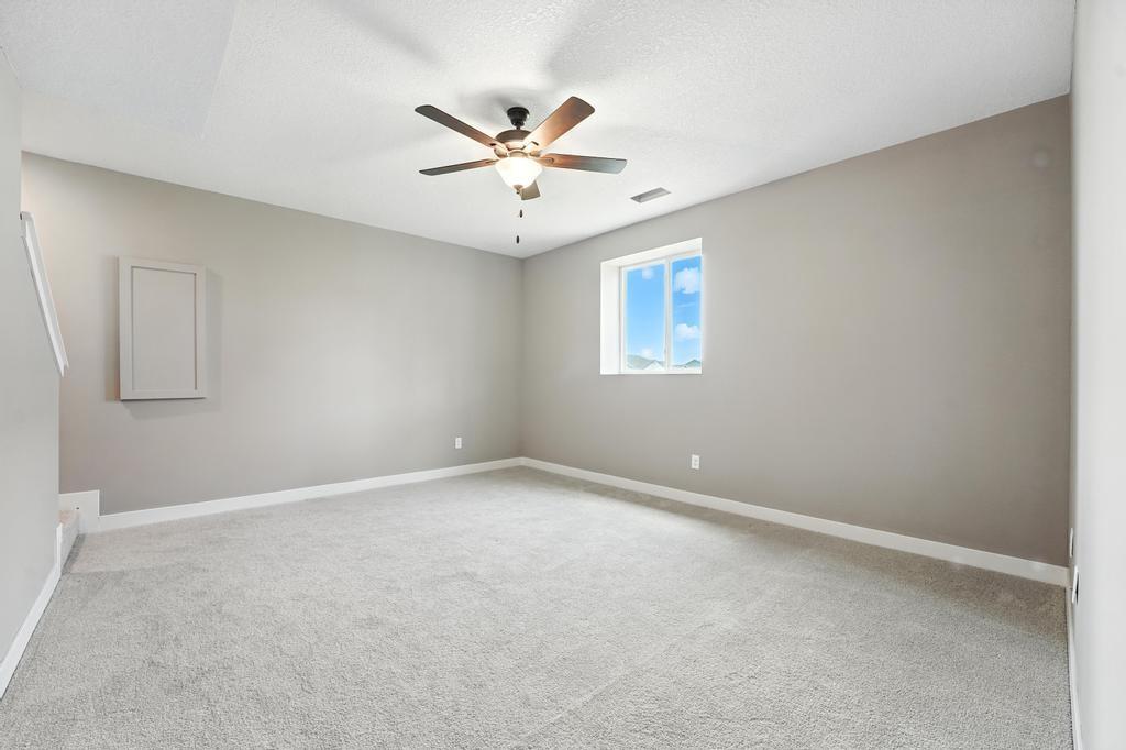 PRICED TO SELL! This former model home is available at a fraction of the reproduction costs and is fully finished. 4-bedrooms, 3.5-bath home , with a finished basement. Quartz countertops with a tile backsplash in the kitchen, luxury vinyl plank flooring throughout main level, stainless steel appliances, and an oversized walk-in pantry. A convenient half bath on the main level adds to the ease of entertaining and daily living. Upstairs, a versatile loft provides additional space. The generous 14x14 primary suite includes a private bath with a double vanity, walk-in shower, and large walk-in closet. Two additional bedrooms share a full bath, and the laundry room at the bedroom level adds convenience right where you need it. The finished basement expands your options with a spacious rec room, fourth bedroom, and full bathroom. Located in the sought-after Woodlawn Estates, this home gives you close access to resort-style amenities featuring a sparkling pool, pickleball and basketball courts, frisbee golf, a playground, outdoor fire pit, and a fishing pond—designed for relaxation, recreation, and connection.
