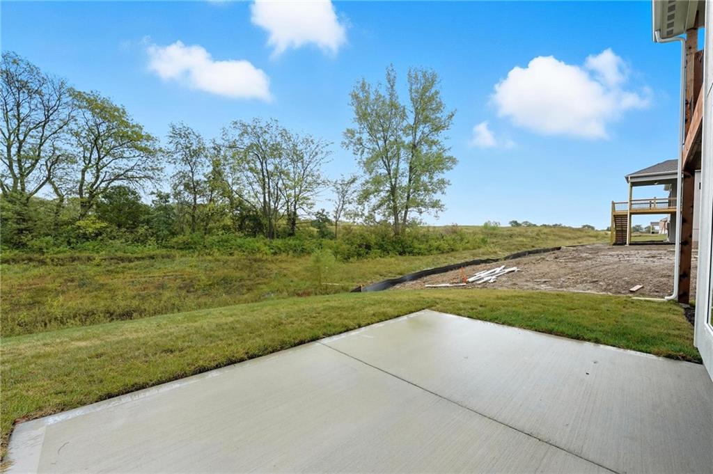 Stunning New Construction "Tatum" Reverse 1,5 Story designed and built by Award-Winning New Mark Homes. Introducing a beautifully designed new floorplan by renowned builder New Mark Homes, located on a premium walkout lot that backs to trees. This thoughtfully crafted home offers main-level living with designer finishes, functional spaces, and scenic views—perfect for modern lifestyles. The open-concept great room welcomes you with hardwood floors, a gas fireplace, and custom built-in shelving. The gourmet kitchen is a showpiece, boasting a large island, quartz countertops, custom cabinetry with glass uppers, a walk-in pantry, and a gas range. The generous breakfast room offers ample space for family and guests alike. The main-level primary suite is a private retreat, featuring a spacious walk-in closet and a spa-like en-suite bath complete with a free-standing soaker tub, quartz countertops, a beautifully tiled shower, and a double vanity. A secondary bedroom on the main floor adds flexibility—perfect for guests or a home office. You'll also find a laundry room and mudroom for added convenience. Step out onto the covered deck and take in the peaceful wooded view, or head downstairs to the finished walkout lower level, which includes two additional bedrooms, a full bath, wet bar, and a large family room filled with natural light thanks to generous windows. Located in a vibrant community featuring a swimming pool and walking trails, and served by award-winning North Kansas City Schools, this home is the perfect blend of luxury, comfort, and lifestyle. Estimated completion: September/October 2025. Don’t miss your opportunity to own this exceptional new home in a prime location! Pictures as of 8/28/2025.