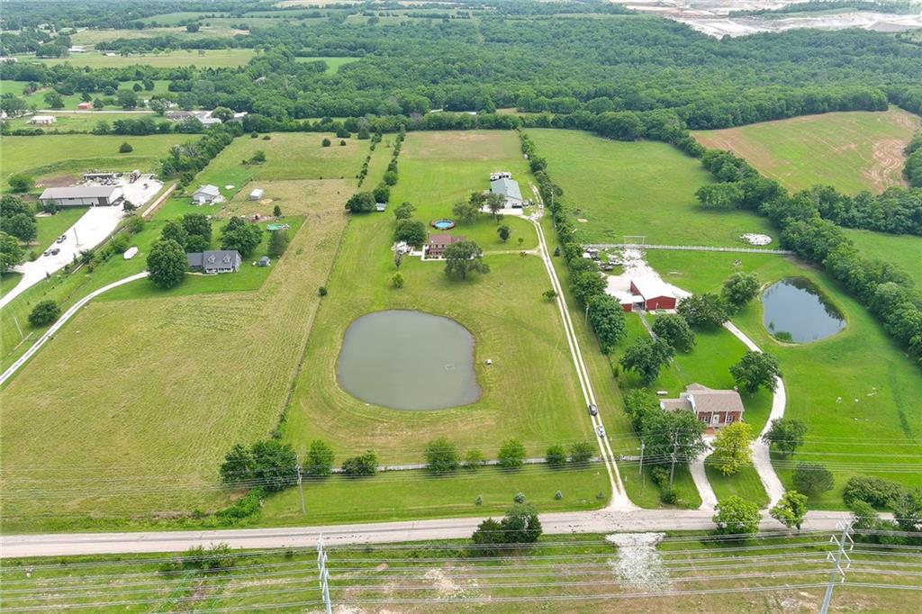 Versatile Estate with 4,400 Sq. Ft. Morton Building on 10 Scenic Acres in DeSoto, KS Unlock the potential of this exceptional property—perfect for entrepreneurs, hobbyists, or anyone seeking space to live, work, and play. Set on 10 gently rolling acres, this gated estate offers a mix of open pasture, mature trees, and a peaceful stocked pond. The land is well-suited for livestock, gardening, recreational use, or future outbuildings—giving you room to grow and the flexibility to create your vision. The standout feature is the impressive 4,400 sq. ft. Morton building, complete with heat, AC, a loft, and a full bath with a whirlpool tub. Whether you're running a small business, storing equipment, restoring cars, or simply need serious workshop space, this structure offers unmatched versatility. The two-story home combines modern comforts with country charm, featuring granite countertops, hardwood floors, and a spacious layout with four bedrooms and four bathrooms. Outside, enjoy serene views, a sparkling pool, and mature fruit trees that add to the estate’s character and functionality. Located just minutes from K-10, this unique property blends rural tranquility with easy city access—ideal for work-from-home lifestyles or business operations.