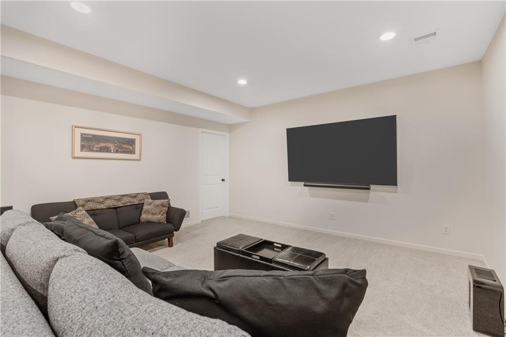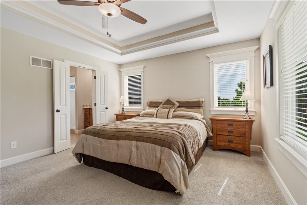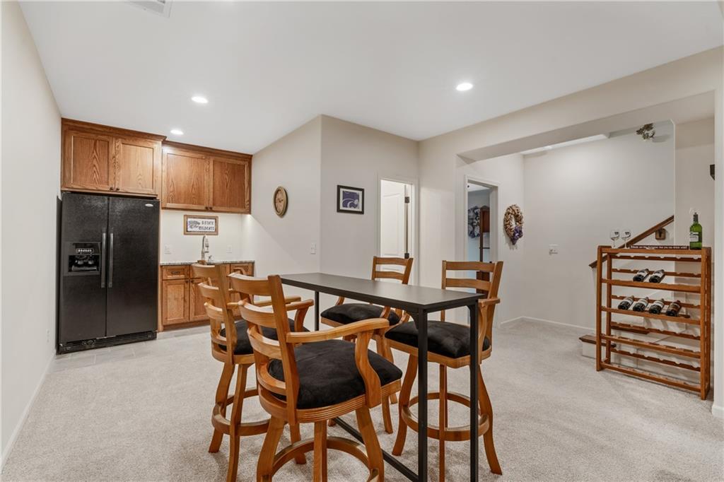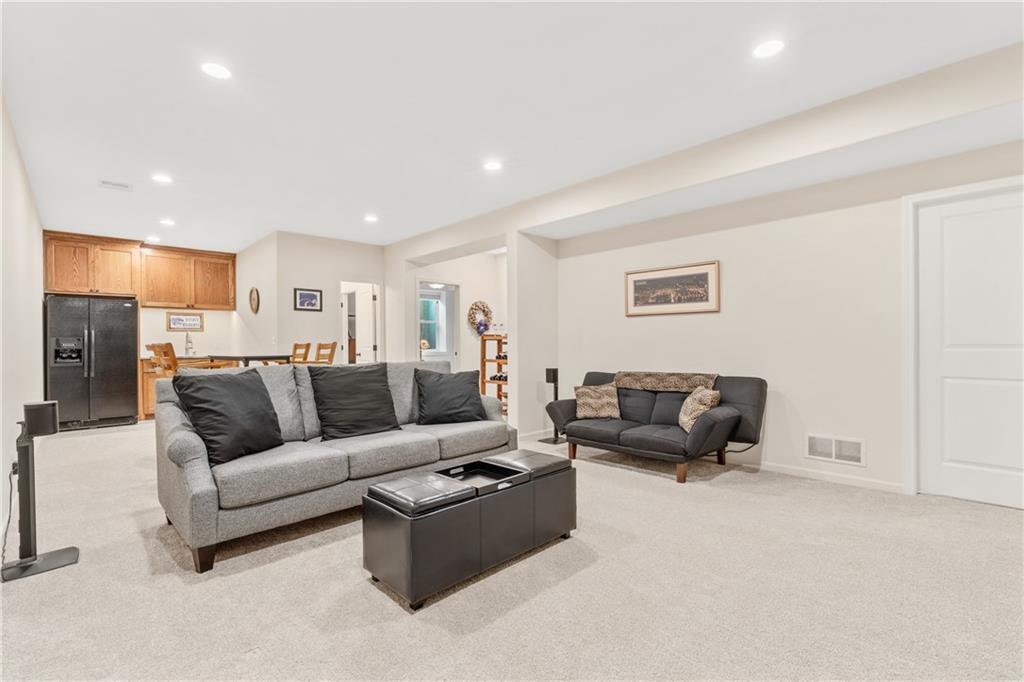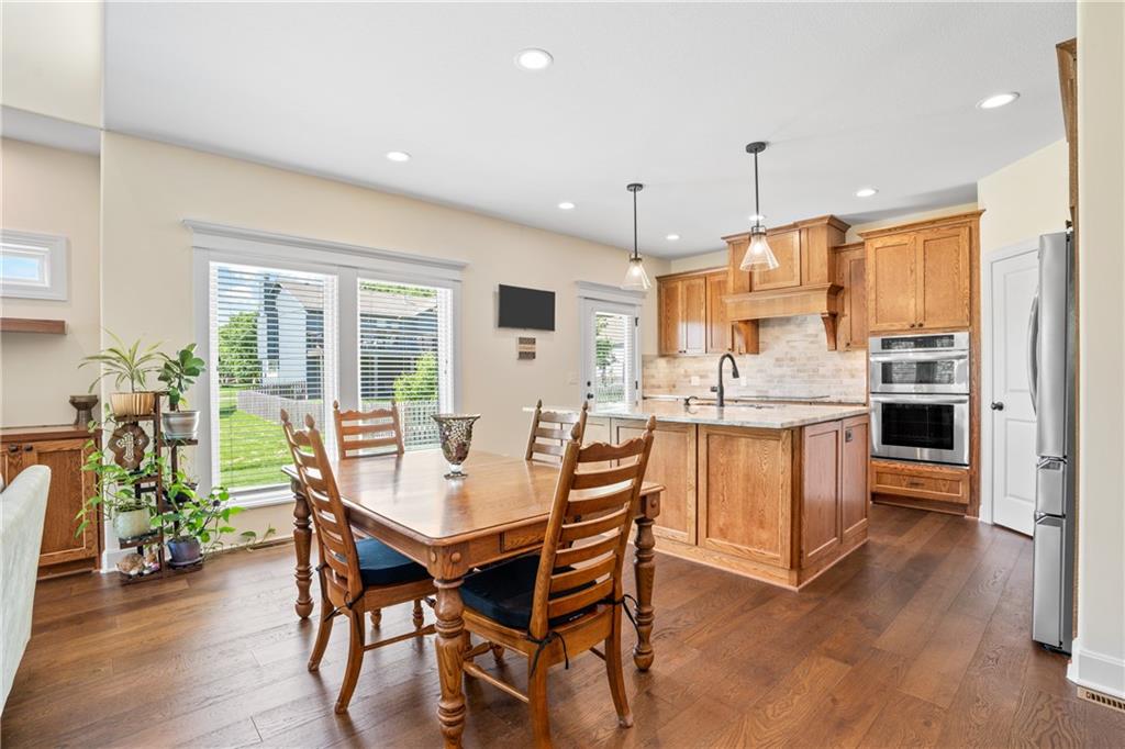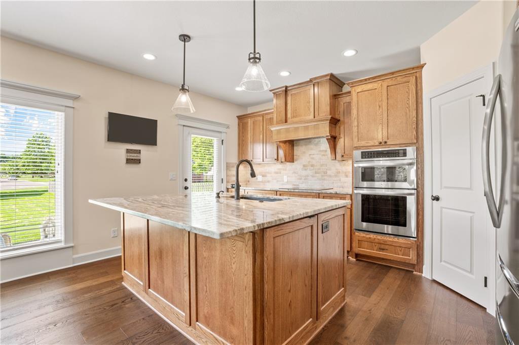 Experience small-town luxury in this stunning custom 1.5-story smart home, located on a quiet cul-de-sac. Thoughtfully designed and nearly new, this residence blends contemporary style with high-end features and energy-efficient systems! Striking exterior finishes include clapboard, shake siding, decorative stucco, stonework, soffit lighting, and professional landscaping. Enjoy a covered patio for morning coffee and a second open patio ideal for entertaining, connected by stone pavers and a walkway to the garage. Inside, the open floor plan features soaring ceilings, large casement windows, and a 9’ stone fireplace flanked by built-ins. Premium hardwood floors run throughout the main living spaces. The gourmet kitchen is a chef’s dream with granite countertops, a large island with seating, walk-in pantry, WiFi-enabled LG appliances, restaurant-style vent hood, and soft-close white oak-stained cabinets. A flex room off the main living area makes an ideal home office. The spa-like primary suite offers a tray ceiling with cove lighting, walk-in rainfall shower with bench, dual granite vanities, and a custom walk-in closet connected to the laundry room. Upstairs are two bedrooms, a dual vanity full bath, and a loft overlooking the great room. The finished basement includes a 4th bedroom with ensuite bath, a large rec room, wet bar, kitchenette, and oversized unfinished flex space. The oversized 3-car garage includes WiFi-enabled doors and a built-in sink. Smart features include Cat 5 wiring, dual-zone HVAC with humidity control, WiFi lighting, and an 8-zone Rain Bird irrigation system and a Sonos audio system on patios. Generator-ready and pre-wired for solar. Located steps from trails, a 4-acre park, shops, and dining. Just minutes to Hillsdale Lake and Sycamore Ridge Golf Course. Schedule your showing today!