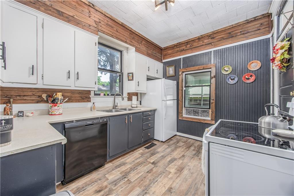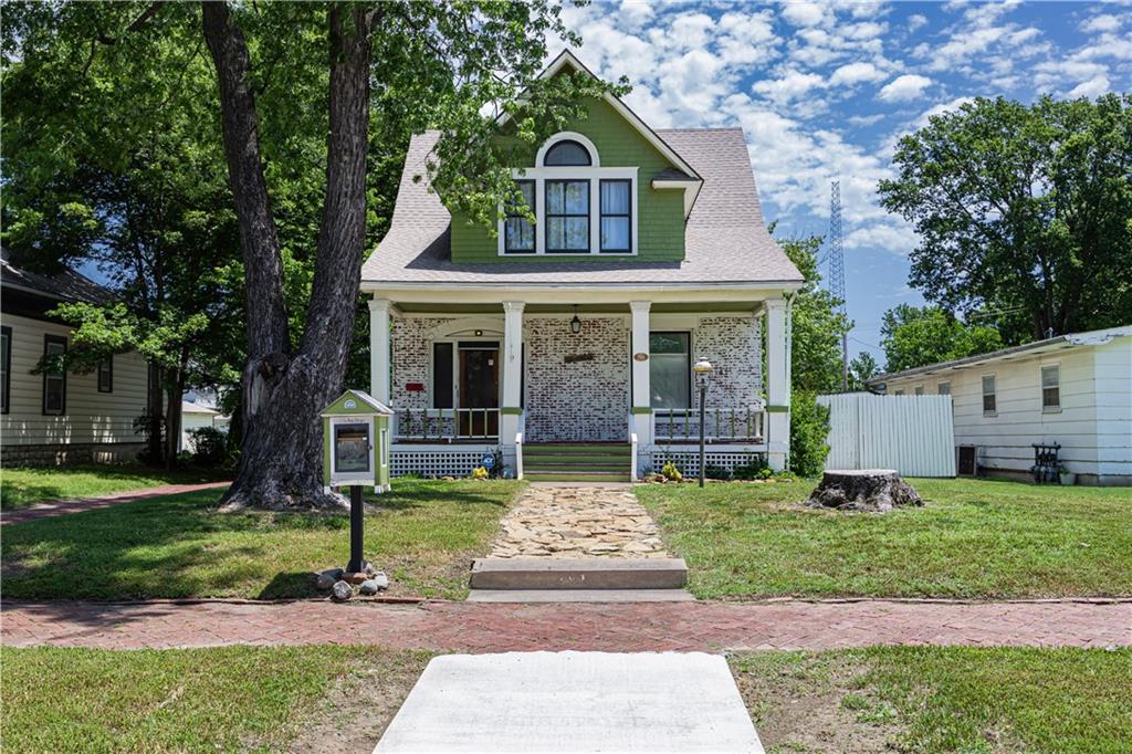 Step into a storybook home where charm, character, and history meet. Nestled under the shade of mature trees is a true Coffeyville classic. With 1,956 sq ft of vintage charm, this home offers everything old-house lovers crave: hardwood floors, stained glass windows, and even the original blueprints that whisper tales from another time. Step through the front door and be greeted by warm wood floors and natural light pouring through colorful stained glass panes. French doors add a timeless touch connecting the two living areas. The spacious dining room—complete with a pantry—is the perfect setting for dinner parties or breakfasts with your favorite book. And don't miss the pocket doors- Not only do they offer flexible space and privacy, they preserve the historic soul of the home in a way that’s both functional and beautiful. From there, step into the cozy kitchen, where the included fridge and stove make it move-in ready. Upstairs, you'll find a freshly remodeled bathroom with a brand new shower/tub surround, and three inviting bedrooms ready for your personal touch. There is also a small ½ bath located downstairs. Outside, the magic continues. A sprawling back porch begs for a rocking chair and a tall glass of sweet tea—it’s the seller’s favorite spot to unwind. While the porch could use some love (new wood and screens), the potential is undeniable. The property features a detached garage, partially fenced yard, and even an area formerly used to keep chickens. Bonus: the back alley access with wide and narrow gates makes it functional and flexible. And did we mention the Free Little Library out front? Whether you're a book lover or just someone who believes in the magic of stories, this sweet detail makes the home even more special. Homes with this much character don’t come up often. Schedule your private showing today—before someone else falls in love with your dream home!