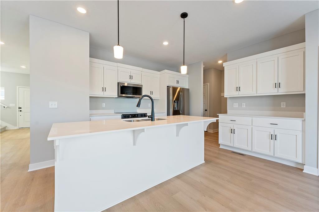 READY IN 90 Days! Located in Abbey Valley, Summit Homes new community in Olathe. The Winfield home plan is a beautifully designed 2-story lifestyle home that combines charm with an open and inviting feel, making it perfect for both everyday living and entertainment. The main level features a spacious open floor plan that seamlessly connects the kitchen, dining, and living areas, creating a cohesive space. Additionally, a versatile flex room is strategically located on this floor, offering the ideal space for a home office, study, or additional living area. The second floor houses all four bedrooms, including the luxurious primary suite, which is thoughtfully positioned away from the other bedrooms for added tranquility. The primary suite is a true retreat, featuring a huge walk-in closet and a well-appointed bathroom. The secondary bedrooms are also well-designed for comfort and convenience. Two of these rooms have a full bathroom in between them, ideal for sharing, while the third bedroom has its own private bath, perfect for guests or family members who value their own space. Looking for additional space? Consider finishing the lower level to include a rec room, another bedroom, and an extra bathroom, enhancing the versatility and functionality of your home. Home is under construction. Estimated Completion - Mid December.