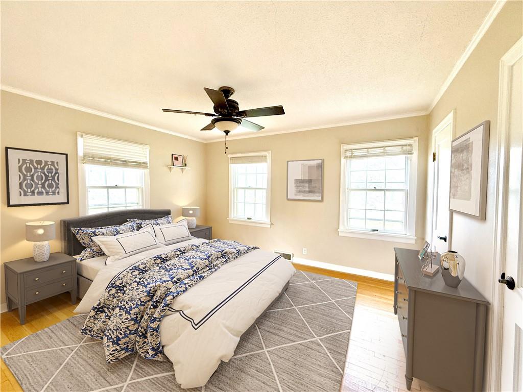 Roomy 3 Bedroom home in a great neighborhood. Located near the middle school, this home offers solid features, including hardwood floors, oak kitchen cabinets, a loft above the garage for storage, and a mudroom with heated tile flooring. The screened-in back porch overlooks a fenced backyard, perfect for outdoor enjoyment. A two-story fireplace provides cozy ambiance on both levels. You'll appreciate the ample storage space and blacktopped driveway. The basement walls have been repaired and are ready for finishing touches. HUD homes are Sold As Is and this one does need some updates/repairs, but has great potential for a buyer ready to make it their own.