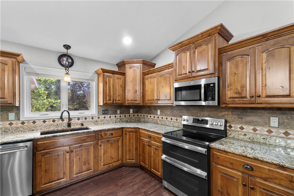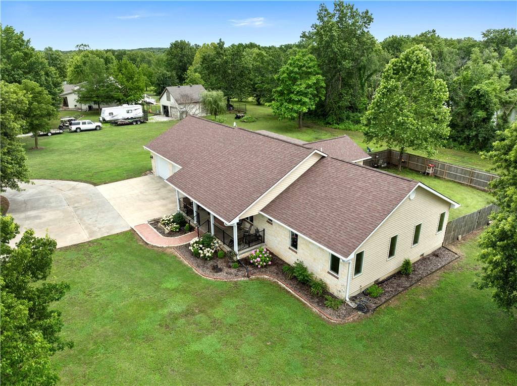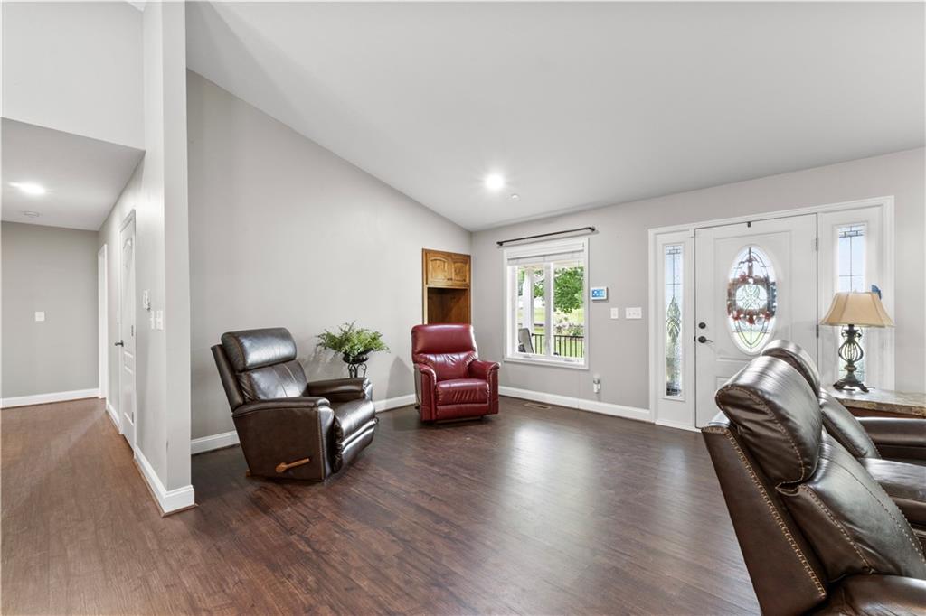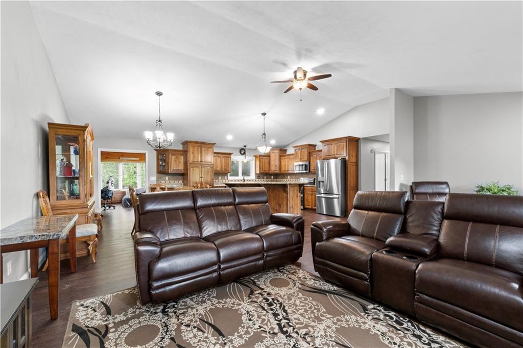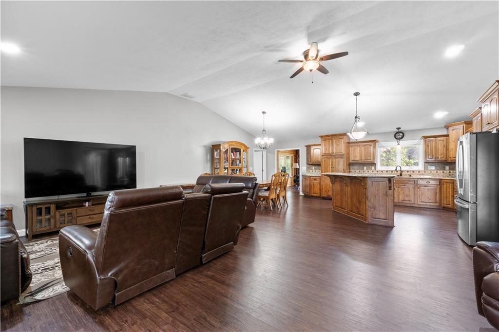 Step into over 2,000 square feet of beautifully designed open-concept living in this stunning contemporary home. The sun room features rich cedar walls, a soaring cathedral ceiling, and an abundance of natural light—creating a warm and inviting atmosphere perfect for both relaxing and entertaining. The kitchen boasts granite countertops, modern tile flooring, and comes fully equipped with all appliances. It flows seamlessly into the living and dining areas, making everyday living convenient and connected. The master suite offers a spa-like experience with a walk-in tiled shower and elegant tile throughout the bath. Step outside to enjoy a large patio overlooking a tastefully landscaped yard—ideal for outdoor gatherings or peaceful mornings. Situated on .90 acres just west of town, this property is truly a must-see!