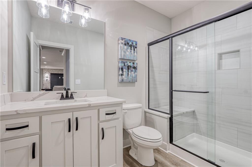 Lot 122 The "Prairie Rose" by McQueen Homes! Spectacular home and LAKE views in a GOLF COURSE COMMUNITY!! This home is UNDER CONSTRUCTION and FINISHED PHOTOS ARE FROM A PREVIOUS HOME. Can be ready in 30 days or less! Reverse plan with open Great Room full of windows with fireplace. Open to the Kitchen and Dining Area with large Island & walk in pantry. The Primary Bedroom boasts a double box up ceiling and windows to view the lake! Additional higher transom windows on a feature wall for added light. Unique Primary Bathroom has a walk in shower and a stand alone tub viewing the lake! Second Bedroom and Bath are on the main level. The Lower Level walkout Rec Room includes a wet bar, entertainment area and gorgeous upgraded sliding doors to your outdoor living. A full bath and Bedrooms 3 & 4 complete the lower level. Tons of storage. Large covered deck and additional uncovered deck for viewing the Lake. Large patio at the lower level walk out. All homes in the Boulder Estates come with irrigation system and fully sodded yard. Riprap seawall at property edge also included. Convenient highway access. Ten minutes to the Legends and 30 minutes to the airport and most other parts of the metro area as well as Lawrence. Community pool, play area, basketball, tennis and pickleball courts. Wonderful restaurant open to the public. Acclaimed Basehor-Linwood Schools!