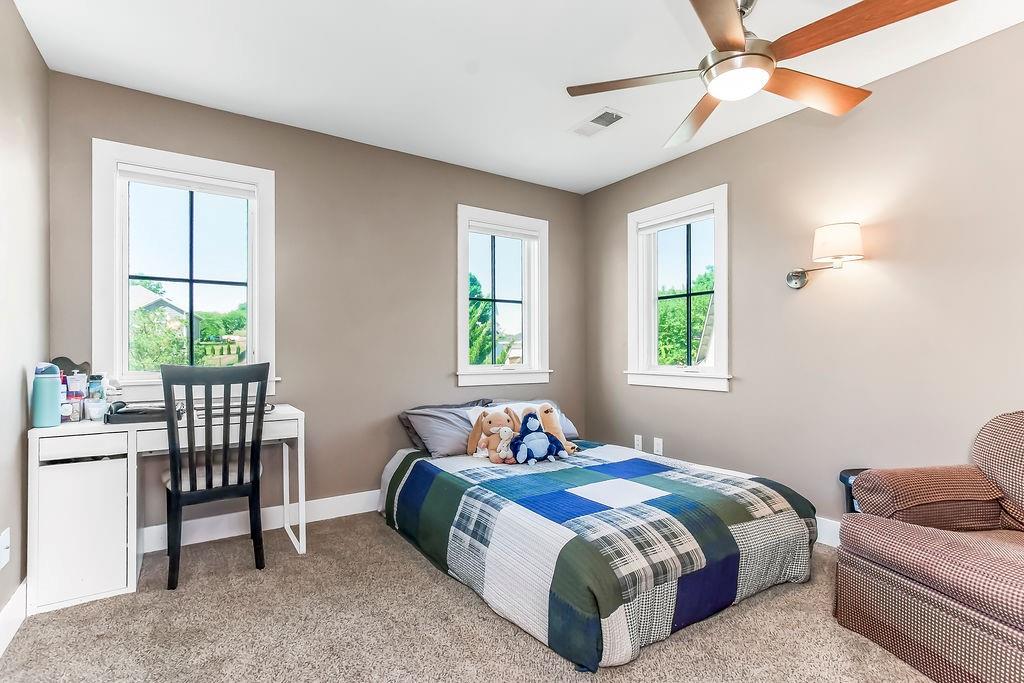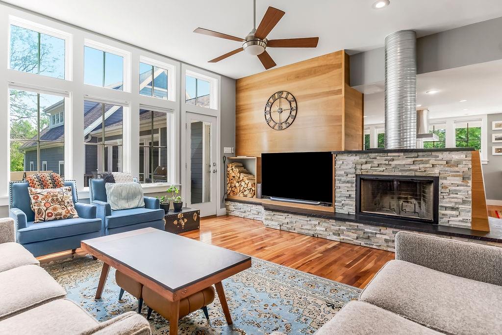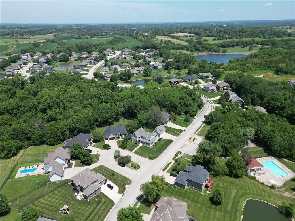 Nestled in the desirable Whispering Pines Estates, this spectacular custom home offers an unparalleled living experience, thoughtfully designed with attention to every detail. The unique open layout flows seamlessly, featuring an inviting great room with soaring 10’ ceilings and a cozy wood-burning fireplace, ideal for family gatherings and entertaining. The chef’s kitchen is a culinary delight, with high-end appliances, double oven, and gas stove. Just off the kitchen, savor your morning coffee or an evening cocktail on the screened-in porch while taking in the views. Enjoy formal meals in the dining room or relax in the comfortable formal living area. A main-level master suite and laundry room offer ultimate convenience. Upstairs are two generous bedrooms with walk-in closets, the second full bath, and a spacious recreation room. The walk-out lower level offers additional living space with a family room, a wet bar, a third full bath, and ample storage. Above the 3-car garage, a versatile finished space awaits, currently a private studio – perfect as a home office, or a desirable 4th bedroom. Beyond the walls of this magnificent home, indulge in additional highlights like the welcoming wraparound front porch and the expansive composite deck overlooking the beautifully landscaped, fenced backyard. Gleaming cherry hardwoods grace the interiors, while Google Fiber ensures seamless connectivity. See the full list of property features in supplements. Whispering Pines Estates offers an exceptional lifestyle, located within the award-winning Piper school district and just minutes from schools, shopping, and KC Legends. Enjoy the community’s amazing amenities, including a refreshing swimming pool, clubhouse, walking trails, four stocked ponds, and a basketball court. This is truly an exquisite living experience in a coveted community.