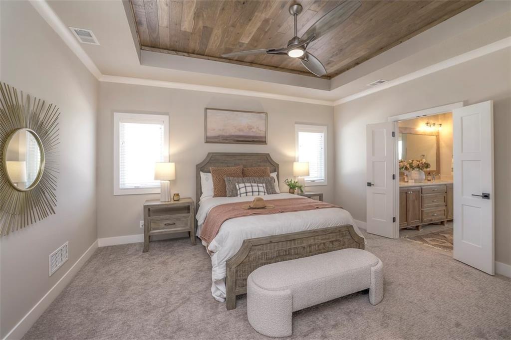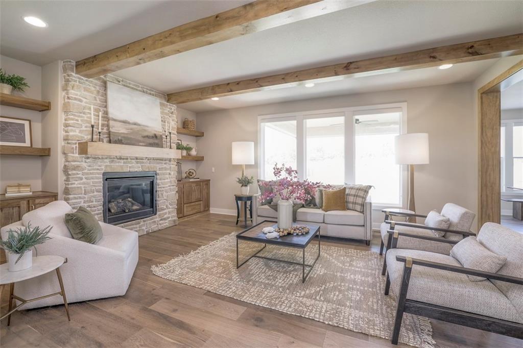 This stunning 2 story, is the Sullivan II by SAB Homes. The main floor is bright and welcoming, featuring ample amounts of cooking, prepping and storage space in the kitchen including a walk in pantry. A main floor bedroom or study privately located behind the kitchen area. This plan features a true dinning room with a bonus breakfast area in the kitchen as well. In the upstairs you'll find a large primary suite, with a large en-suite including features like a free-standing tub, large walk-in shower with two shower heads, dual sinks, toilet room and a large walk in closet. Upstairs you'll find 3 additional bedrooms, one with its own private bathroom, the other two featuring a "Jack and Jill" bathroom. Basement stubbed for bathroom and agree window well with the potential to add an additional bedroom. 14'x12' covered patio off great room and breakfast area. End of October estimated closing date. All in the coveted Heritage Ranch, A Lambie-Rieke Community, with Amenities Galore such as state-of-the-art pool, clubhouse, trails, pickleball, play area, half-court basketball, ponds and so much more coming soon! This community provides a wonderful lifestyle and right next to the 1,238 Acre Heritage Park with Dog Park, Sports Parks, Golf, Lake, Trails and so much more! Contact Onsite Agents for Estimated Completion of homes on site, and design selections. Our welcome center is now open, located at LOT 65. Open 7 days a week! Renderings &/or images may show features that are subject to change. Sq Ft & Taxes are estimated. Home is under construction. LOT 6. Welcome Home to Heritage Ranch - one of the last NEW Home Communities in Johnson County!