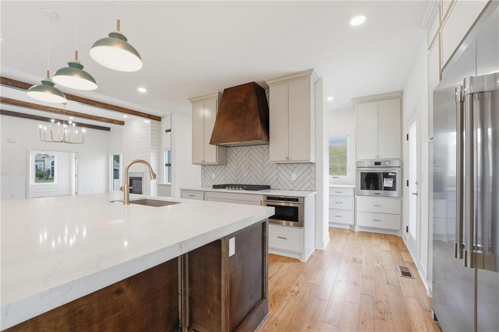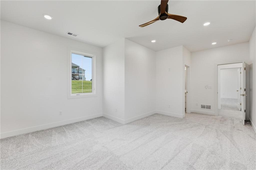 Luxurious Finishes at The National! Designer lighting, Pecan flooring, large format tiles, high-end countertops, stained cabinetry and beams, upgraded flooring, dual-zone heating and cooling, grill patio and covered patio, large lot at the end of a cul-de-sac. The kitchen is equipped with a 36" gas cooktop, a drawer microwave, and as a builder bonus, a full-sized fridge and freezer are included! The scullery provides additional prep space and storage, featuring a full-sized sink and open shelving. The main-level master suite offers a truly spa-like bathroom, complete with an oversized glass shower, a soaking tub, a vanity area, and stunning Taj Mahal Quartz countertops—typically found only in custom homes! The master closet features floor-to-ceiling built-ins and connects to the laundry room, which includes a sink and quartz countertop. The second-story loft adds extra living space with all bedrooms featuring walk-in closets and private access to ensuites—no more sharing! The main level office boasts elegant glass French doors. Enjoy a wet bar complete with a beverage fridge and floating shelves. The expansive lower level includes a suspended garage, all situated on a cul-de-sac lot with neighboring land owned by the HOA. Enjoy easy access to the subdivision pool and play area! Located in the Park Hill School District and part of a golf cart community, this home provides additional perks through social and golf club memberships to The National.