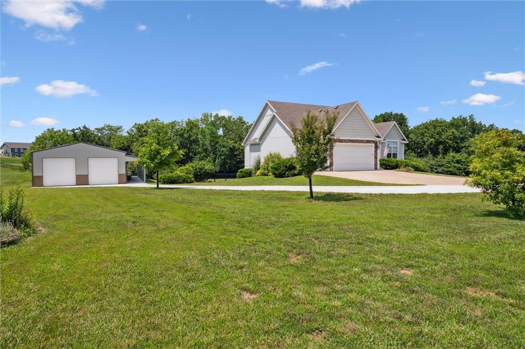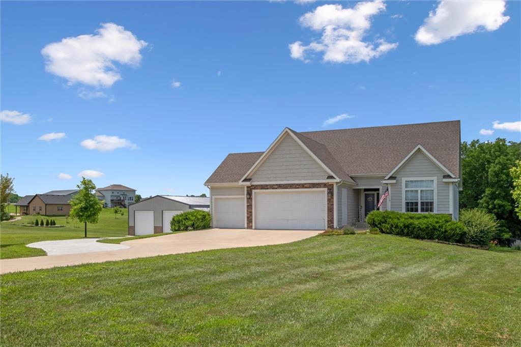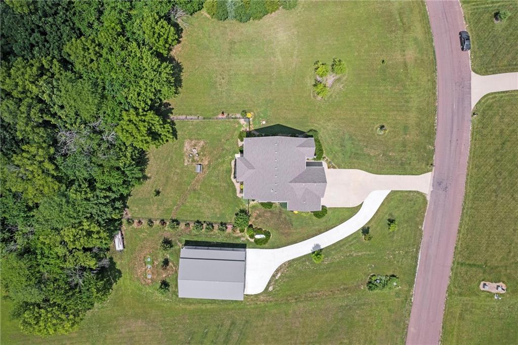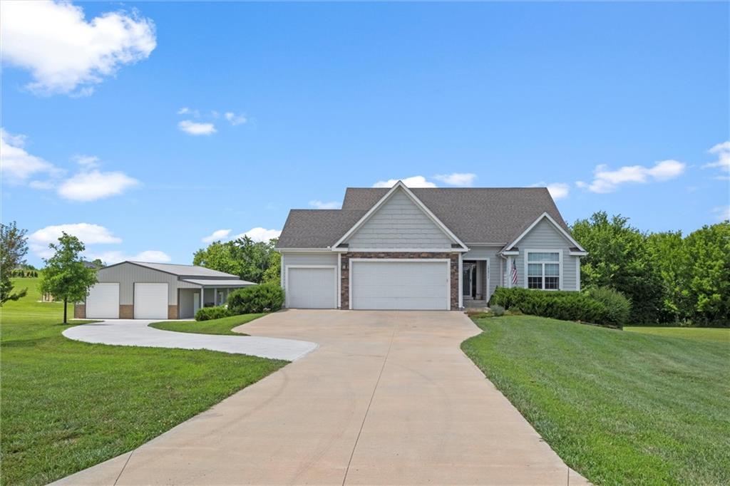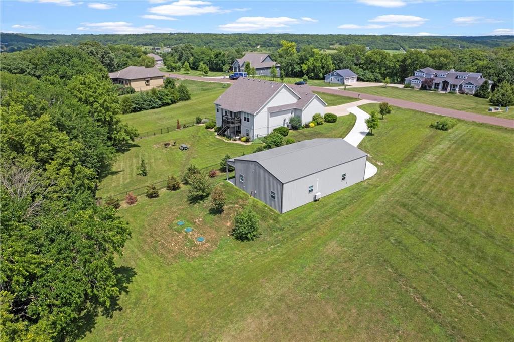Don’t Miss this Hilltop Retreat in the Coveted Rocking C Estates on the edge of Tonganoxie, Kansas for the BEST of LUXURY LIVING in the country! This stunning & perfectly sized 2.5-acre property is nestled in the hills of tongie, surrounded by mature trees where privacy, space & dreams collide! This gorgeous, CLEAN & better than NEW home is tucked away off paved roads just minutes from town, where a picturesque setting delivers a true escape with panoramic views & unmatched serenity where deer, wild turkey & other native wildlife call home! The main property features 4 spacious bedrooms & 3 full baths with a floorplan thoughtfully designed for everyday comfort. You will LOVE the Huge conversation kitchen island & connectivity of the OPEN floor plan! Beautiful HARDWOOD floors, spacious master retreat with direct access to a covered deck, spa like bath with spacious shower & ceiling-mounted rain shower head, massive walk-in closet, whirlpool tub & tons of counter space! The walk-out basement is an entertainer’s dream with stunning engineered hard wood floors — perfect for hosting gatherings, game nights, book club or simply relaxing with family & friends! <><><><><> Just steps from the main home with a separate paved driveway, you will find a fully equipped 30 x 50 shop with an 8 ft covered porch off the beautifully finished IN-LAW SUITE, complete with 2 bedrooms, a full kitchen (including dishwasher), 2nd laundry room + workshop area with (2) 10 ft garage doors — ideal for guests, multigenerational living, apartment, rental income, STR or the greatest home business setup. Whether you're enjoying the peaceful wooded surroundings, working on projects, or entertaining in the spacious basement, this hilltop retreat offers the BEST of comfort, convenience & privacy. This is a RARE find with room to breathe for you, your hobbies & your family — Schedule a showing today to experience gorgeous sunrises & star-filled night skies that city living can’t compete with!!!