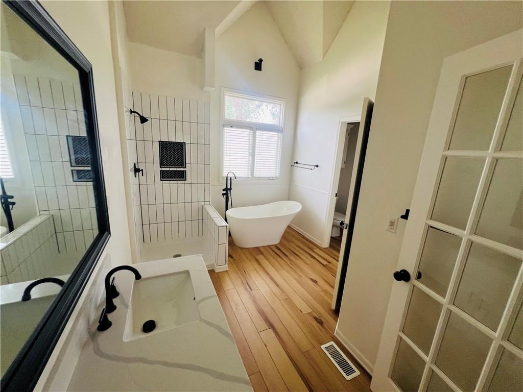 Step into this 4-bedroom, 2.5-bathroom home that blends comfort, style, and functionality. Freshly painted inside and out, this home features refinished wood floors, brand-new carpet, luxury vinyl flooring, and modern updates throughout. The spacious primary suite is a true retreat, complete with a fully renovated bathroom boasting a double granite vanity, a tiled walk-in shower, a relaxing soaker tub, and a large walk-in closet. Upstairs, you’ll find three generously sized bedrooms and a full bathroom—perfect for family or guests. Enjoy cozy evenings by the beautiful fireplace in the living room, or host gatherings in the open kitchen and dining combo, featuring sleek black hardware, a new dishwasher and microwave, and stylish finishes. Just off the kitchen is a convenient laundry room with an adjacent half bath. A flexible front room can easily serve as a sitting area, music room, home office, or formal dining space—tailor it to your lifestyle! The full, unfinished basement offers incredible potential for additional living space, storage, or a workshop. Step outside to a fenced backyard with a deck, ideal for entertaining or relaxing. Additional highlights include a newer HVAC system and great curb appeal with fresh exterior paint. Located in a sought-after neighborhood, this home is move-in ready and waiting for you!