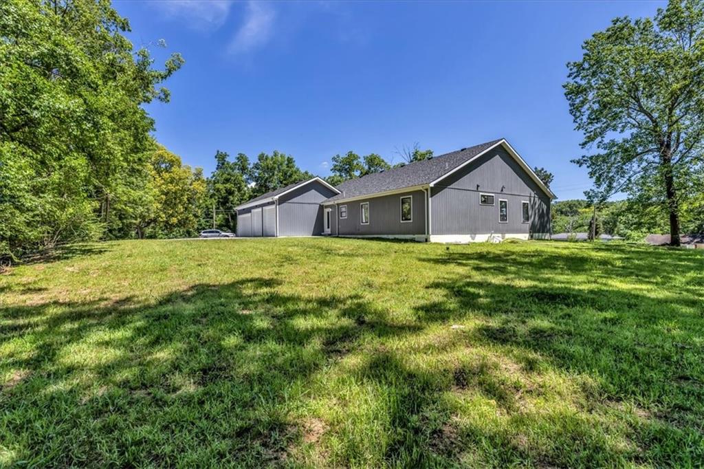 ***REDUCED*** NEW CONSTRUCTION! This corner lot property is amazing.... The space is unmatched, all on one level, open floor plan, 4 car garage, 1 acre of land. There is so much that can be added to customize this property to make it your own. The hard part is done! Low maintenance for years, the mechanics and are all new, roof, windows, siding, insulation, you name it this house has it. Granite counters, Double vanity in the master bath, stand alone tub, huge shower with rain head. Large walk-in closet. Corner lot, Raytown School district. Easy access to so many things you'll need daily, yet tucked away with nice mature trees give privacy. Ample parking with space for more. The over sized garage doors are a plus! This Gem is ALL ON ONE LEVEL! The option to finish the basement is available, the plumbing is set up for this option now or later down the road. There is so much to tell, come check it out and enjoy your Holiday's in this beauty!