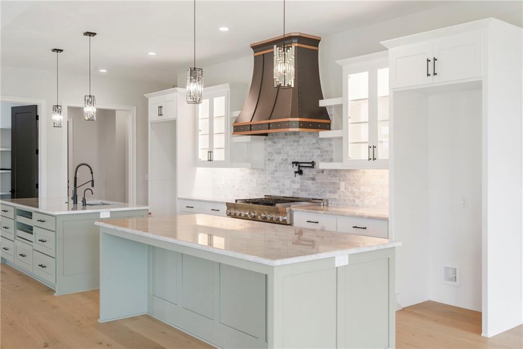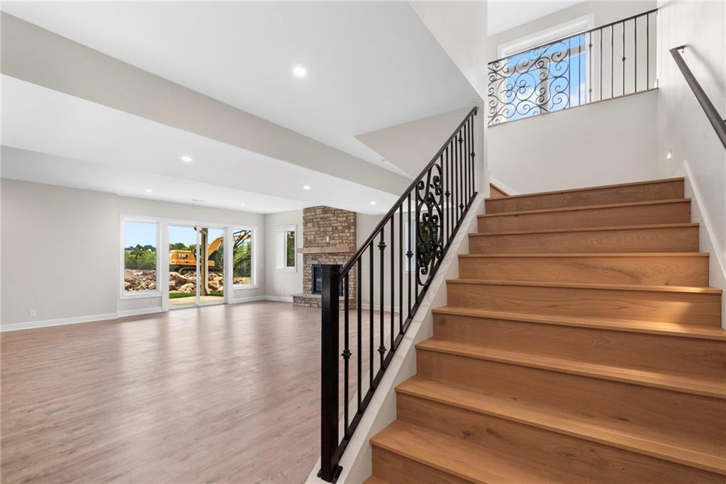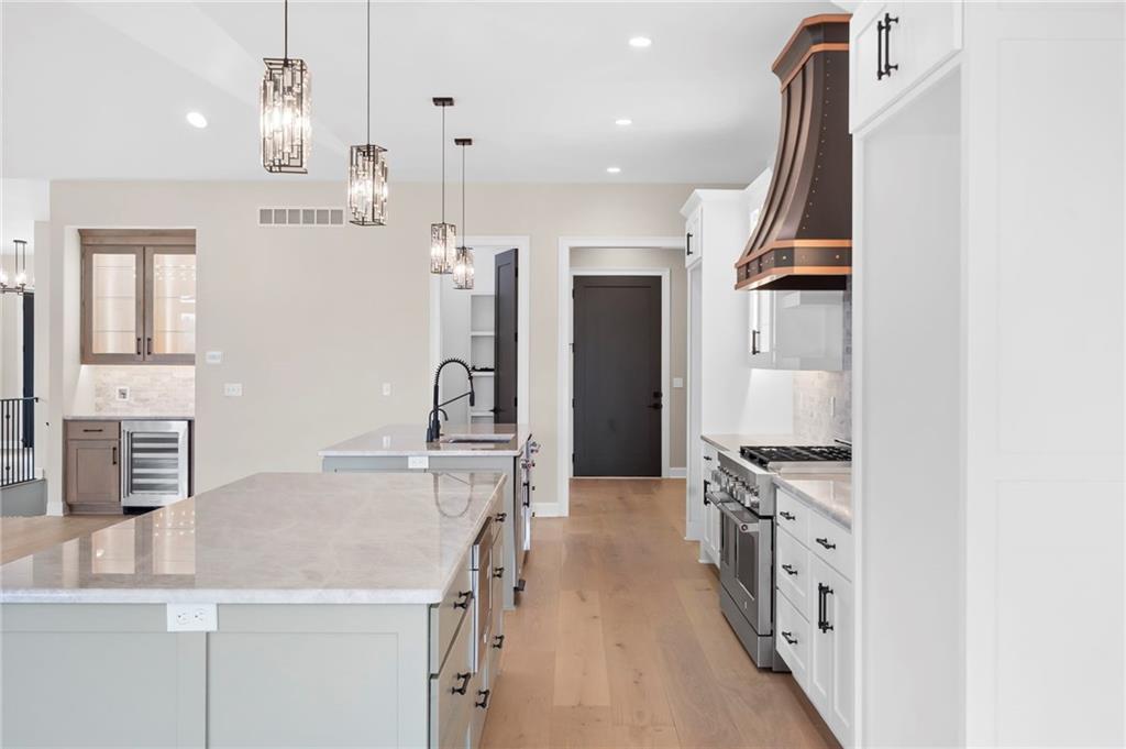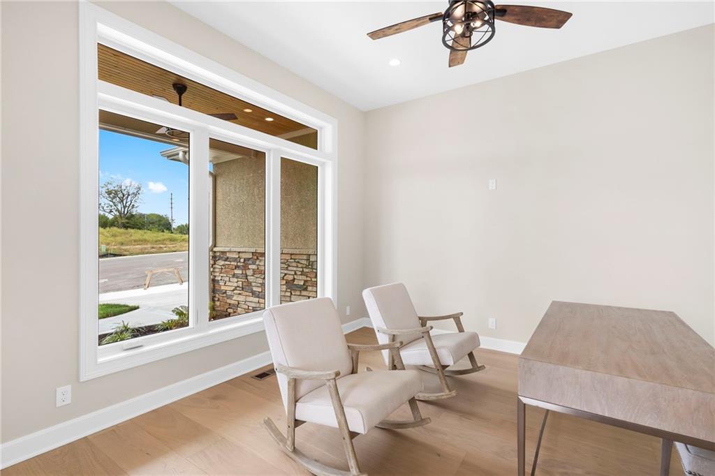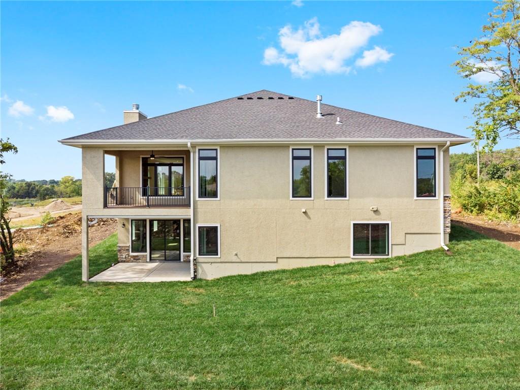 Welcome to this stunning new *move in ready* reverse 1.5-story home in the highly sought after Battle Creek community of Olathe. With just under 5,000 square feet of beautifully designed living space, this home offers the perfect blend of luxury, functionality, and modern comfort. The heart of the main level is the expansive kitchen and great room for both everyday living and effortless entertaining. Soaring ceilings and abundant natural light enhance the open-concept design, while the kitchen boasts a large center island, walk-in pantry, and seamless flow into the dining area and covered lanai. It's the ideal space for gathering with family or hosting guests in style. The main-level primary suite features a spa-inspired bath with a smart shower and a spacious walk-in closet. A dedicated home office is thoughtfully positioned away from the main living areas, offering privacy and productivity. Downstairs, the walkout lower level is designed for relaxation and entertainment, complete with a large family room, custom wet bar, two additional bedrooms, and two full-size walk-in showers. High-end finishes, generous storage, and a smart, flexible layout elevate the home at every turn. Located close to top rated schools, parks, shopping, and highway access, this home is a rare opportunity in one of Johnson County's most desirable communities.