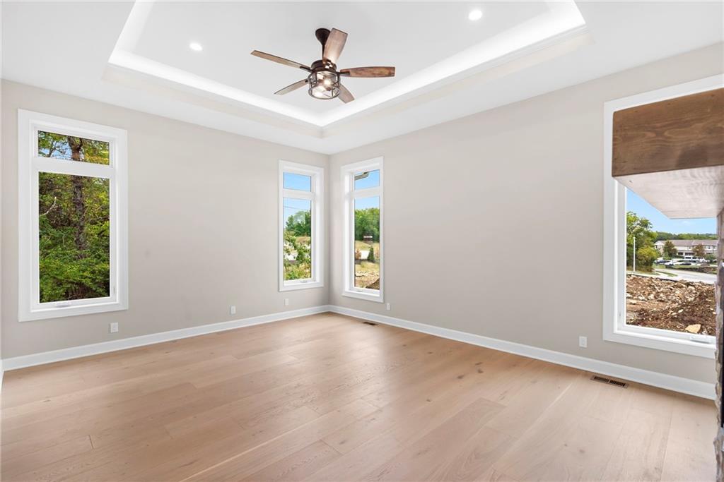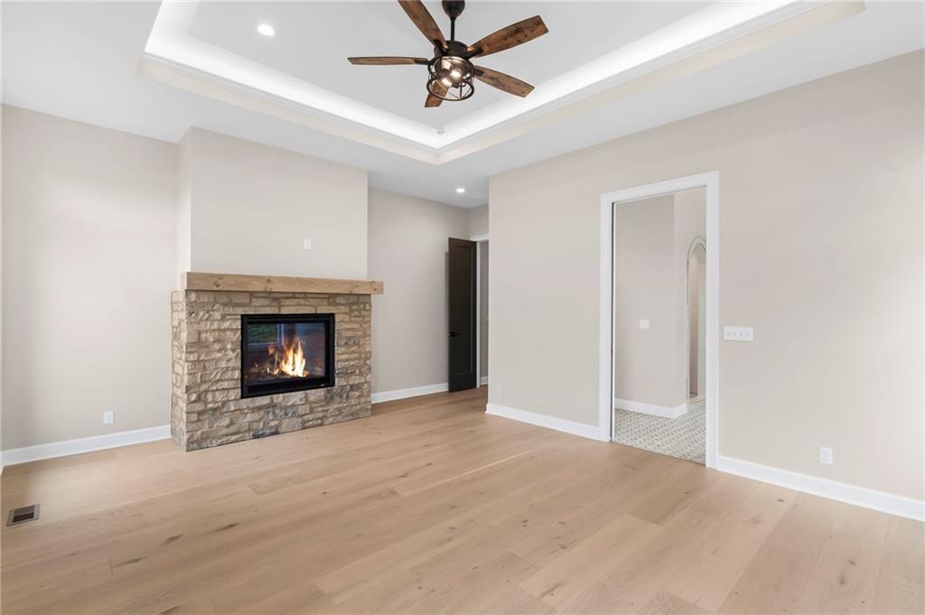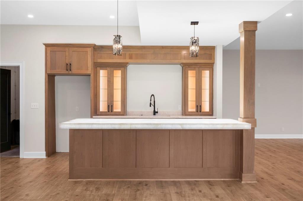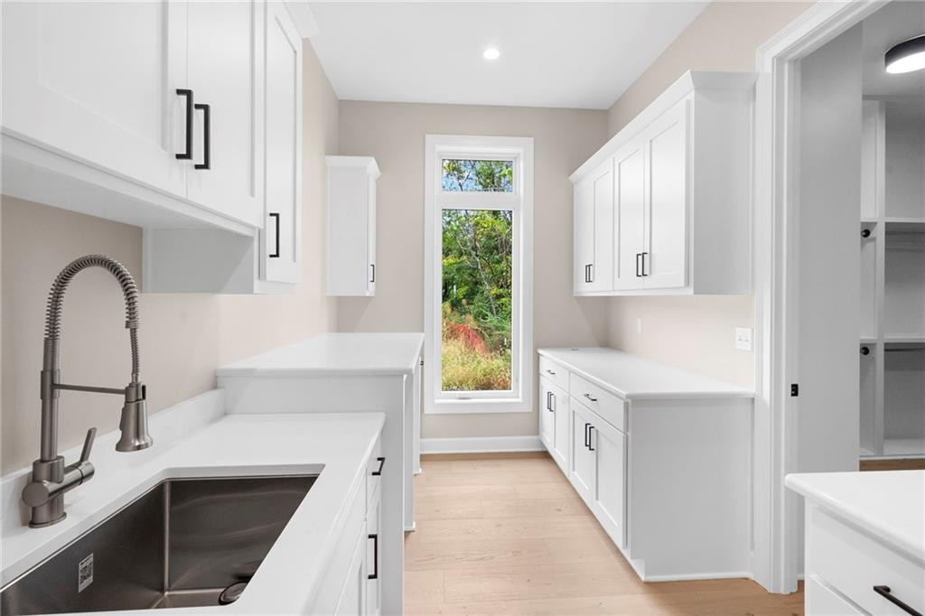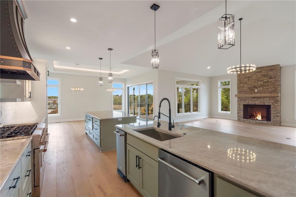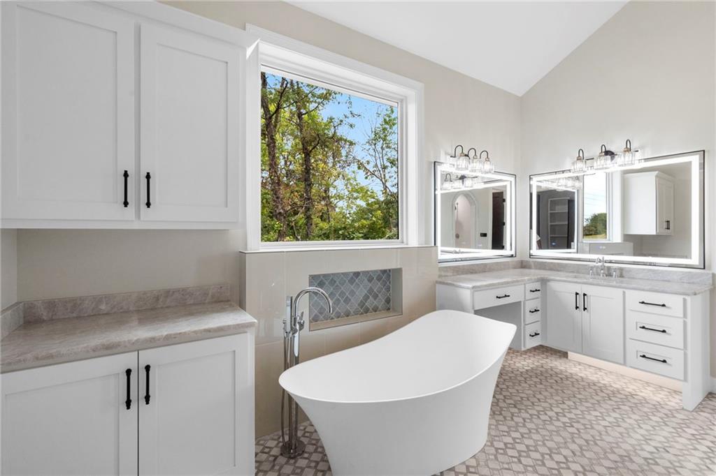 Welcome to this stunning new *move in ready* reverse 1.5-story home in the highly sought after Battle Creek community of Olathe. With just under 5,000 square feet of beautifully designed living space, this home offers the perfect blend of luxury, functionality, and modern comfort. The heart of the main level is the expansive kitchen and great room for both everyday living and effortless entertaining. Soaring ceilings and abundant natural light enhance the open-concept design, while the kitchen boasts a large center island, walk-in pantry, and seamless flow into the dining area and covered lanai. It's the ideal space for gathering with family or hosting guests in style. The main-level primary suite features a spa-inspired bath with a smart shower and a spacious walk-in closet. A dedicated home office is thoughtfully positioned away from the main living areas, offering privacy and productivity. Downstairs, the walkout lower level is designed for relaxation and entertainment, complete with a large family room, custom wet bar, two additional bedrooms, and two full-size walk-in showers. High-end finishes, generous storage, and a smart, flexible layout elevate the home at every turn. Located close to top rated schools, parks, shopping, and highway access, this home is a rare opportunity in one of Johnson County's most desirable communities.