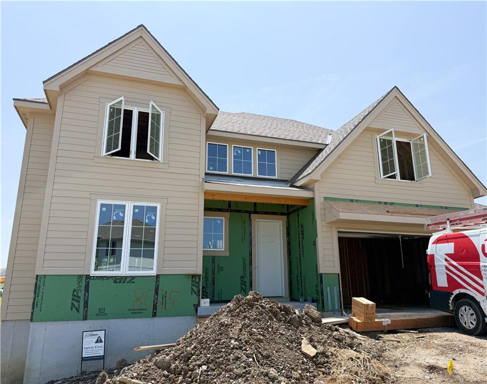 The Cypress by J.S. Robinson Fine Homes sits on Lot 30, a beautiful walkout lot backing to treed greenspace in Phase I of Bristol Highlands in Shawnee. A covered deck offers a peaceful view and a natural extension of the impressive living space—perfect for quiet mornings or casual evenings. This 1.5 story home is thoughtfully designed with vaulted ceilings, 8' doors, a flex room for anything you want, dream kitchen with cabinets to ceiling and walk-in pantry, adding both space and style. The main-floor primary suite includes a connected laundry room for everyday ease. Upstairs features a loft, private en suite bedroom/bathroom, and two more bedrooms with a Jack-and-Jill bath—plus generous closets throughout. The walkout basement includes a bath rough-in, ready for future finishing (and equity!). This homesite is fully sodded with irrigation included. Completion is set for December 2025 with time right now to personalize a few design touches before it’s done and ready to move in for the holidays this year! Life at 8025 Payne St. in Shawnee includes stunning sunsets, rolling hills, and easy access to Shawnee Mission Park’s trails and lake, plus all the eats and events just minutes away at Lenexa City Center. The community’s soon-to-arrive resort-style pool, sport courts, and clubhouse are sparking excitement—and with top-rated De Soto schools nearby (Mill Valley!), it’s no wonder these early homes are in high demand. If you’ve been thinking about it, now’s the time to make your move and put your personal touch on a brand new home that's truly yours.
