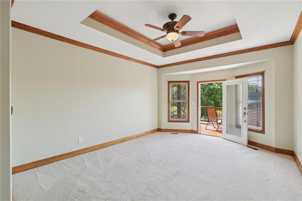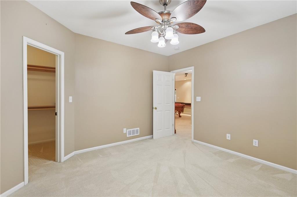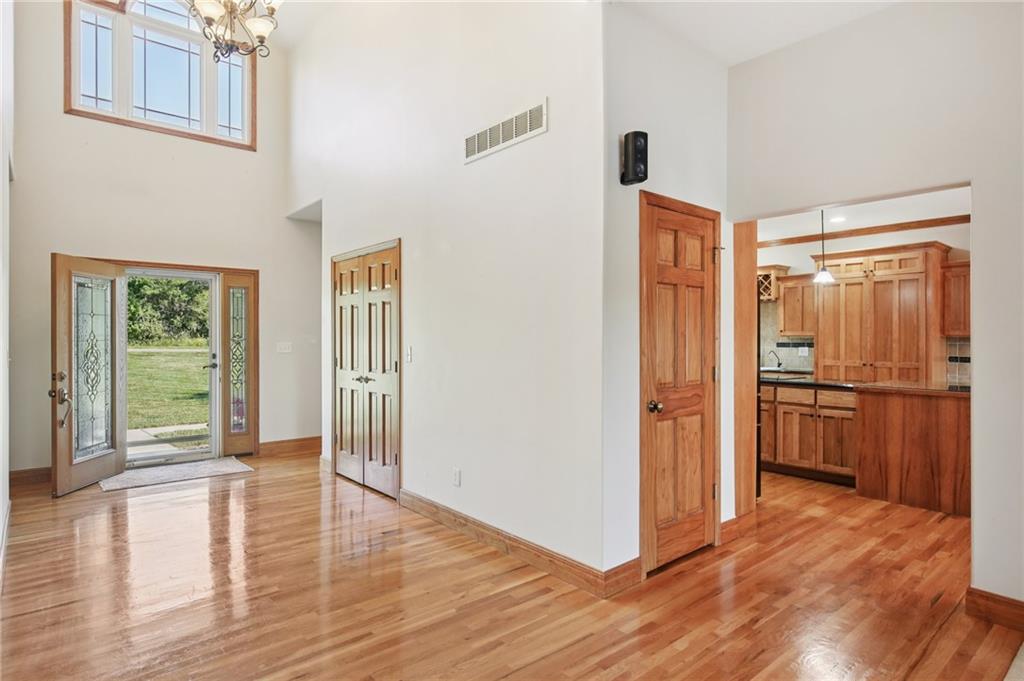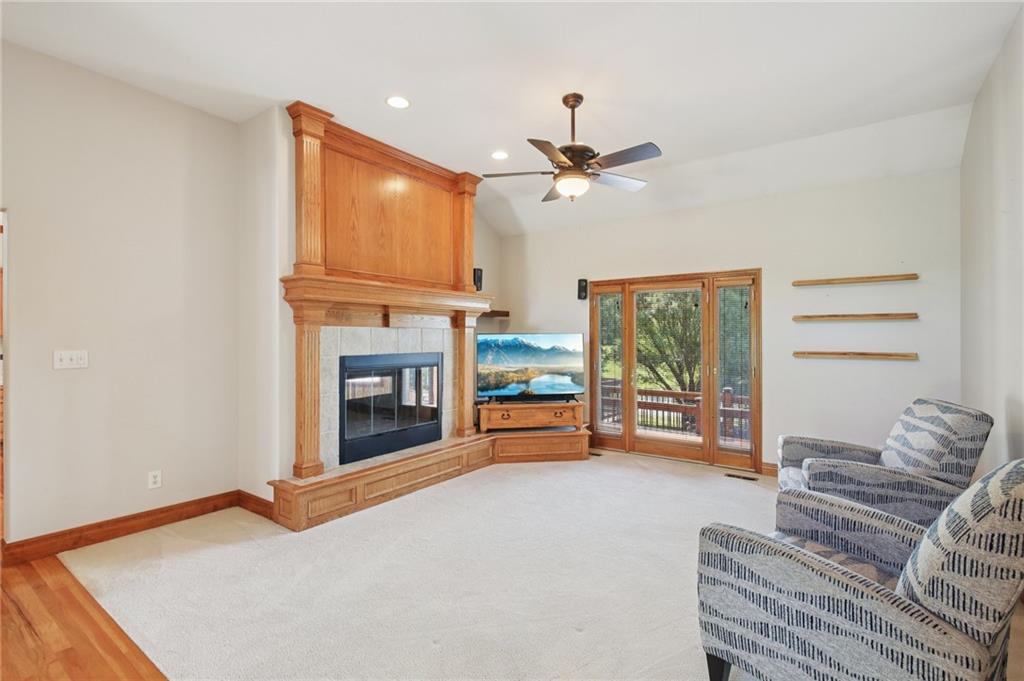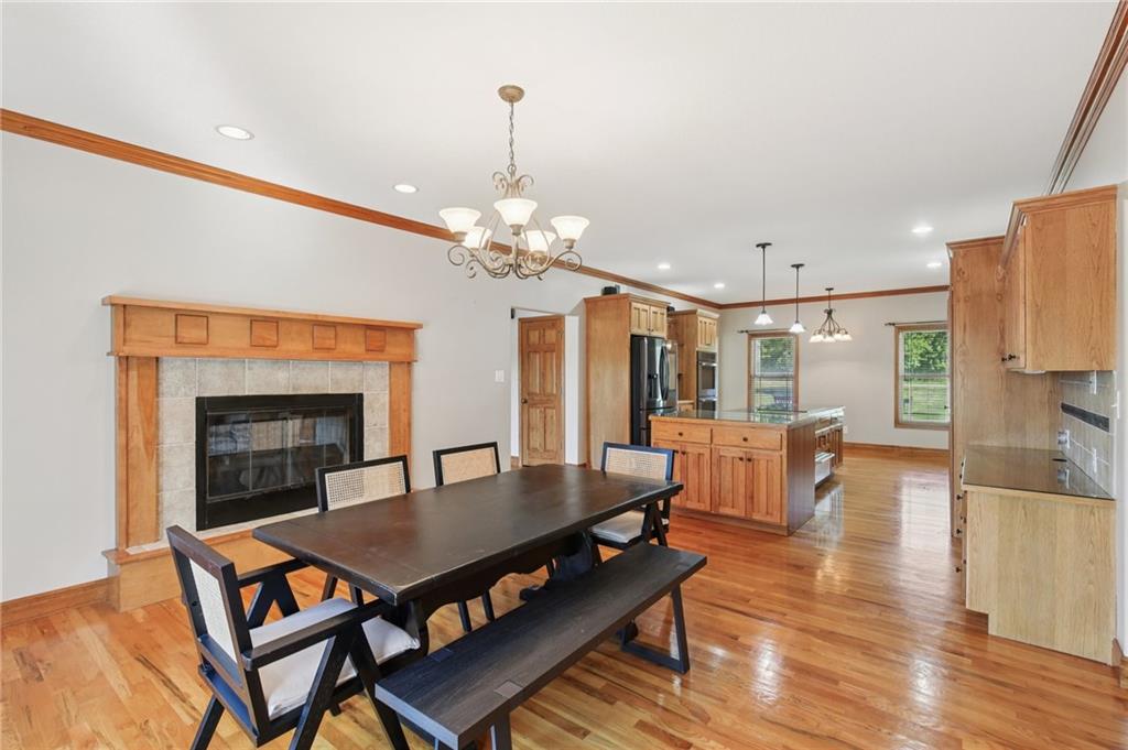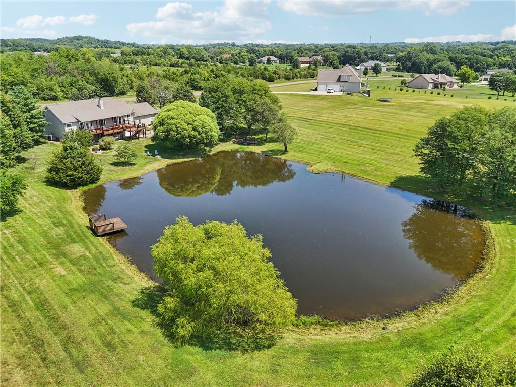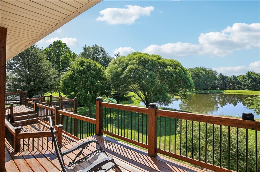 This stunning home is designed for both comfort and entertainment, set on a generous almost 3 acre lot that offers plenty of space for outdoor activities. As you enter the home, you're greeted by a spacious foyer that leads into the inviting living room area where you'll find a double sided fireplace and large windows that bathe the space in natural light and provide beautiful views of the backyard space. In the kitchen you will find ample counter space, an oversized island, and a walk in pantry. Adjacent to the kitchen is a spacious dining area which is where you will find a doorway to the large deck making it ideal for everyday meals and entertaining. The large deck extends the living space outdoors, offering a perfect spot for morning coffee, summer barbecues or peaceful evenings overlooking the pond. Each of the five bedrooms is generously sized and equipped with walk-in closets, providing plenty of storage and personal space. The primary suite is a true retreat with double doors leading onto the deck, complete with an en-suite bath featuring a jetted tub, separate shower, and dual vanities. The walkout basement is a true highlight with a large family room equipped with a pool table and a shuffleboard to supply extra entertainment for any occasion. A kitchenette adds convenience for snacks and refreshments. This area includes a patio with a hot tub where you can unwind after a long day. For those who need extra space for hobbies or storage, the home features 3 garage spaces, one with an EV charger and a shop with extra space for vehicles, tools, or even a workshop. The outdoor space is equally impressive, with fruit trees, and a large stocked pond, ideal for fishing or simply enjoying nature on the dock. The expansive yard offers plenty of room for gardening, outdoor gatherings, or recreational activities.