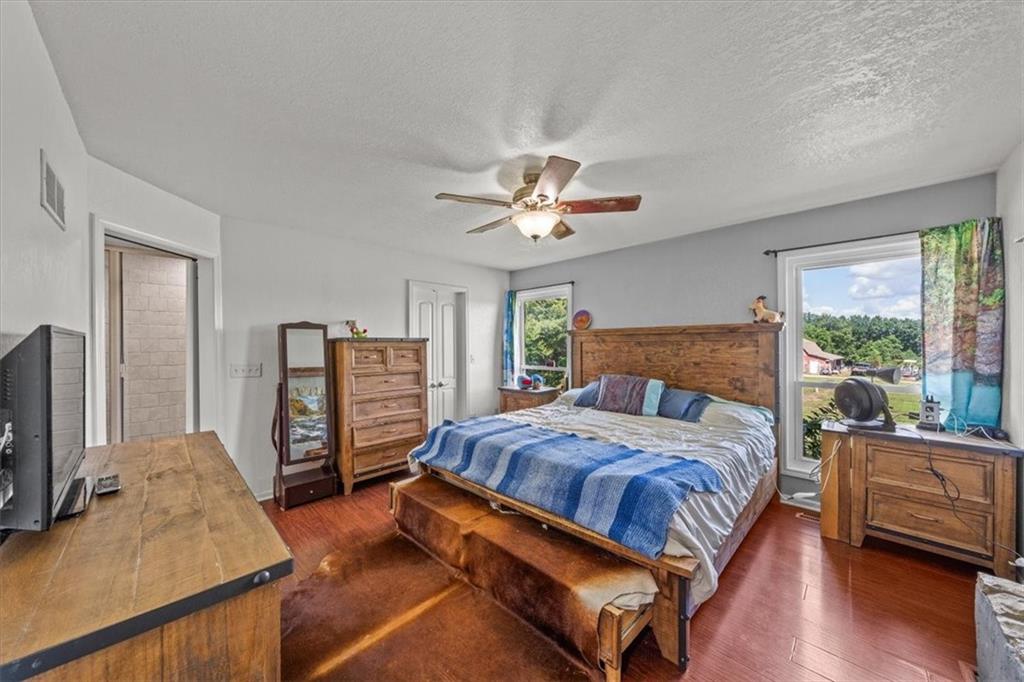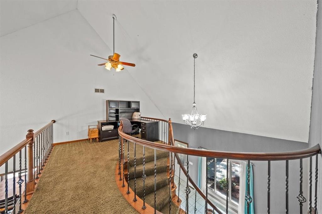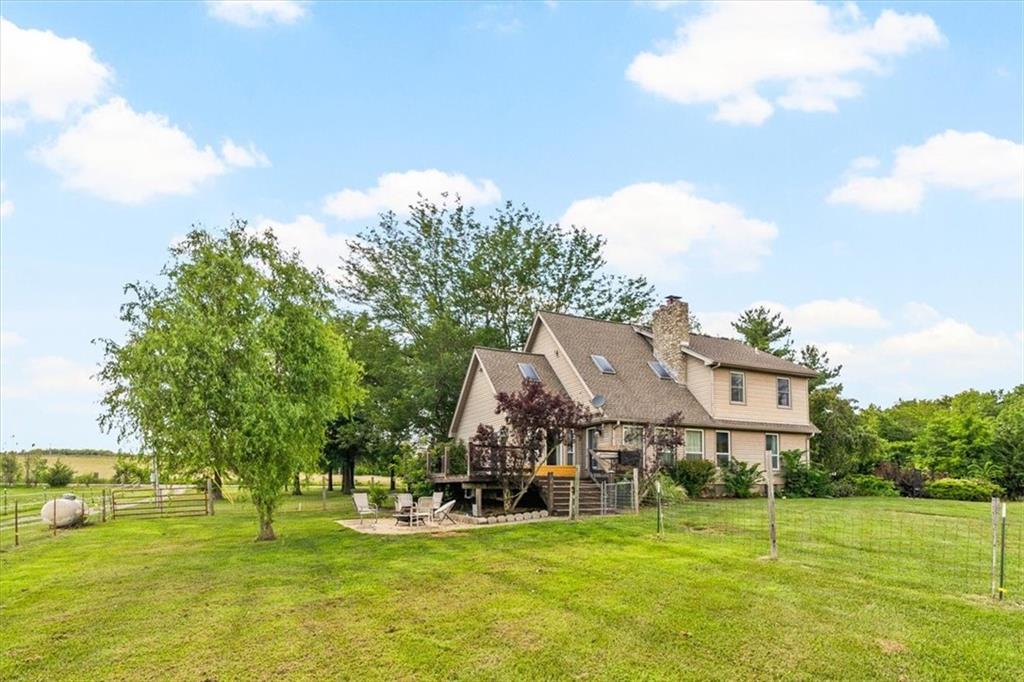 It doesn't get much better than this...a picturesque 13-acre property with a pond, barn, plenty of pasture, and approximately 4.5 wooded acres all right outside your beautiful home! A circular drive leads you to your front door. Enter into the spacious foyer, which leads into the inviting living area with soaring vaulted ceilings and a lovely see-through brick fireplace (other side is primary bedroom). The kitchen features cherry-stained maple cabinets, granite countertops, stainless appliances (including a double-oven and 5-burner gas cooktop!), and thoughtful features like multiple appliance caddies, built-in countertop cutting board, pantry, and built-in spice rack. The dining area overlooks the wraparound deck and allows you to enjoy the view of your property. The main floor primary bedroom includes the fireplace and private bath with a separate jetted tub and shower, dual vanities, and ample closet space. A stunning curved staircase leads upstairs where you'll find a loft area, the 3 additional bedrooms and another full bathroom. Check out the large finished rec space in the basement with built-ins, ideal for entertaining! The barn features a concrete floor, electricity, and water through an exterior faucet. There is also water to the garden plots between the house and barn. Practice Range set up on the backside of the barn. Lagoon was installed in 2021. A portion of the property (field to the south of the house) is leased to neighbors for their horses. The electric fence also belongs to the neighbor. The neighbor would like to continue leasing the land for their horses if the buyer is amicable.