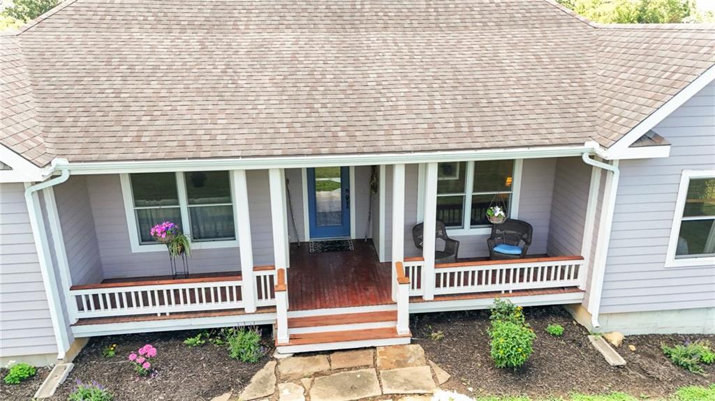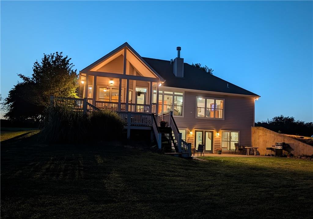 BACK ON MARKET NO FAULT TO SELLERS. Discover this custom-built, 5-bedroom, 3-bath walkout ranch on 18.29 acres just north of Perry. Crafted in 2003 by Houston Construction, the home showcases hickory cabinets, hardwood floors, large windows, a cozy fireplace, and a full finished walkout basement opening to serene prairie and some timber. This lovely home is perfect for hobby farming or enjoying nature or just having your own peaceful oasis to retreat to. Ideal for buyers seeking space, privacy, and quality craftsmanship off the beaten path. Large windows located off the back of the home allow natural sunlight to flood the rooms. Primary bedroom with ensuite and walk-in closet, laundry, a bedroom and office are all located on the main level. The full basement allows a perfect place for movie nights or game nights with two bedrooms and a nice sized storage area. Paved roads except for approximately 1/2 mile of gravel. There are 4 different outdoor areas to enjoy the peaceful view, enjoy a drink or curl up with a good book; the covered front porch, the smaller covered porch off the back, the deck and the patio on ground level. Convenient access to Lawrence or Topeka. Plus only minutes to Hillcreek Market in Lecompton, Perry Farm to Fork and Perry Lake. If you desire a lovely, quiet place to live surrounded by nature, schedule your showing today!