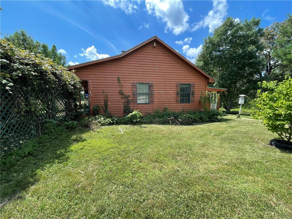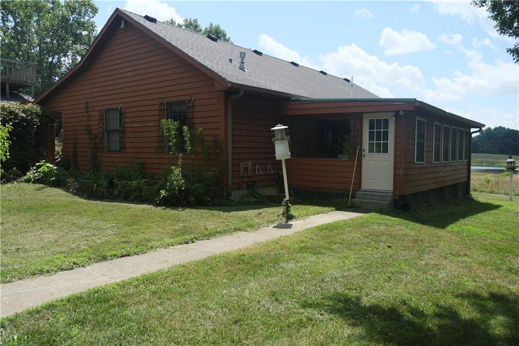 Discover a unique retreat with this ranch-style home situated on 49.14 acres m/l of picturesque land. Ideal for those seeking space, tranquility, and versatility, this property offers a blend of comfort and rural charm, with some opportunity for personalization and updates. Property Highlights: Spacious Ranch Home: This single-story home features an open-concept layout with 3 bedrooms and 2.5 bathrooms. Large windows fill the interior with natural light, showcasing hardwood floors, an updated kitchen with stainless steel appliances, granite counters, and a cozy wood burning stove in the living room. Expansive 13.6 Acres: Enjoy the freedom of 13.6 acres of rolling land, perfect for home steading, gardening, or recreational activities. A Large Pond, that the sellers said is well-stocked adds beauty and functionality, offering opportunities for fishing, kayaking, or relaxing by the water’s edge or grilling out with friends or family on the dock! Multiple Outbuildings and additional storage sheds, providing ample space for equipment, hobbies, home steading or a home-based business. A covered porch and Sun Room offer a great setting for for taking coffee or breakfast outside or enjoying peaceful sunsets. Mature trees and landscaped grounds enhance the property’s natural beauty. Additional Features: Attached two-car garage and an updated HVAC system With some TLC and a personalized vision, this property has immense oppurtunity for to carve out an absolute paradise in rural and country living. Book a showing today! Selling AS IS, In its Present Condition. All information in this MLS listing is deemed reliable but not guaranteed. Buyers and Buyers agent to confirm and verify all details. House is available with 13.6 m/l acres as well. See MLS# 2563605