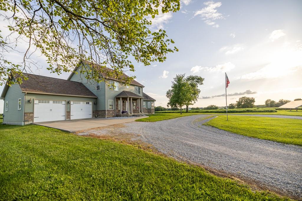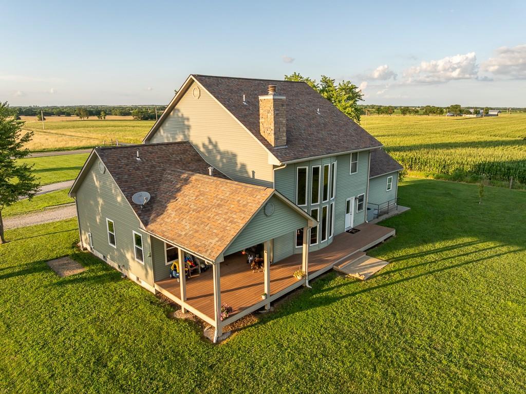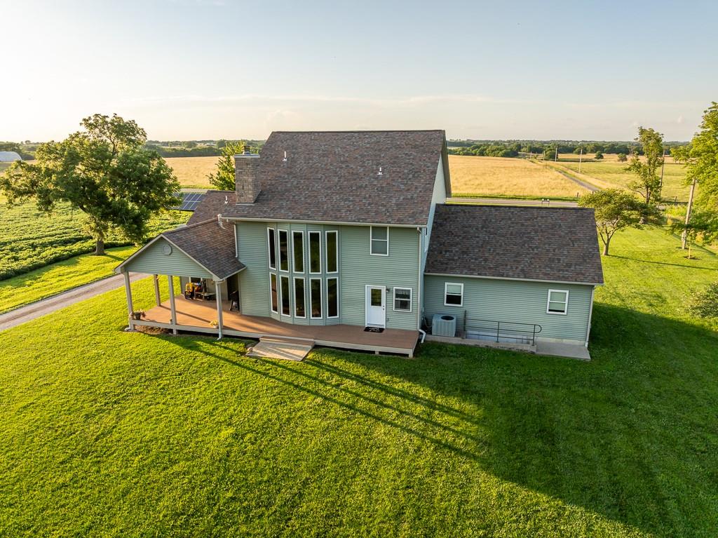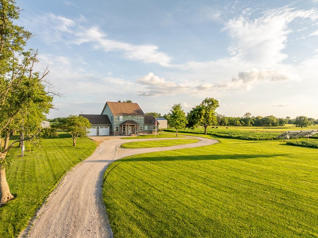 Nestled on 5 scenic acres east of Passaic on blacktop State Route D, this impressive 4-bedroom, 3-bath home offers the perfect blend of comfort, style, and functionality. Boasting 2,677 square feet across two stories, the home features high ceilings, hardwood floors, and detailed wood trim throughout, creating a spacious, light-filled layout. The main floor offers a large master suite and an open-concept kitchen complete with granite countertops, custom cabinetry, and a walk-in pantry. The upper level includes a loft-style common area and three generously sized bedrooms, perfect for family or guests. A walk-up unfinished basement offers flexibility for future expansion or storage, and the two-car garage adds practical convenience. Outside, enjoy the manicured lawn and large partially-covered deck, perfect for relaxing or hosting. A solar panel system adds energy efficiency and long-term value. For those with livestock or hobby farm dreams, the property is set up with two barns, a hay shed, and a welded pipe working system. The soil is very fertile, and outside the lawn, the ground is currently farmed. All of this is located in a quiet country setting just 50 minutes from the KC metro, and is within the Ballard School District. This well-maintained property checks all the boxes for rural living with modern convenience—don’t miss your chance to make it yours.