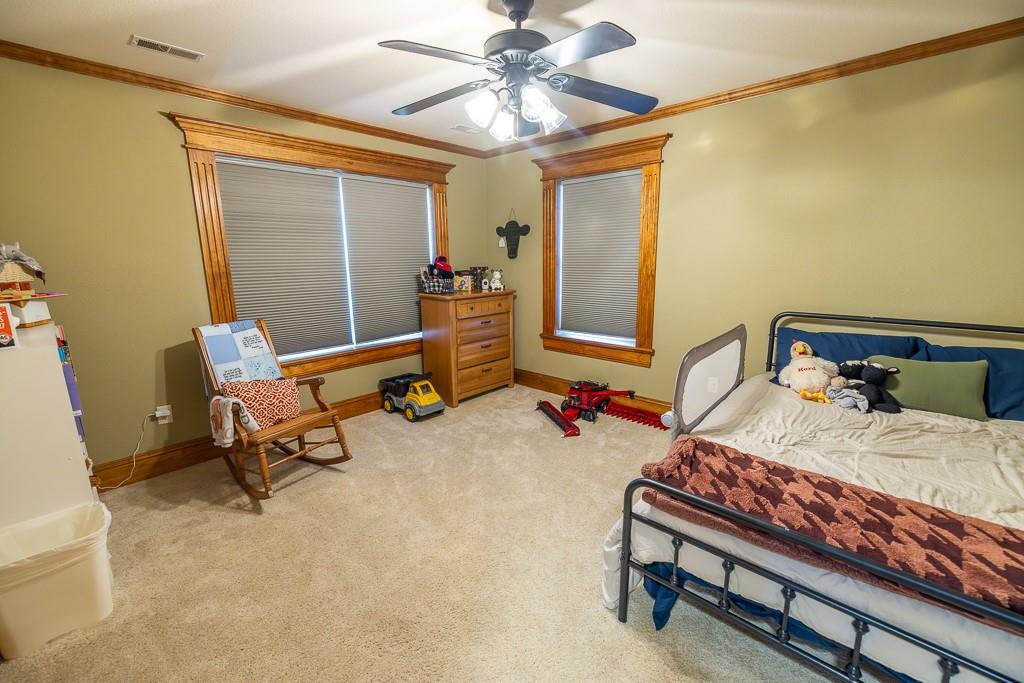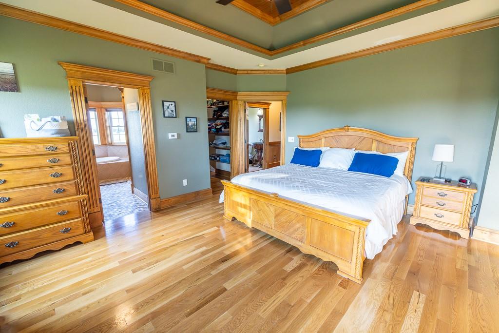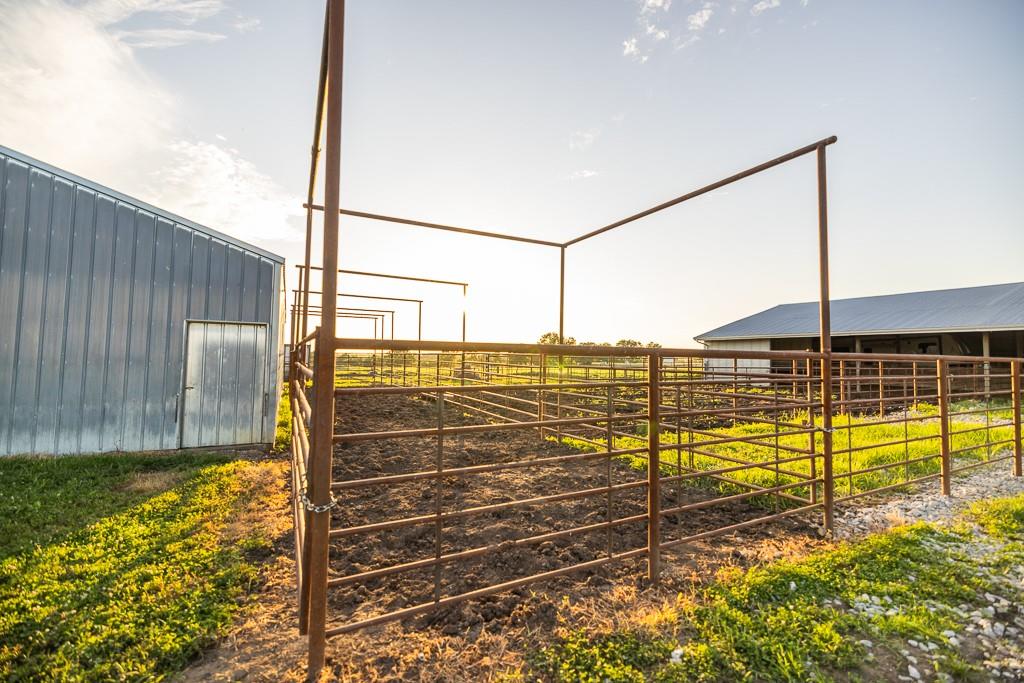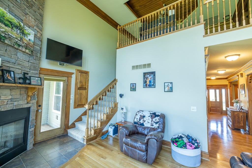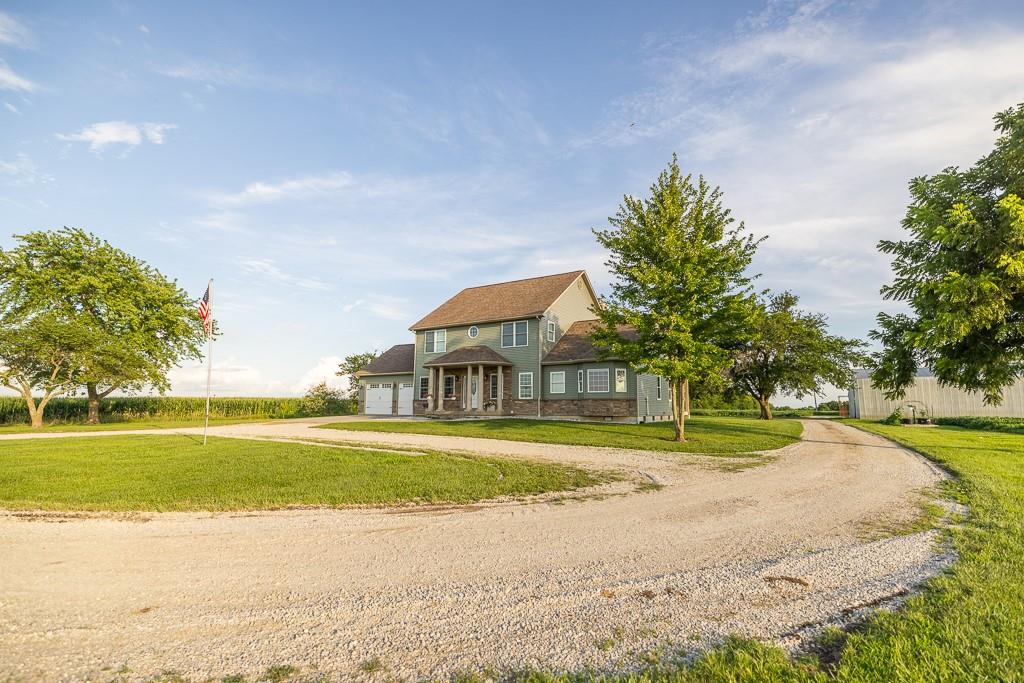 Nestled on 5 scenic acres east of Passaic on blacktop State Route D, this impressive 4-bedroom, 3-bath home offers the perfect blend of comfort, style, and functionality. Boasting 2,677 square feet across two stories, the home features high ceilings, hardwood floors, and detailed wood trim throughout, creating a spacious, light-filled layout. The main floor offers a large master suite and an open-concept kitchen complete with granite countertops, custom cabinetry, and a walk-in pantry. The upper level includes a loft-style common area and three generously sized bedrooms, perfect for family or guests. A walk-up unfinished basement offers flexibility for future expansion or storage, and the two-car garage adds practical convenience. Outside, enjoy the manicured lawn and large partially-covered deck, perfect for relaxing or hosting. A solar panel system adds energy efficiency and long-term value. For those with livestock or hobby farm dreams, the property is set up with two barns, a hay shed, and a welded pipe working system. The soil is very fertile, and outside the lawn, the ground is currently farmed. All of this is located in a quiet country setting just 50 minutes from the KC metro, and is within the Ballard School District. This well-maintained property checks all the boxes for rural living with modern convenience—don’t miss your chance to make it yours.