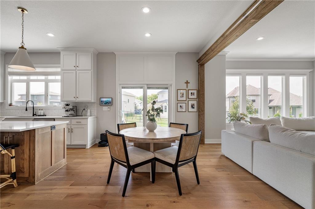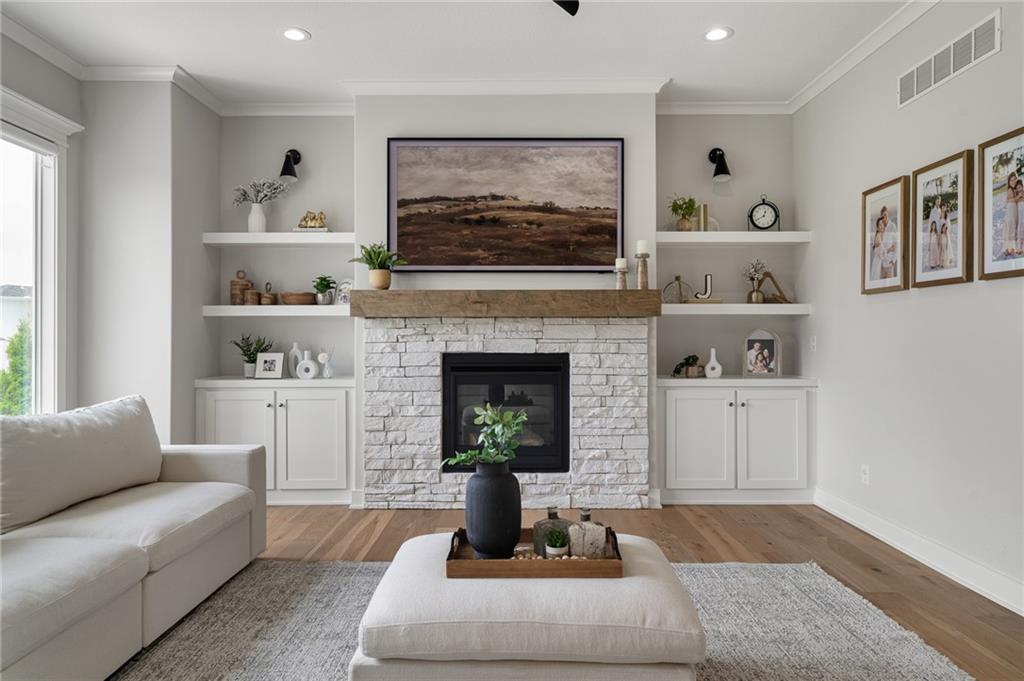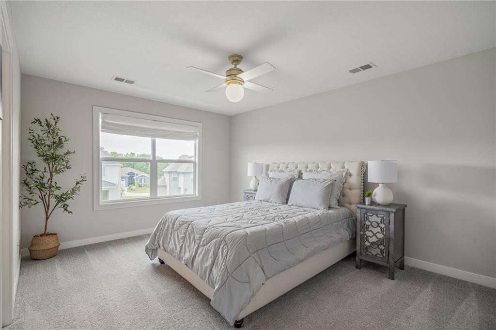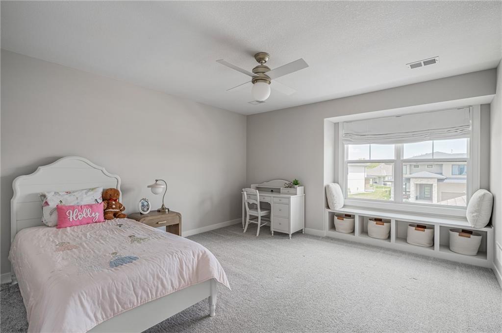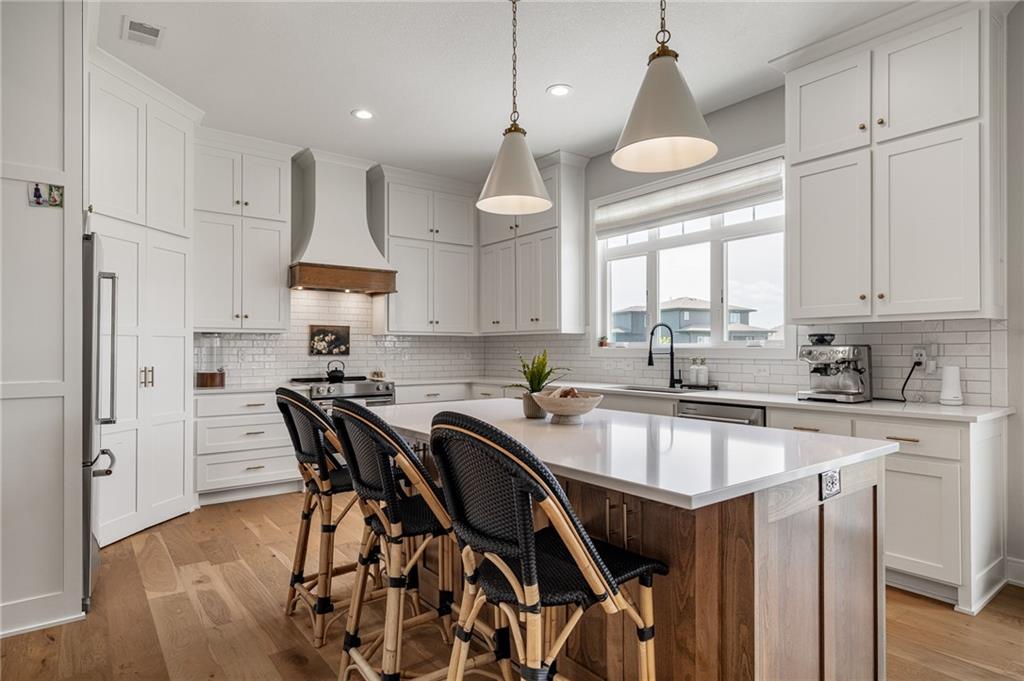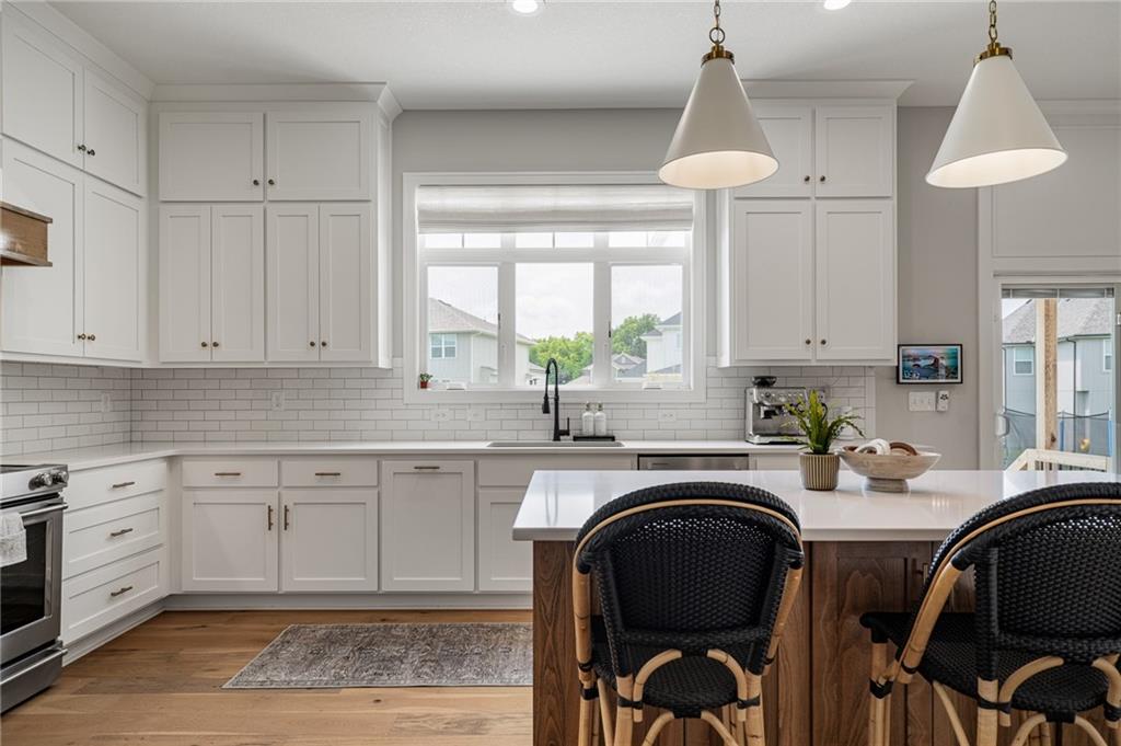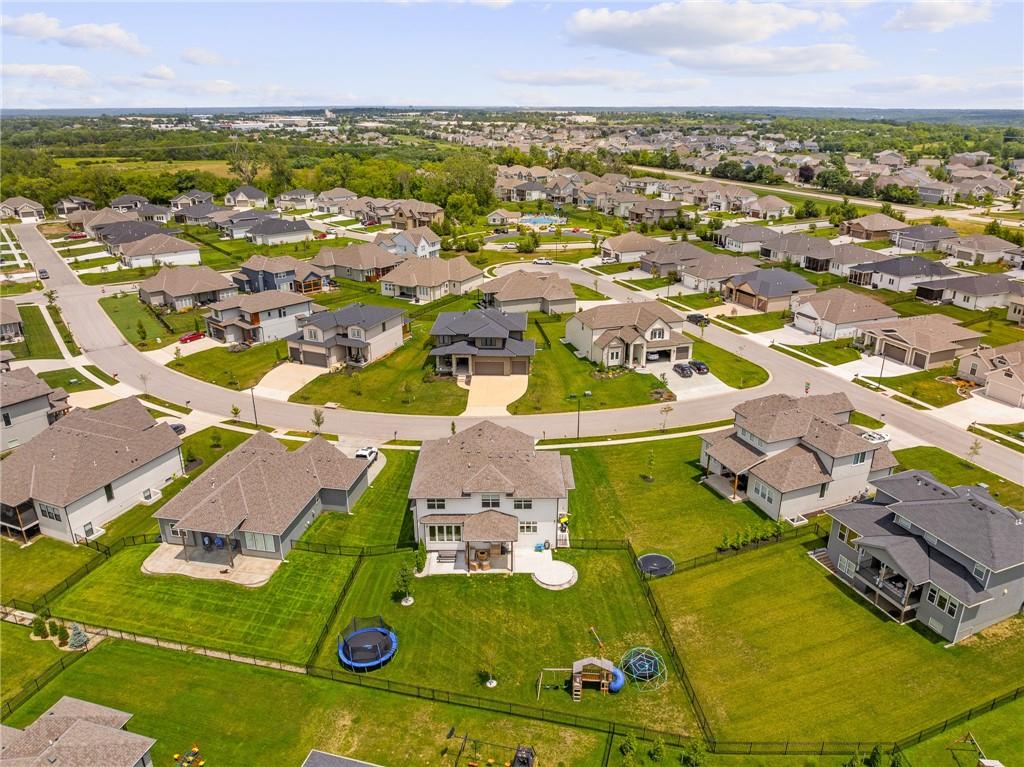Oh my....Makenna!! You know and love this award-winning plan but just wait til you see this home. It's warm and welcoming and from the moment you walk in you'll just know because...it feels like home. It's light, bright and airy with beautiful on-trend selections & filled with upgrades throughout. Completed in 2023 this home looks like it could be in a magazine and includes the selections you want without the wait. The main-level office features a double desk upgrade and new carpet. The large Great Room is the perfect gathering place and features a stone fireplace cabinets flanking each side. The Kitchen is a dream with tons of cabinets and countertop space and gold touches. The Makenna has one of the best Primary suites with a massive bedroom area, bathroom with built in tub, shower with 2 shower heads and bench and a generous walk-in closet. The 3 secondary bedrooms are great sized with a Jack and Jill bath and one with private en-suite. The lower level is a surprise and delight with a finished Rec Room perfect for a play room or hanging out and watching the game! Situated on a coveted block in Prairie View at Creekside Woods you'll find the perfect play space (and neighboring playmates) with a fantastic fenced backyard including an expanded patio area for those backyard BBQs, entertaining and just hanging out. Prairie View at Creekside Woods has a neighborhood pool. HOA includes pool, trash and weekly recycling. Feeds into award-winning Olathe Schools: Canyon Creek Elementary, Prairie Trail Middle School and Olathe Northwest High School. Easy highway access just 2 minutes to K7 get you anywhere fast!