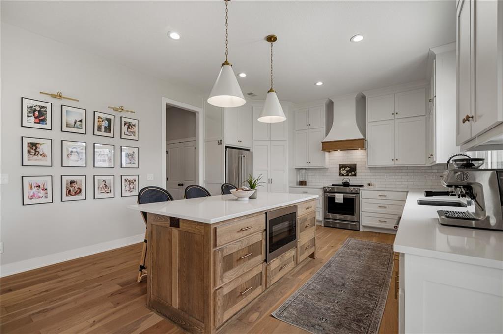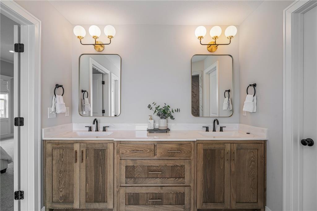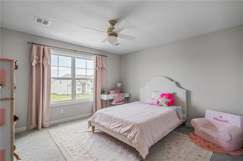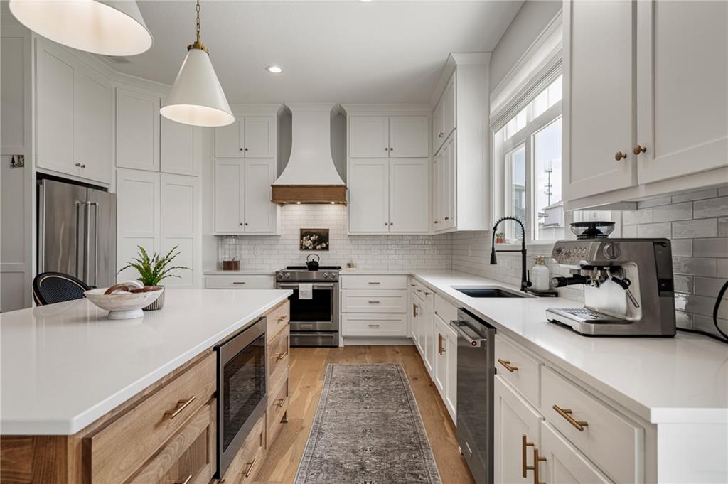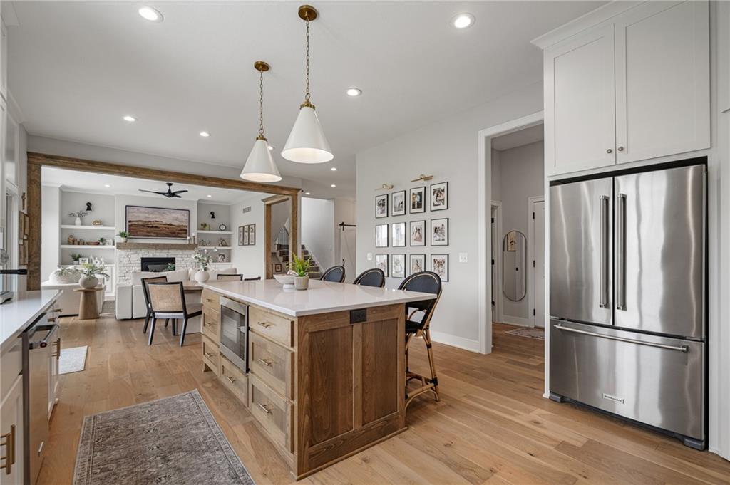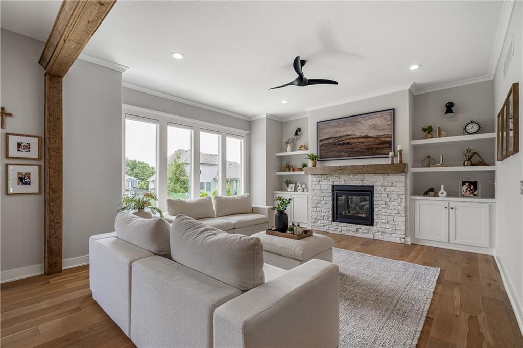 Oh my....Makenna!! You know and love this award-winning plan but just wait til you see this home. It's warm and welcoming and from the moment you walk in you'll just know because...it feels like home. It's light, bright and airy with beautiful on-trend selections & filled with upgrades throughout. Completed in 2023 this home looks like it could be in a magazine and includes the selections you want without the wait. The main-level office features a double desk upgrade and new carpet. The large Great Room is the perfect gathering place and features a stone fireplace cabinets flanking each side. The Kitchen is a dream with tons of cabinets and countertop space and gold touches. The Makenna has one of the best Primary suites with a massive bedroom area, bathroom with built in tub, shower with 2 shower heads and bench and a generous walk-in closet. The 3 secondary bedrooms are great sized with a Jack and Jill bath and one with private en-suite. The lower level is a surprise and delight with a finished Rec Room perfect for a play room or hanging out and watching the game! Situated on a coveted block in Prairie View at Creekside Woods you'll find the perfect play space (and neighboring playmates) with a fantastic fenced backyard including an expanded patio area for those backyard BBQs, entertaining and just hanging out. Prairie View at Creekside Woods has a neighborhood pool. HOA includes pool, trash and weekly recycling. Feeds into award-winning Olathe Schools: Canyon Creek Elementary, Prairie Trail Middle School and Olathe Northwest High School. Easy highway access just 2 minutes to K7 get you anywhere fast!