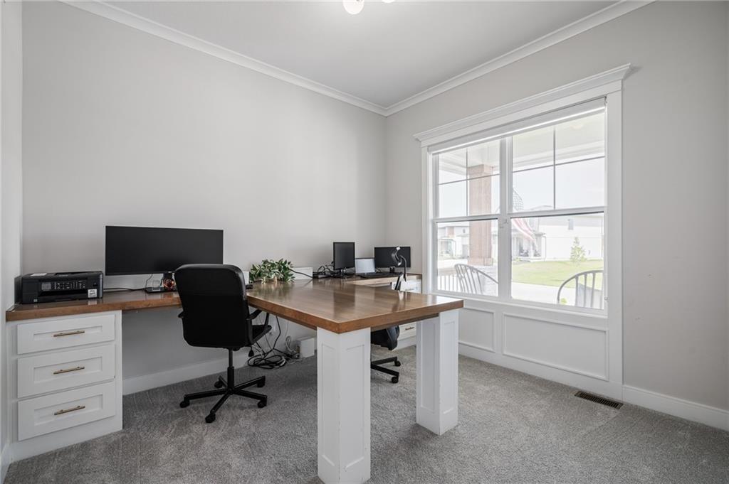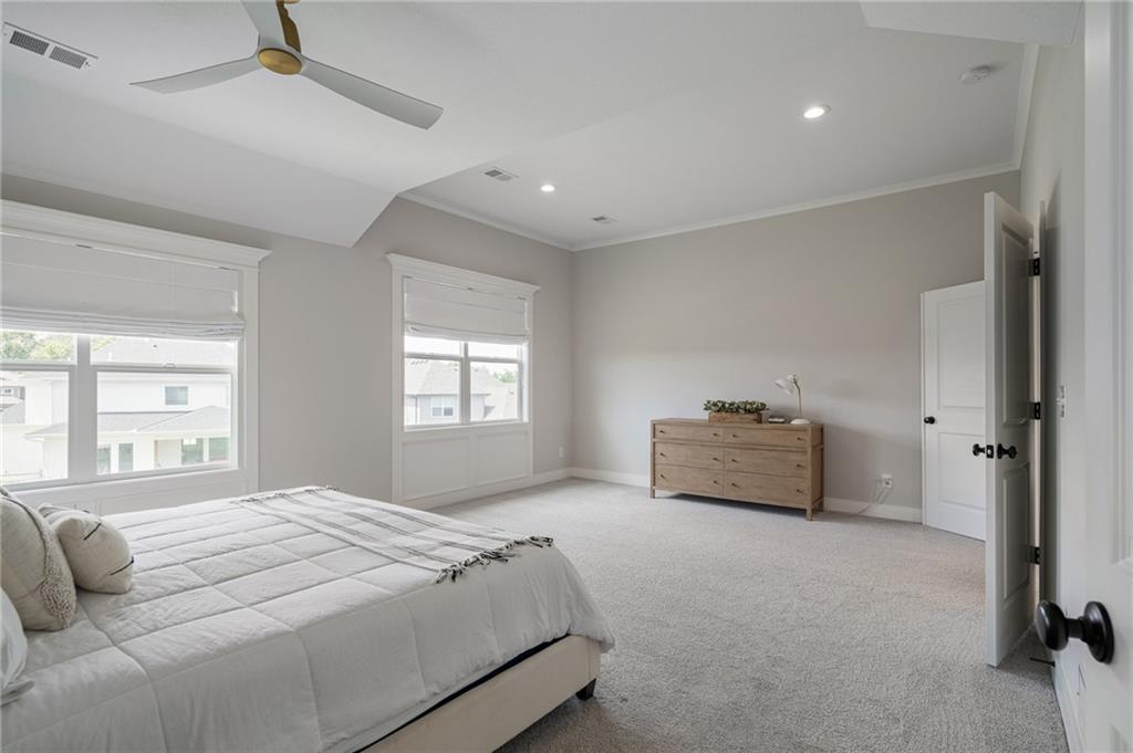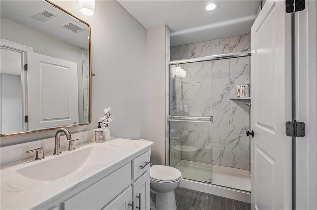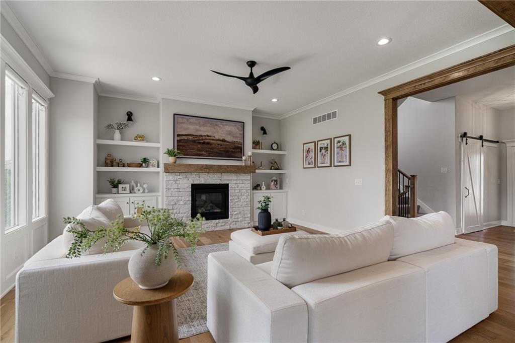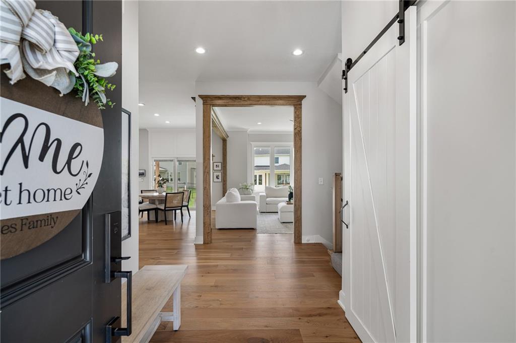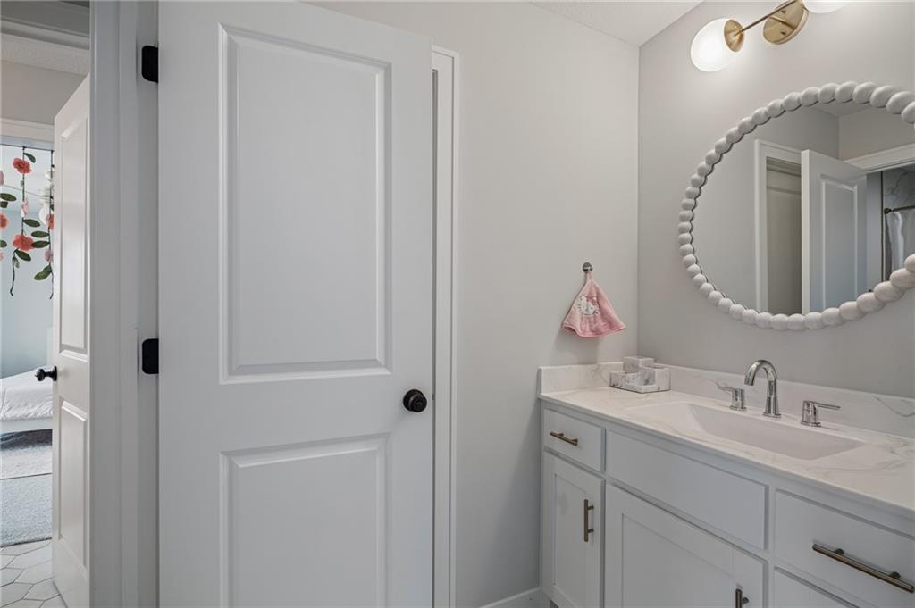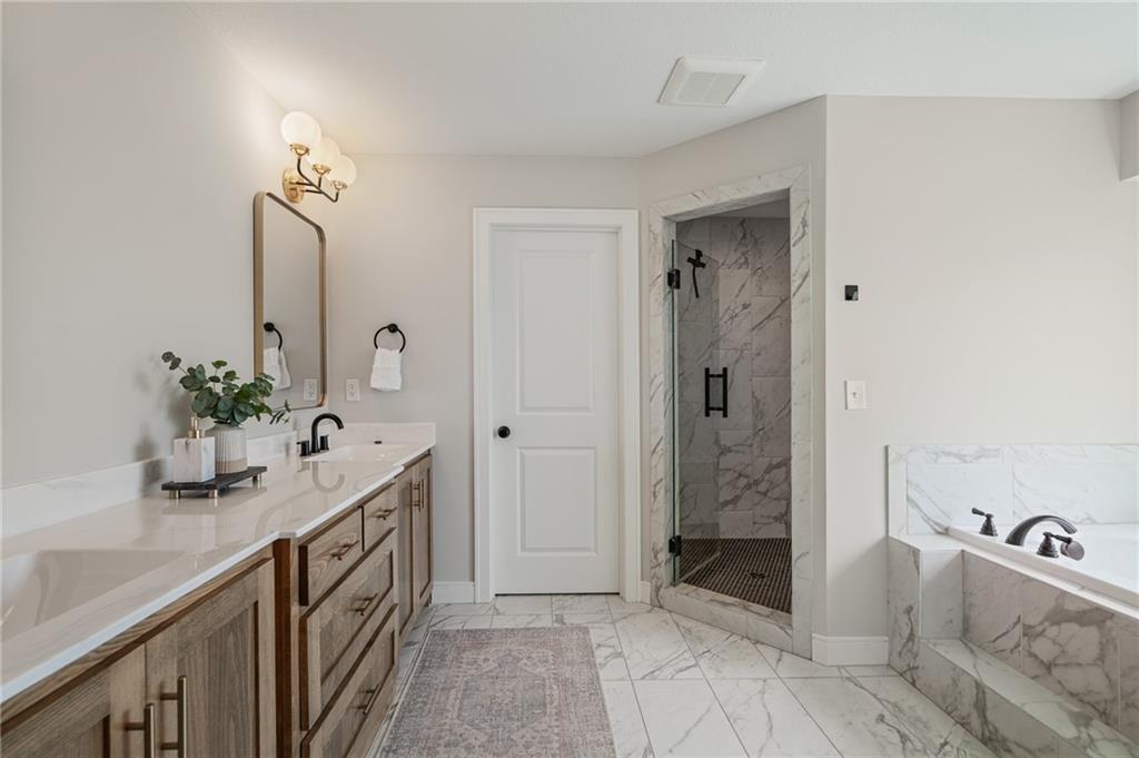Oh my....Makenna!! You know and love this award-winning plan but just wait til you see this home. It's warm and welcoming and from the moment you walk in you'll just know because...it feels like home. It's light, bright and airy with beautiful on-trend selections & filled with upgrades throughout. Completed in 2023 this home looks like it could be in a magazine and includes the selections you want without the wait. The main-level office features a double desk upgrade and new carpet. The large Great Room is the perfect gathering place and features a stone fireplace cabinets flanking each side. The Kitchen is a dream with tons of cabinets and countertop space and gold touches. The Makenna has one of the best Primary suites with a massive bedroom area, bathroom with built in tub, shower with 2 shower heads and bench and a generous walk-in closet. The 3 secondary bedrooms are great sized with a Jack and Jill bath and one with private en-suite. The lower level is a surprise and delight with a finished Rec Room perfect for a play room or hanging out and watching the game! Situated on a coveted block in Prairie View at Creekside Woods you'll find the perfect play space (and neighboring playmates) with a fantastic fenced backyard including an expanded patio area for those backyard BBQs, entertaining and just hanging out. Prairie View at Creekside Woods has a neighborhood pool. HOA includes pool, trash and weekly recycling. Feeds into award-winning Olathe Schools: Canyon Creek Elementary, Prairie Trail Middle School and Olathe Northwest High School. Easy highway access just 2 minutes to K7 get you anywhere fast!