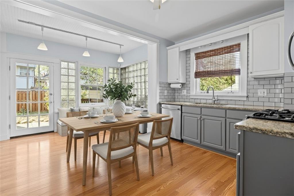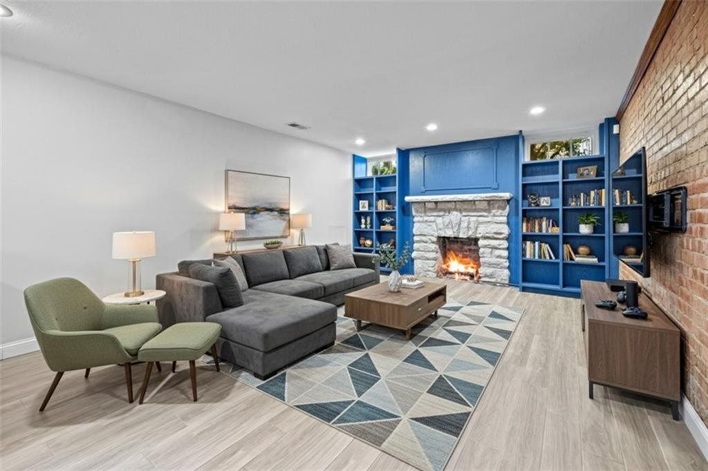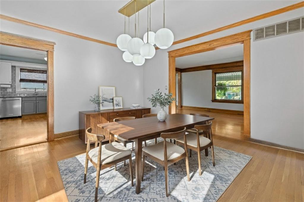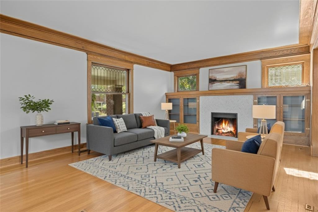 Live the Brookside life—classic character, modern comfort. This beautifully updated home blends the best of both worlds: timeless 1920s architecture and thoughtful, modern upgrades throughout. Step inside and you’ll feel the difference—original woodwork, leaded windows, and hardwood floors set a warm tone, while fresh interior paint and a marble-surround fireplace bring the look up to date. The main level is open and welcoming, with a spacious living room that flows easily into the dining room’s custom batten wall detail. The eat-in kitchen is perfect for casual meals, and the updated main-level laundry keeps daily life easy. Upstairs, four bedrooms and two full baths include a reimagined primary suite where the former sleeping porch now shines as a bright ensuite retreat with subway tile and a custom walk-in closet. The third floor adds flexible space for guests, work, or play. Downstairs, the finished basement impresses with high ceilings, a gas fireplace, and a stylish wet bar—ideal for entertaining or relaxing. The home’s updates include a newer two-zone HVAC system with humidifier and air scrubber, modern thermostats, washer and dryer, basement refrigerator, alarm system, and Ring doorbell—all designed for comfort and peace of mind. The side patio is perfect for quiet mornings or evenings under the lights, and the two-car garage is the finishing touch. Just a one-minute drive or seven-minute walk to Brookside shops and dining, with the Plaza and downtown only minutes away—you’ll love where this home lets you live.