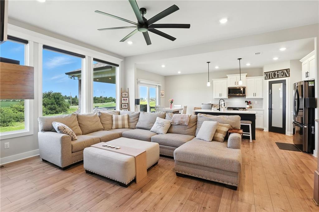 Welcome to 27800 E 134th Street, nestled in the desirable Foxberry Estates community of Lee’s Summit! This stunning ranch, built in 2021 offers luxurious one-level living with high-end finishes and thoughtful upgrades. Step into the impressive great room, where floor-to-ceiling windows flood the space with natural light and showcase the beautiful views. Enjoy effortless comfort and privacy with state-of-the-art electronic blinds, allowing you to control the ambiance at the touch of a button. The chef’s kitchen boasts a spacious center island, stainless steel appliances, and a walk-in pantry—perfect for entertaining or everyday living. Retreat to the master suite with a spa-inspired tiled walk-in shower and dual vanities. The expansive unfinished walk-out basement is a rare find, providing a wide-open slate for you to create the ultimate home theater, gym, guest suite, or game room—adding instant equity and personal flair to your new home. Foxberry Estates offers fantastic amenities, including a sparkling neighborhood pool and scenic walking trails. You’re just minutes from local favorite shops and dining of downtown Lee’s Summit. Don’t miss your chance to own this modern, move-in-ready home with endless possibilities. Schedule your private tour of 27800 E 134th Street today and experience the best of Foxberry Estates living!