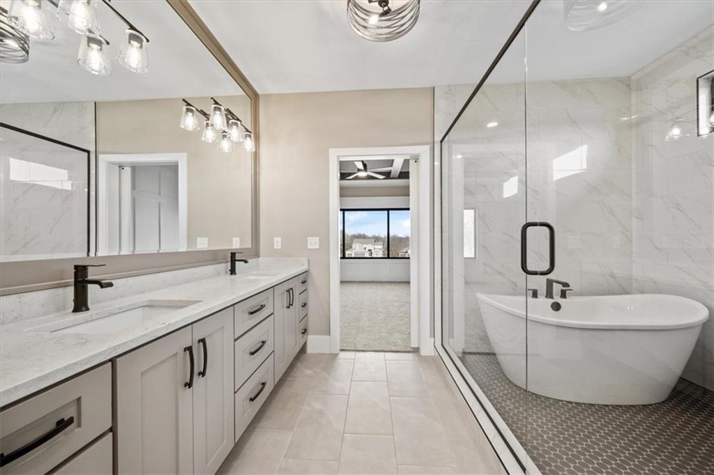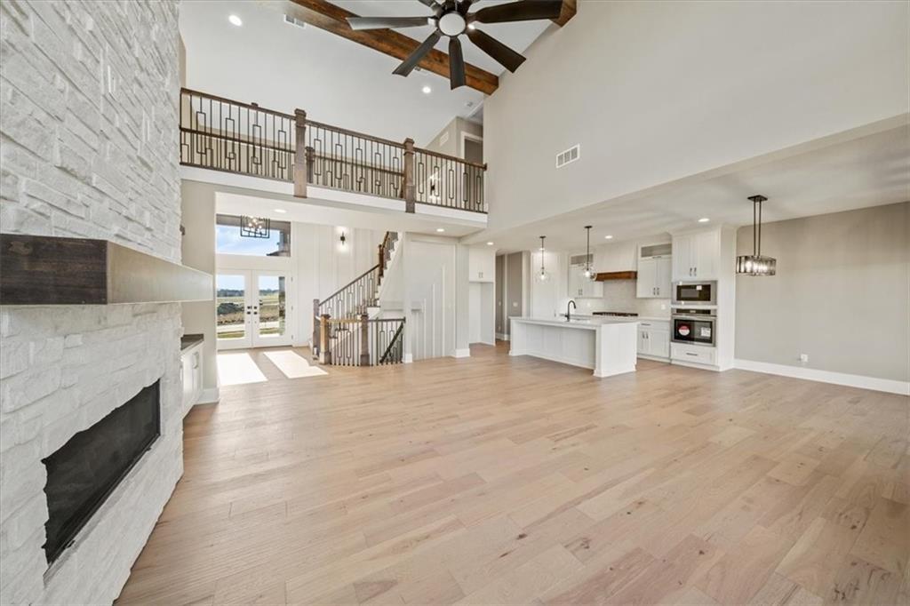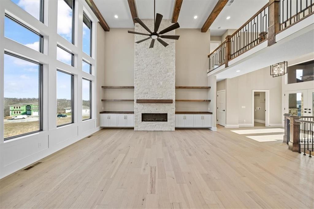 The "Layla" Floorplan is here! Located on a beautiful Level Lot backing to trees. This 1.5 Story plan is everything you have been looking for! As you enter through the gorgeous double doors to the grand entry next to the stunning staircase, you have an ample amount of natural light gracing your Great Room with fireplance, Dining Room and Kitchen. Access to the covered patio is off the Dining Room. The Master En-Suite is behind the Great Room with a wet room shower with stand alone tub for the serene spa experience, double vanity, next to walk-in closet and connected to Laundry Room. The opposite side of the main level is Bedroom #2 with its own bathroom with a tiled shower. Up the stairs is a catwalk connecting 2 bedrooms and a bathroom with double vanites and walk-in closets to the other side with bedroom #5 with its own bathroom, shower over tub and walk-in closet. Option to finish the basement. All in the coveted Heritage Ranch, A Lambie-Rieke Community, with Amenities Galore such as state-of-the-art pool, clubhouse, trails, pickleball. play area, half-court basketball, Putting Green & ponds and so much more coming soon! This community provides a wonderful lifestyle and right next to the 1,238 Acre Heritage Park with Dog Park, Sports Parks, Golf, Lake, Trails and so much more! Contact Onsite Agents for Estimated Completion of homes on site, and design selections. Our Welcome Center Office is now open, located at LOT 65. Open 7 days a week! Renderings &/or images may show features and sq ft that are subject to change. SPEC HOME IS UNDER CONSTRUCTION AND NOW UNDER ROOF on LOT 107. With an Estimated Completion of DEC 2025. Welcome Home to Heritage Ranch - one of the last NEW Home Communities in Johnson County!