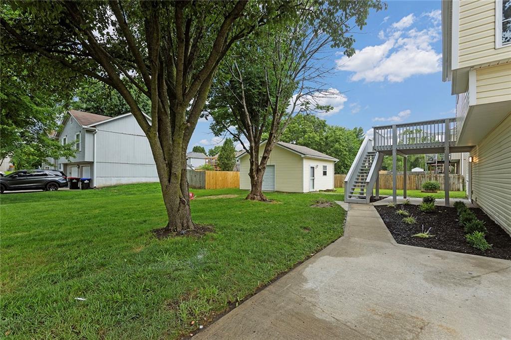 Step into this beautifully renovated 3-bedroom, 3-bathroom home where modern updates meet functional charm. The main living room features soaring vaulted ceilings and an abundance of natural light, creating an airy and inviting atmosphere. The updated kitchen is a dream, complete with new appliances, sleek quartz countertops, two breakfast bar areas perfect for barstools, and a convenient reach-in pantry. The spacious primary suite is a true retreat with its own vaulted ceiling and cozy fireplace—ideal for unwinding at the end of the day. One of the additional bedrooms is a kid’s dream, complete with a ladder leading to a bonus loft area—ideal for a playroom, reading nook, or hideaway. The finished lower level offers a second family room and a full bathroom, making it a perfect space for guests, a 4th bedroom, or a private retreat. Outdoor living is just as impressive, with a deck off the main level and a covered patio accessible from the walkout basement—great for entertaining or relaxing in any season. The outbuilding includes a full-size garage door and offers endless potential: use it as a third garage bay, a workshop, man cave, or she shed. Don’t miss your chance to own this unique, move-in-ready home with flexible space.