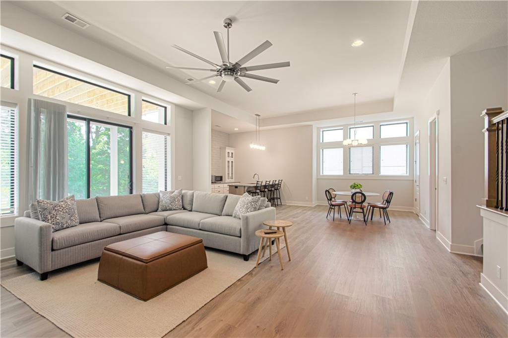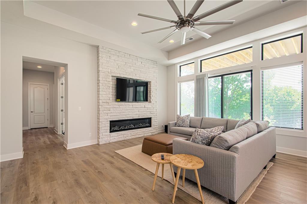 This stunning, like-new residence, built in 2021 by Dusty Rhodes, offers a perfect blend of modern design and comfortable living. Experience the exceptional natural light that fills every corner of this home, thanks to strategically placed, expansive windows that invite sunshine indoors throughout the day. The main floor boasts an inviting open layout, ideal for both everyday living and entertaining. The spacious gourmet kitchen, with high-end appliances and finishes, flows seamlessly into comfortable living areas. Descend to the versatile walk-out basement down a picture perfect curved staircase, which offers a second family room with stone fireplace, two additional bedrooms with their own private en suites and sliding door that provides direct access to the outdoors. Outside, you'll appreciate the convenience of the three-car garage, providing ample space for vehicles and storage. The property includes a fabulous screened in porch to enjoy the cool breeze, abundant sunshine and green space . This home combines the sought-after features of a modern build with the functionality and desirability of extra space and outdoor access. Don't miss the opportunity to make this bright and spacious home yours! Floor plans are online